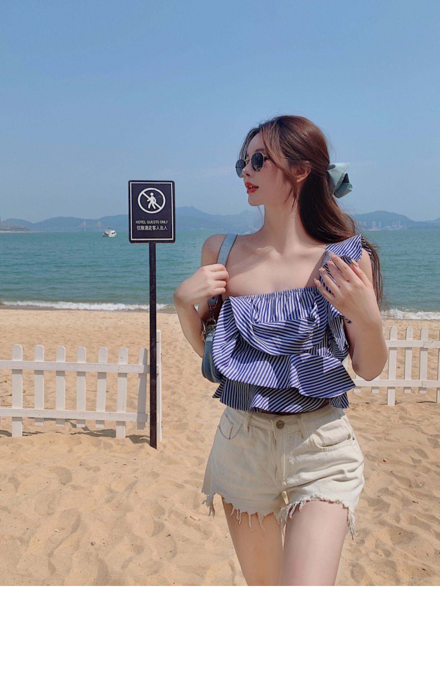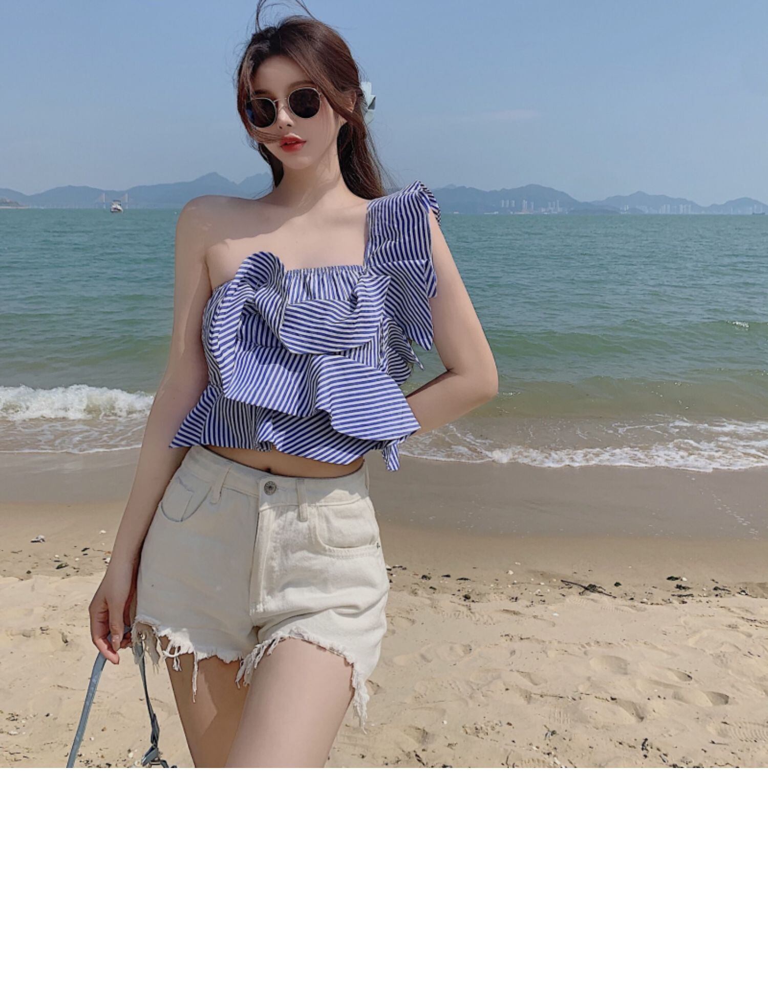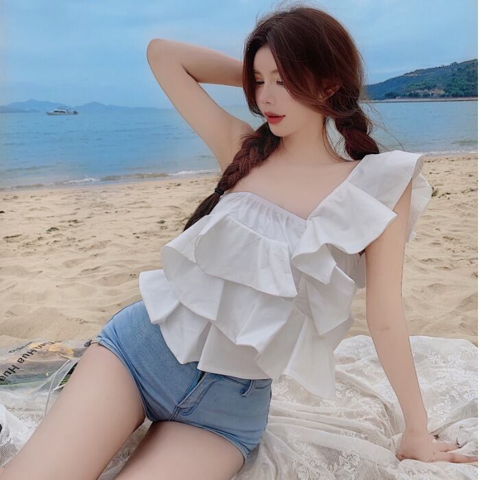 サマースタイルショートシャツ カラーレディース 大人ガーリー スウィート キュート カジュアル 夏物 オフショルダー ドラファッションホール93136501153
