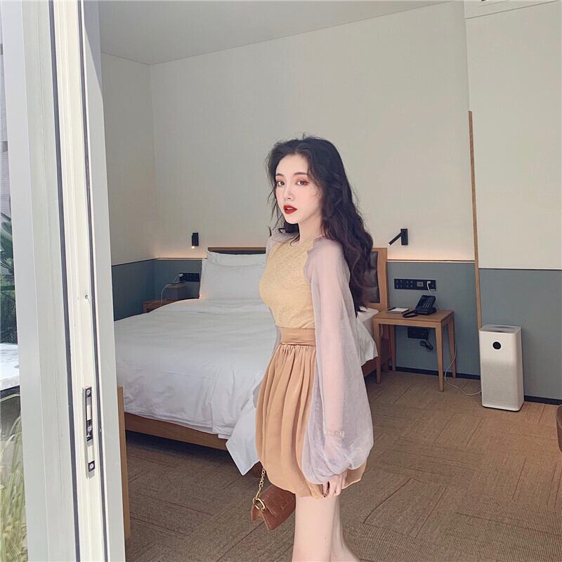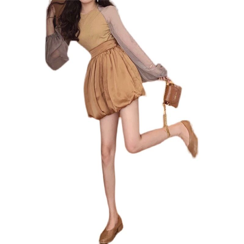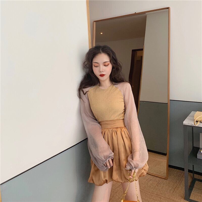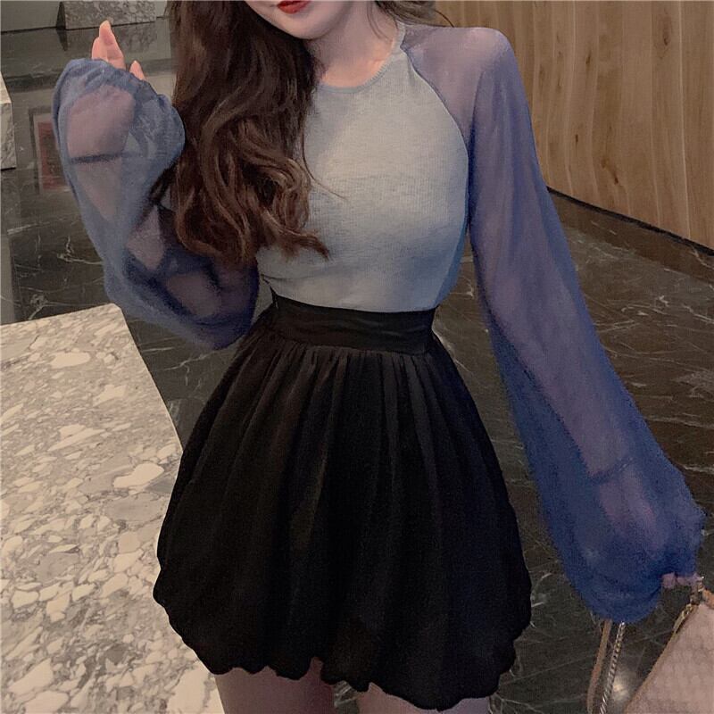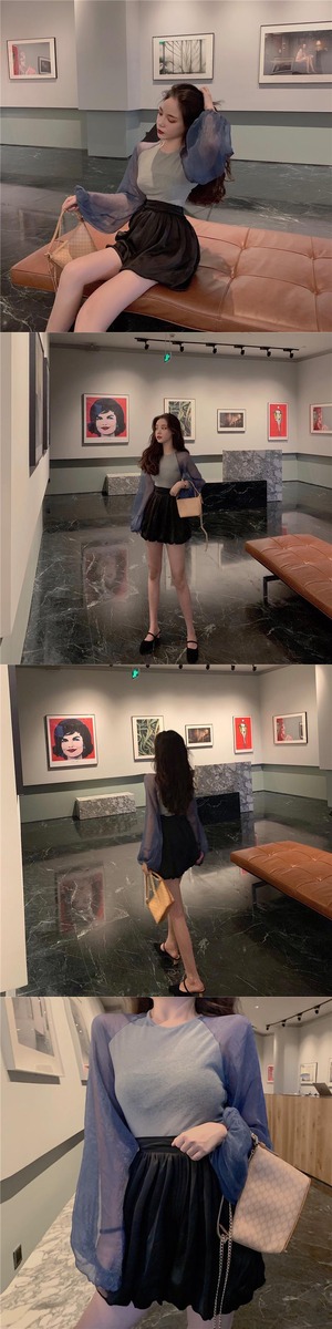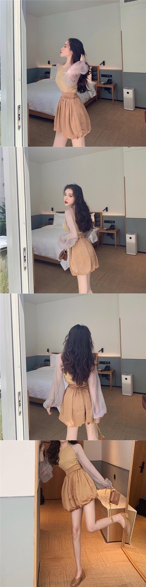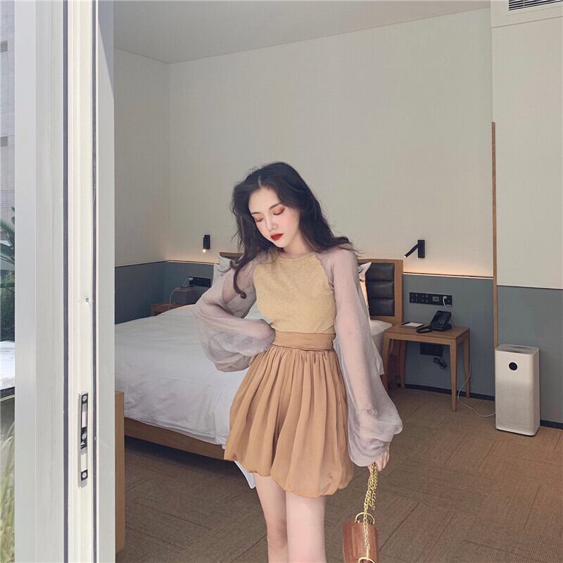 薄手シフォンスリーブシャツ ショートトップス ハイウェストウェストショーツ サマー ランタンスリーブ 夏物 ブルマー ドラファッションホール42227842331