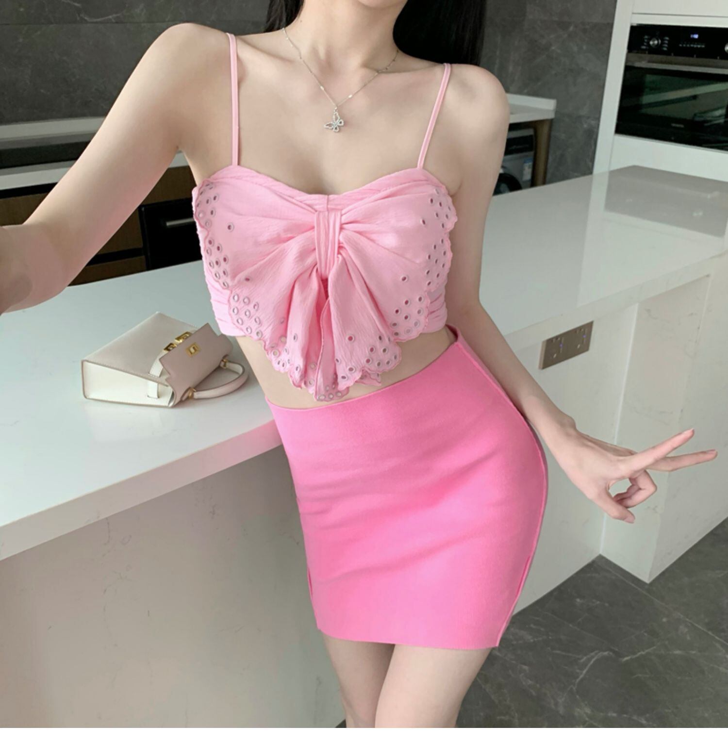 サマースタイルリボントップス ハイウェストウェストスカート レディース 夏物 ピュア ドラファッションホール96217921751