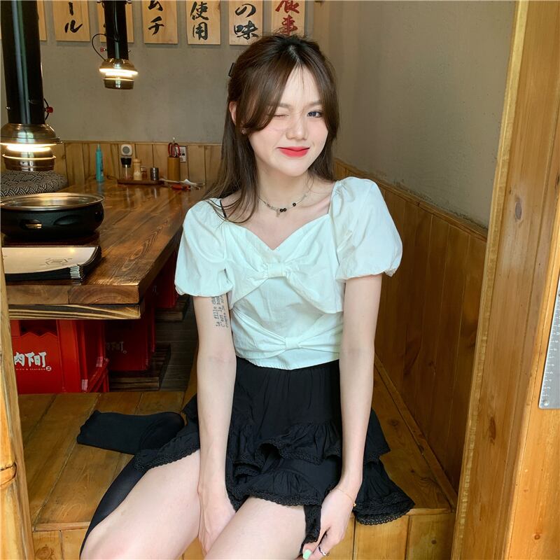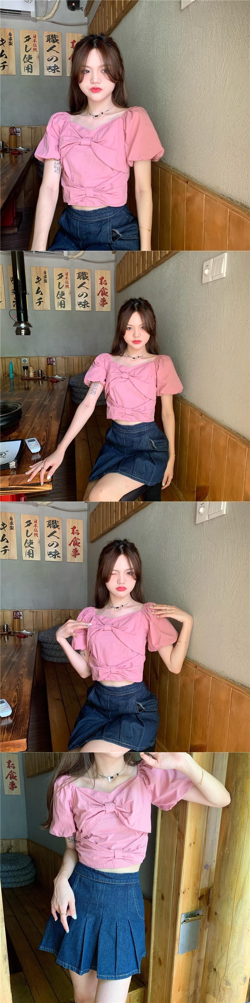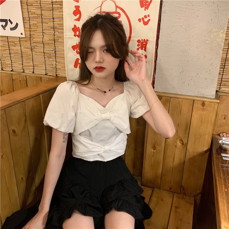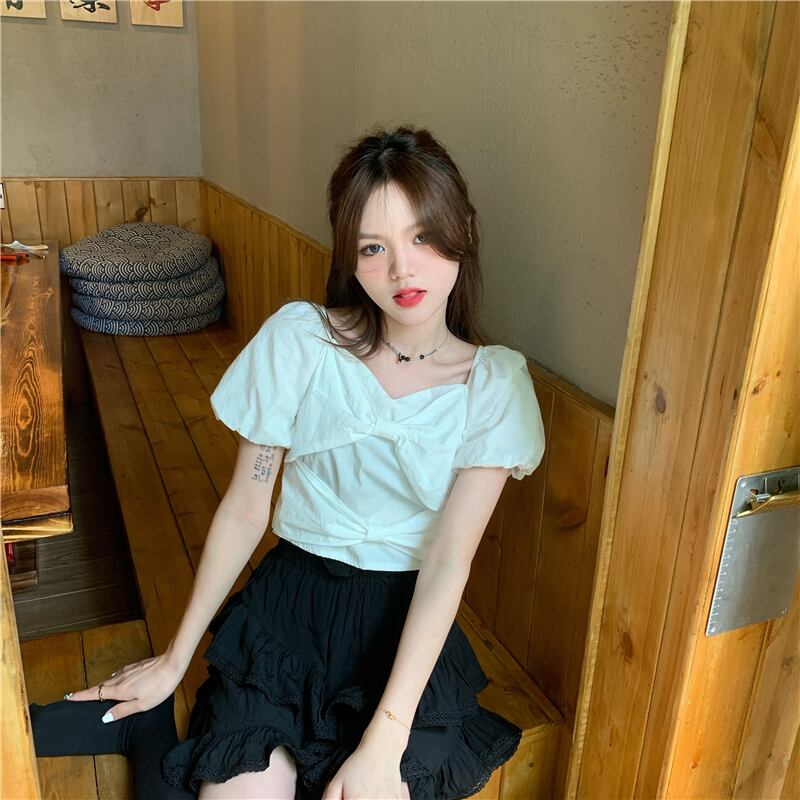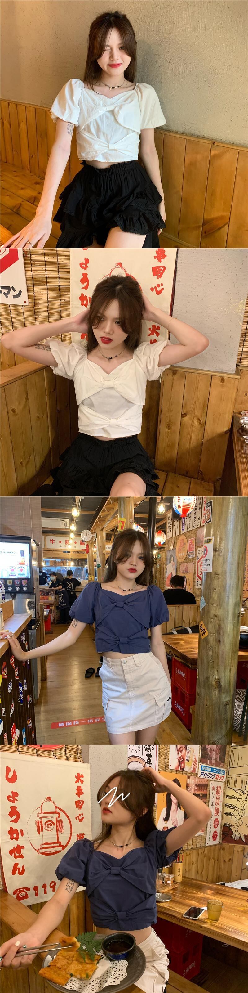 スリーブリボンショート半袖Tシャツ トップス サマー薄手 ハーフスリーブ 夏物 ドラファッションホール58688748424