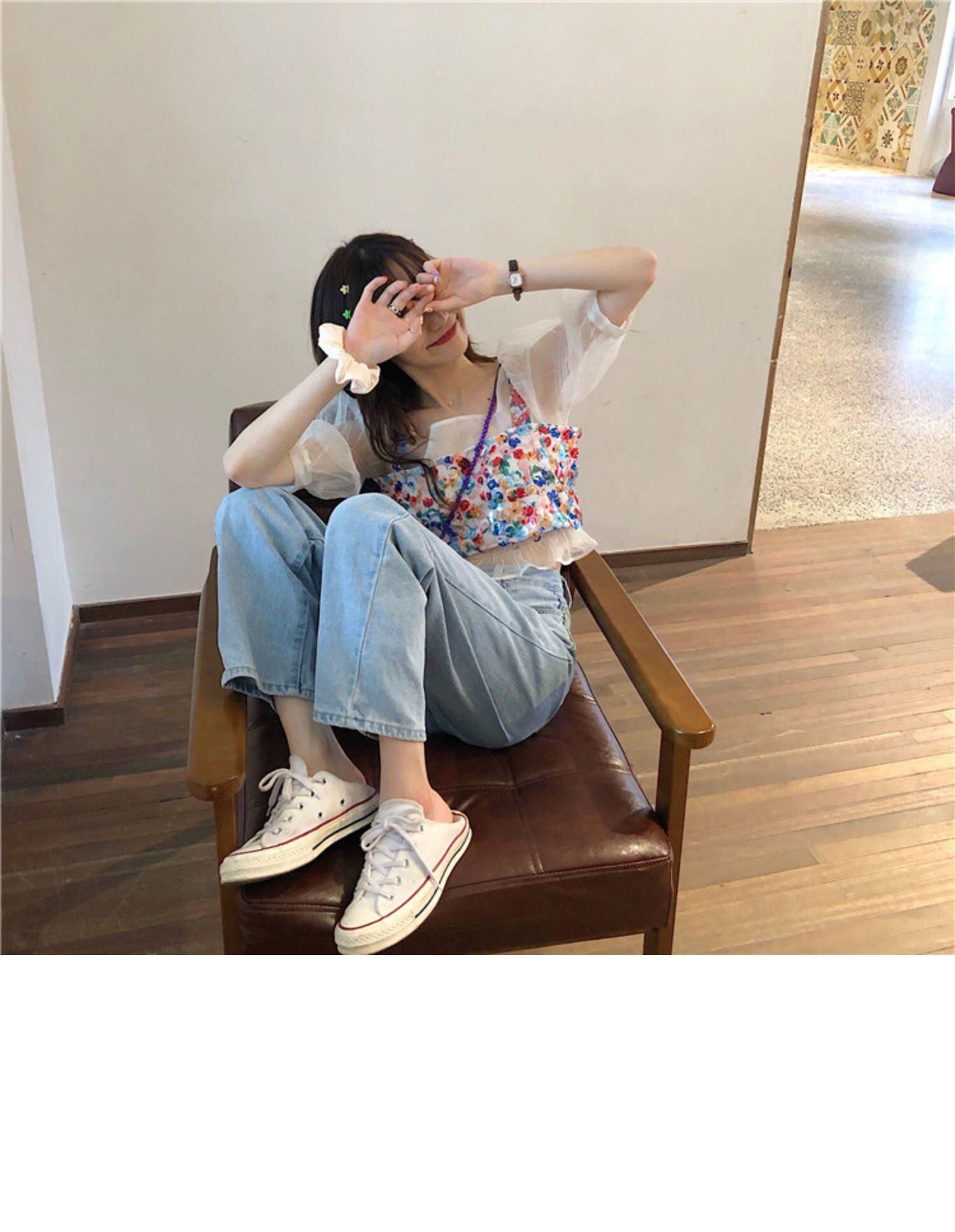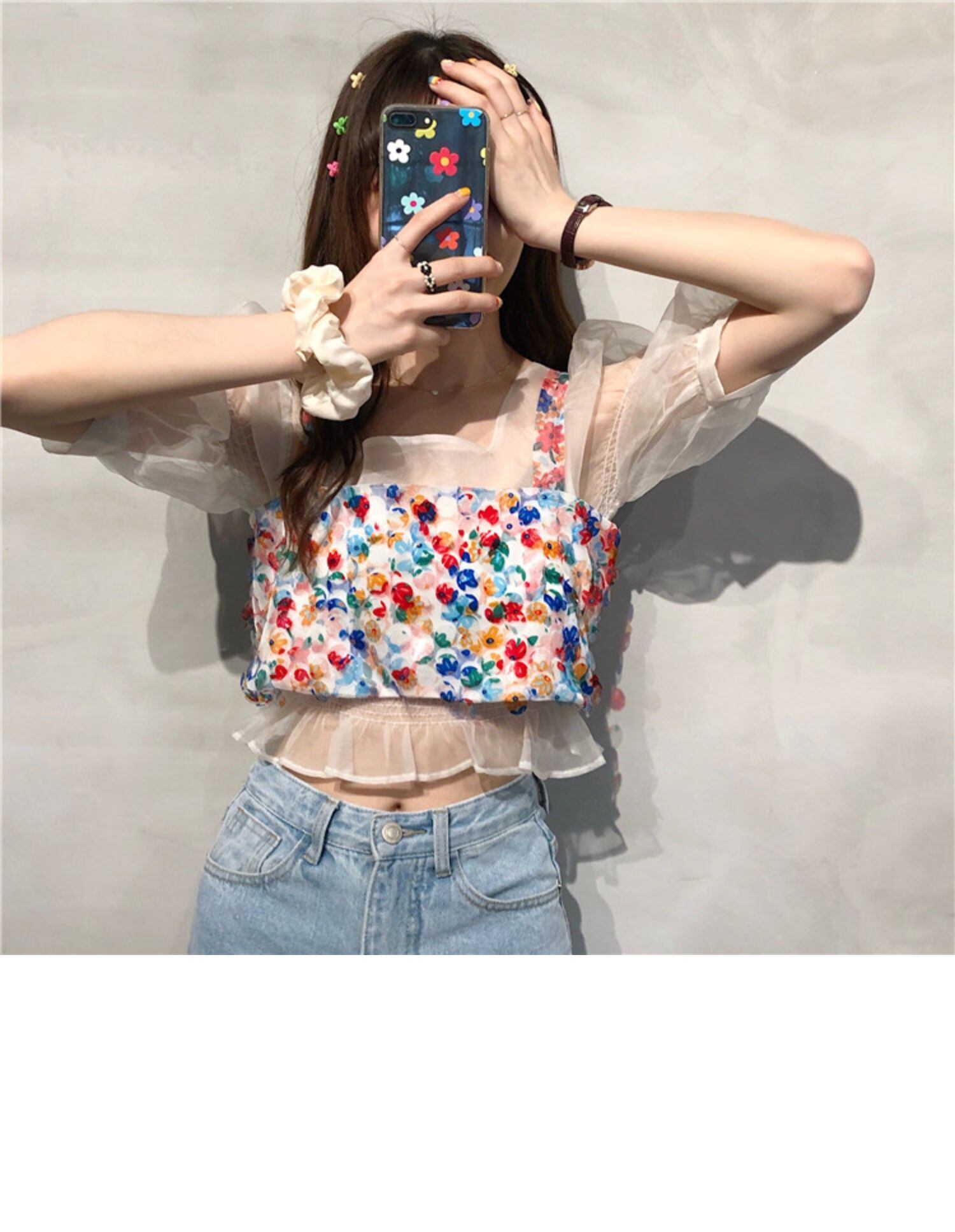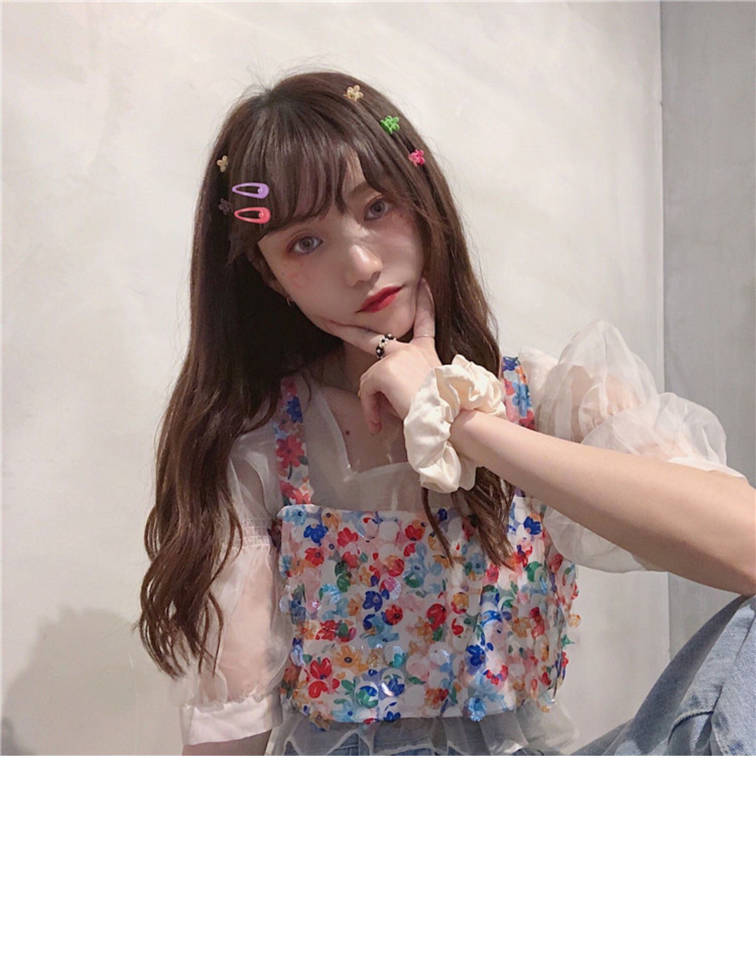 色:カラースパンコールベスト,ガーゼパフスリーブシャツ