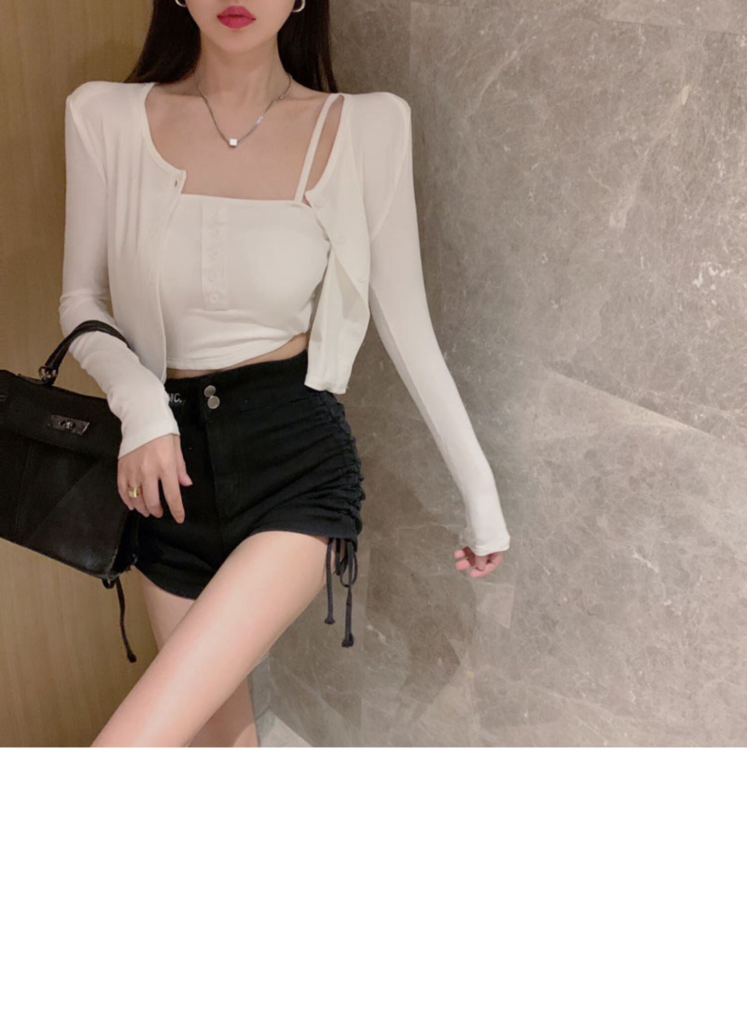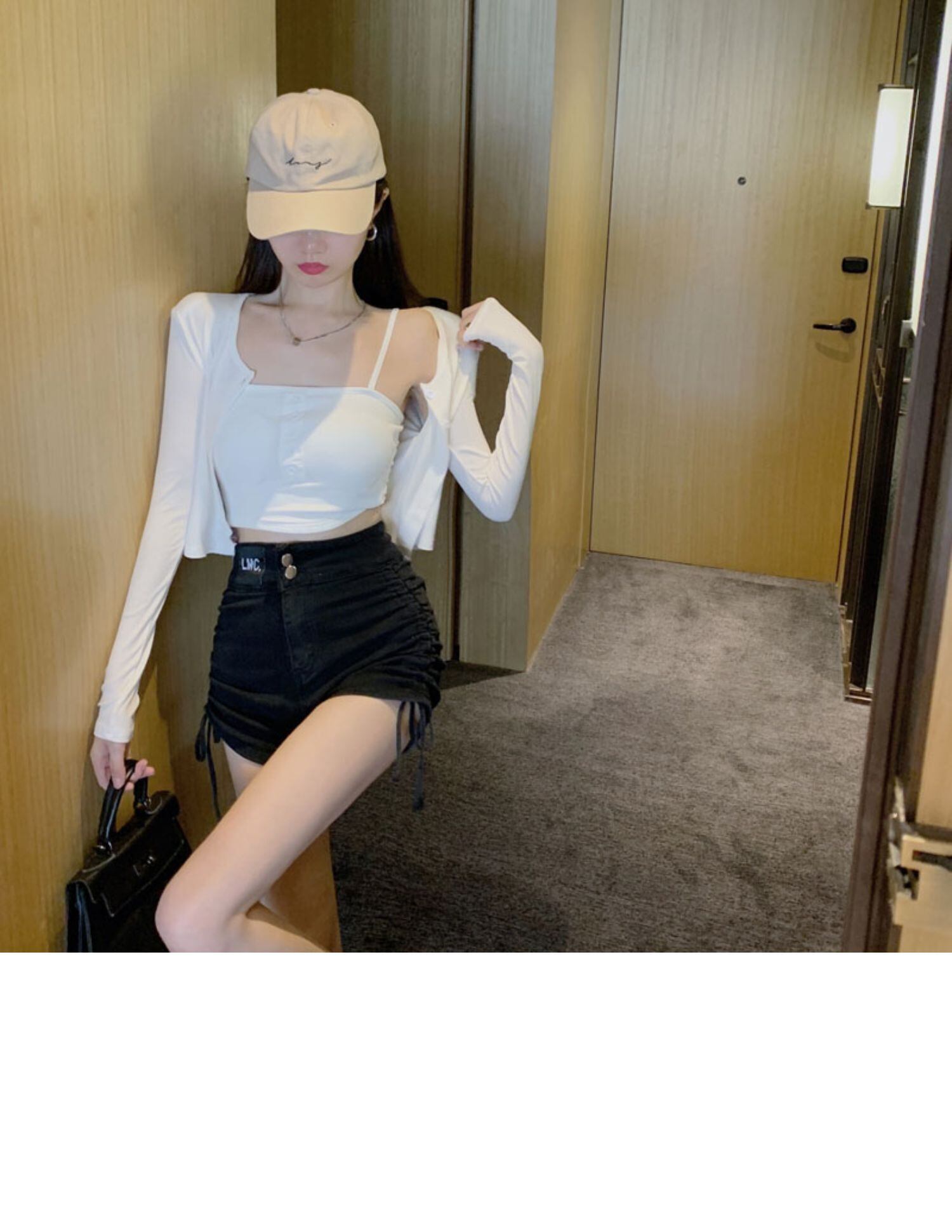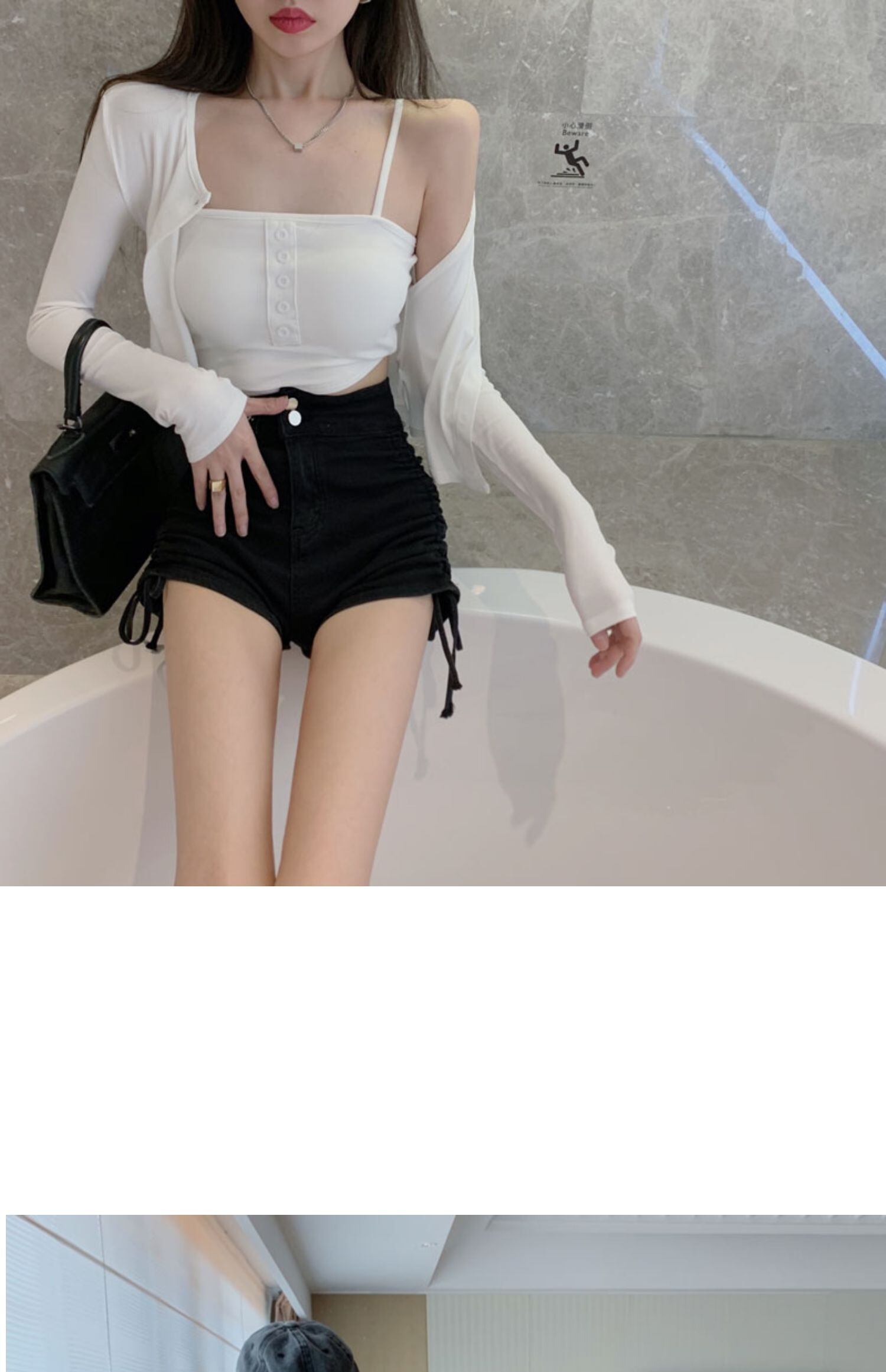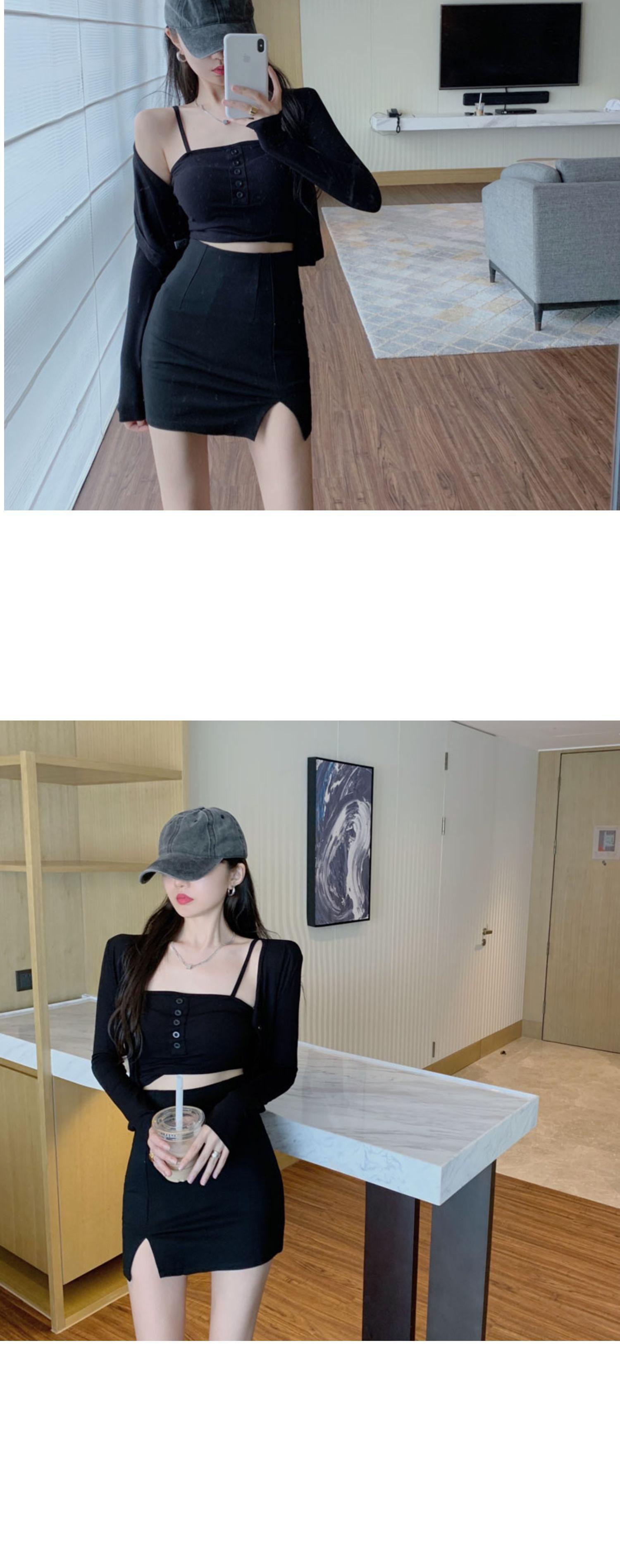 色:ブラックスリング+カーディガン8180,白いサスペンダー+カーディガン8180,黒のスプリットスカート8159,黒の巾着ジーンズ8182