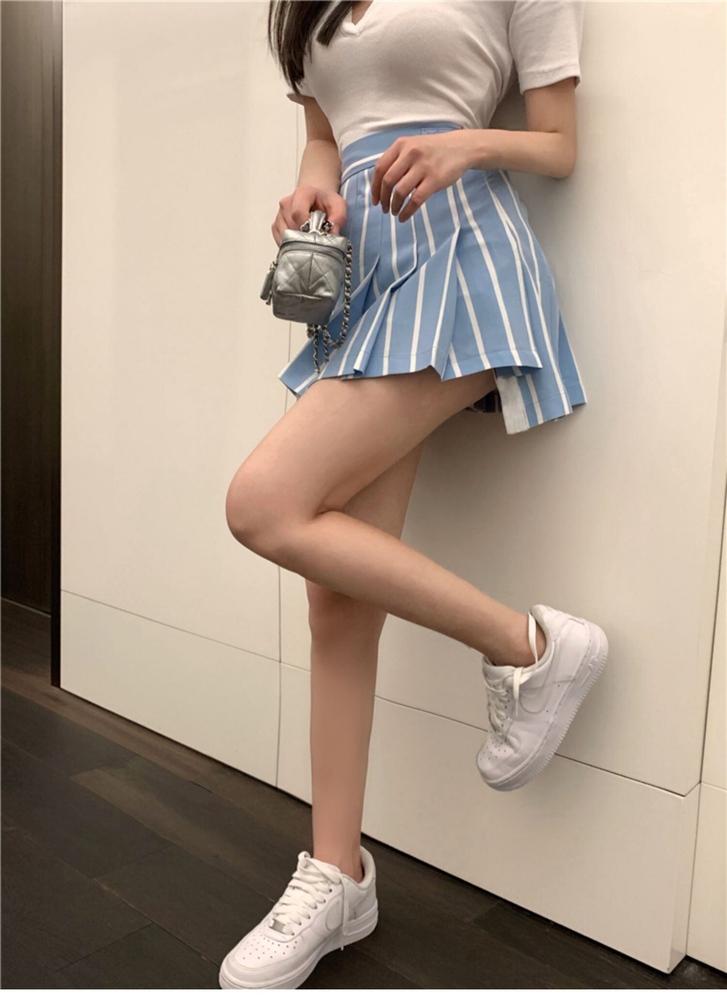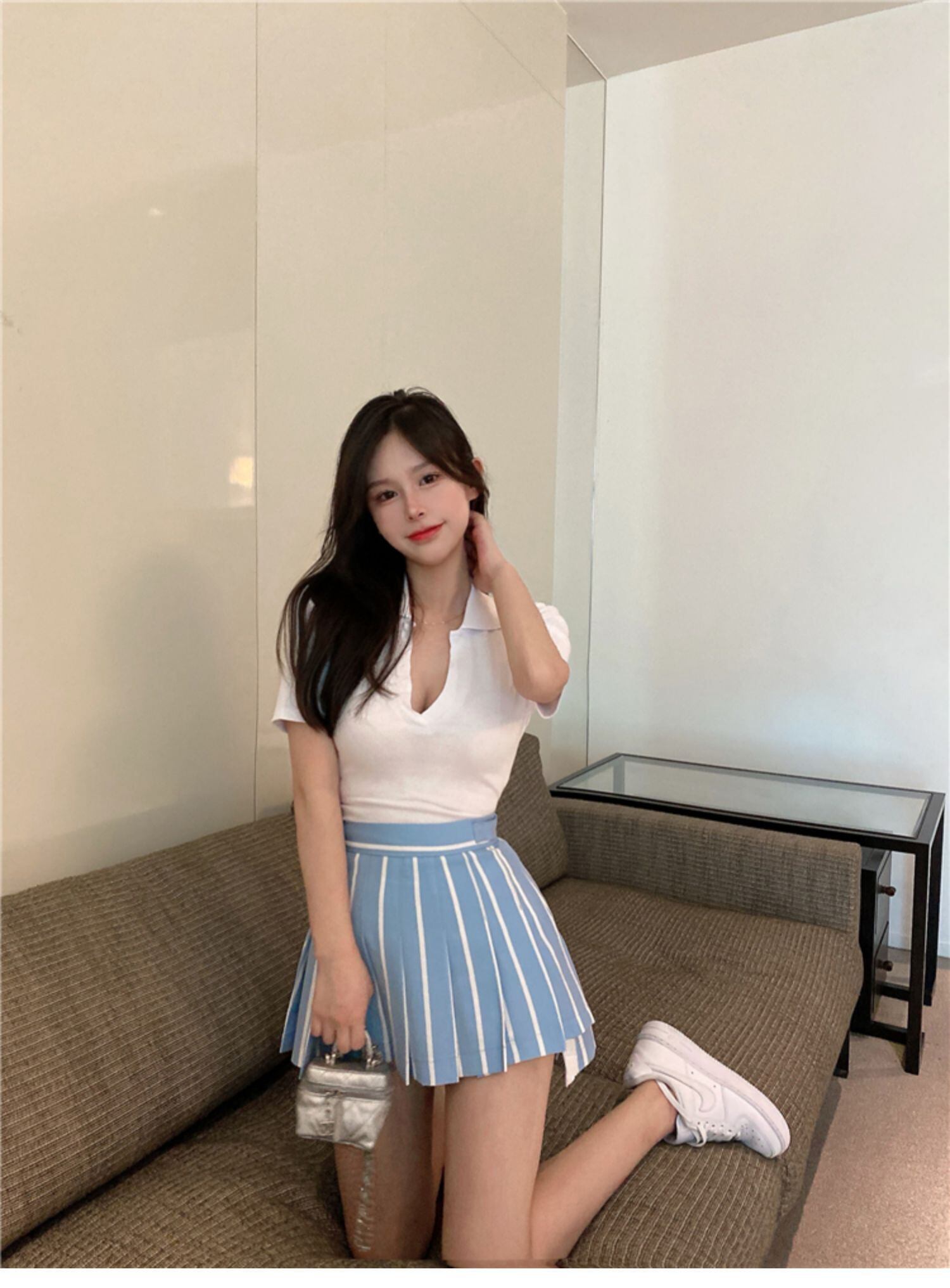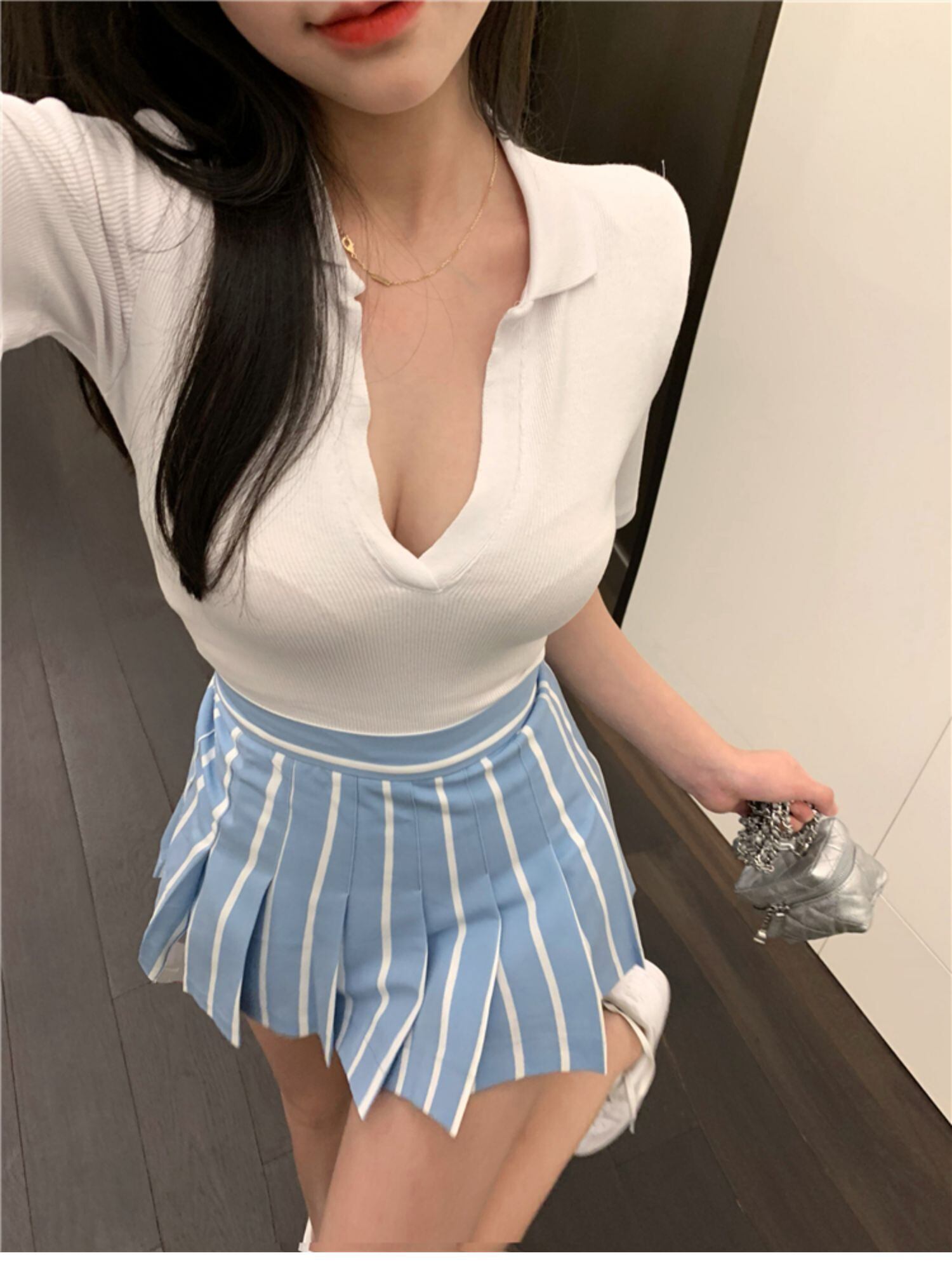 スタイルVネックショート半袖スリーブシャツ スカート ハイウェストウェスト薄手Aラインレディース ハーフスリーブ ピュア ドラファッションホール7867080501