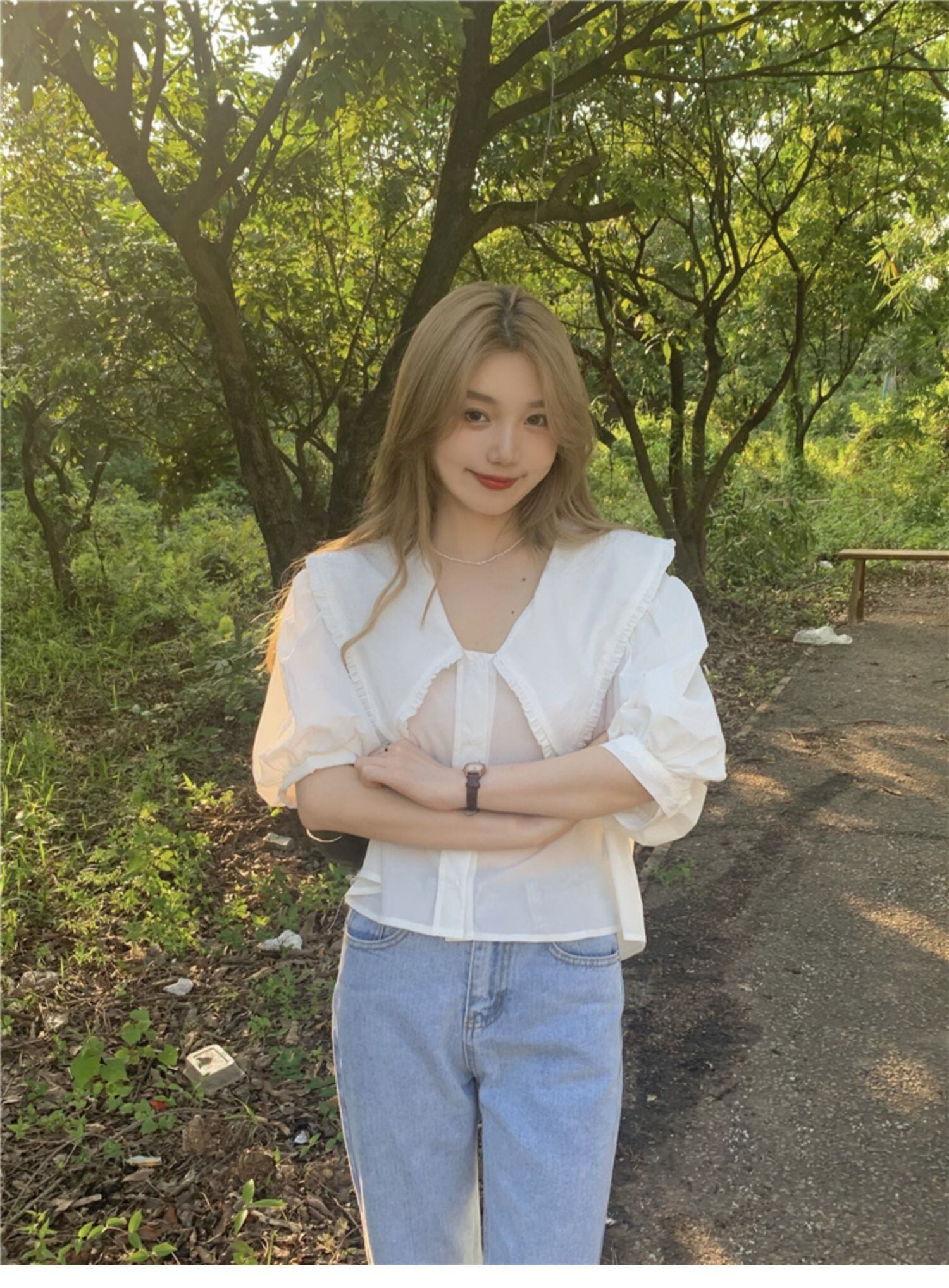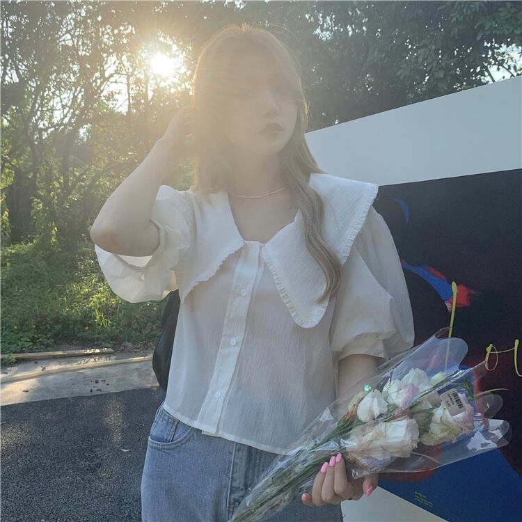 スタイルルーズシャツ 薄手ホワイトブラウス サマー 夏物 ドラファッションホール96800044610