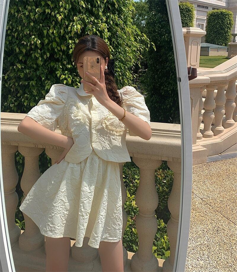 シャツ レッドホワイトスカート サマー 大人ガーリー スウィート キュート カジュアル 夏物 ドラファッションホール36531848137