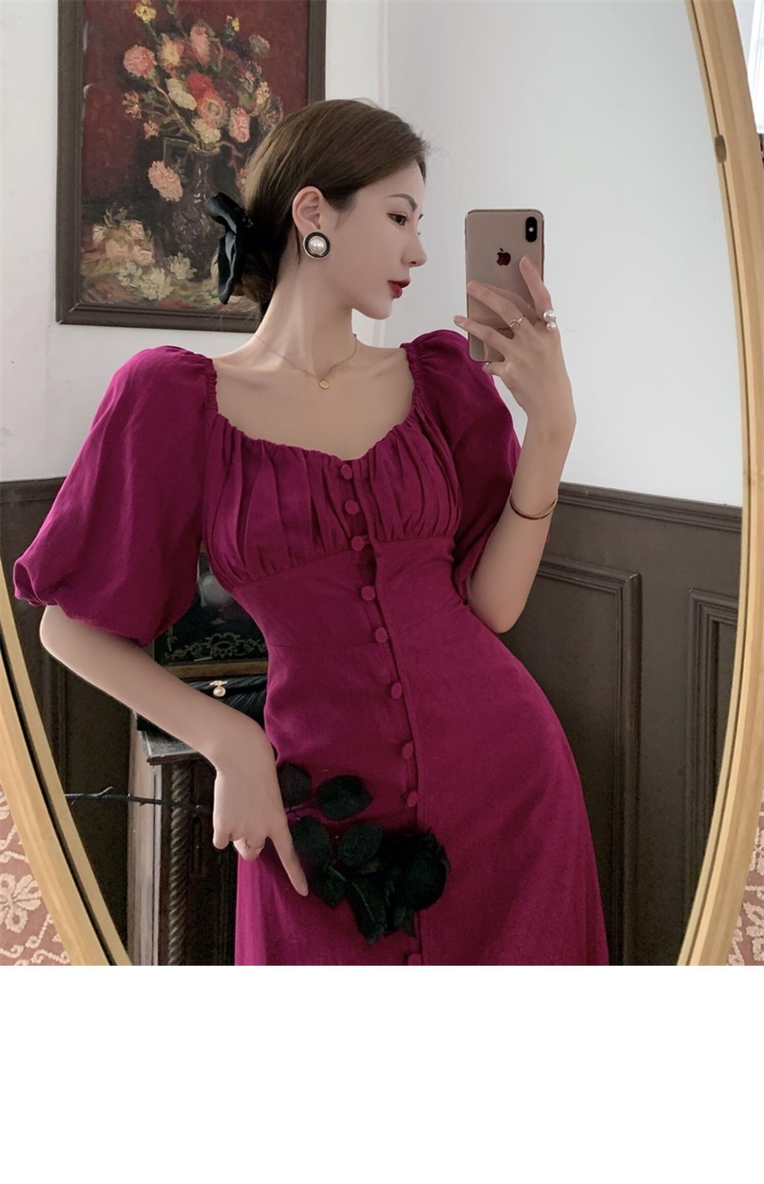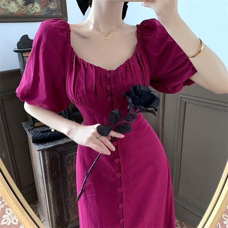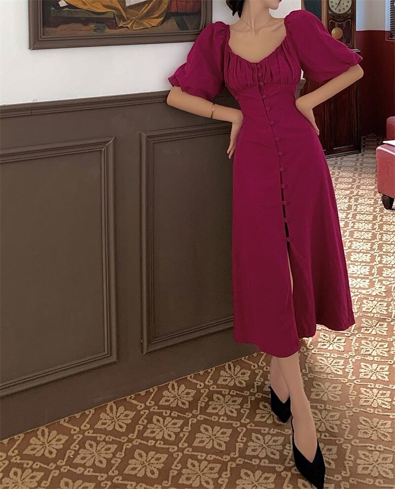 サマースタイルスタンダードカラースカート ウェストドレス レトロ 夏物 スクウェア ドラファッションホール90824019045