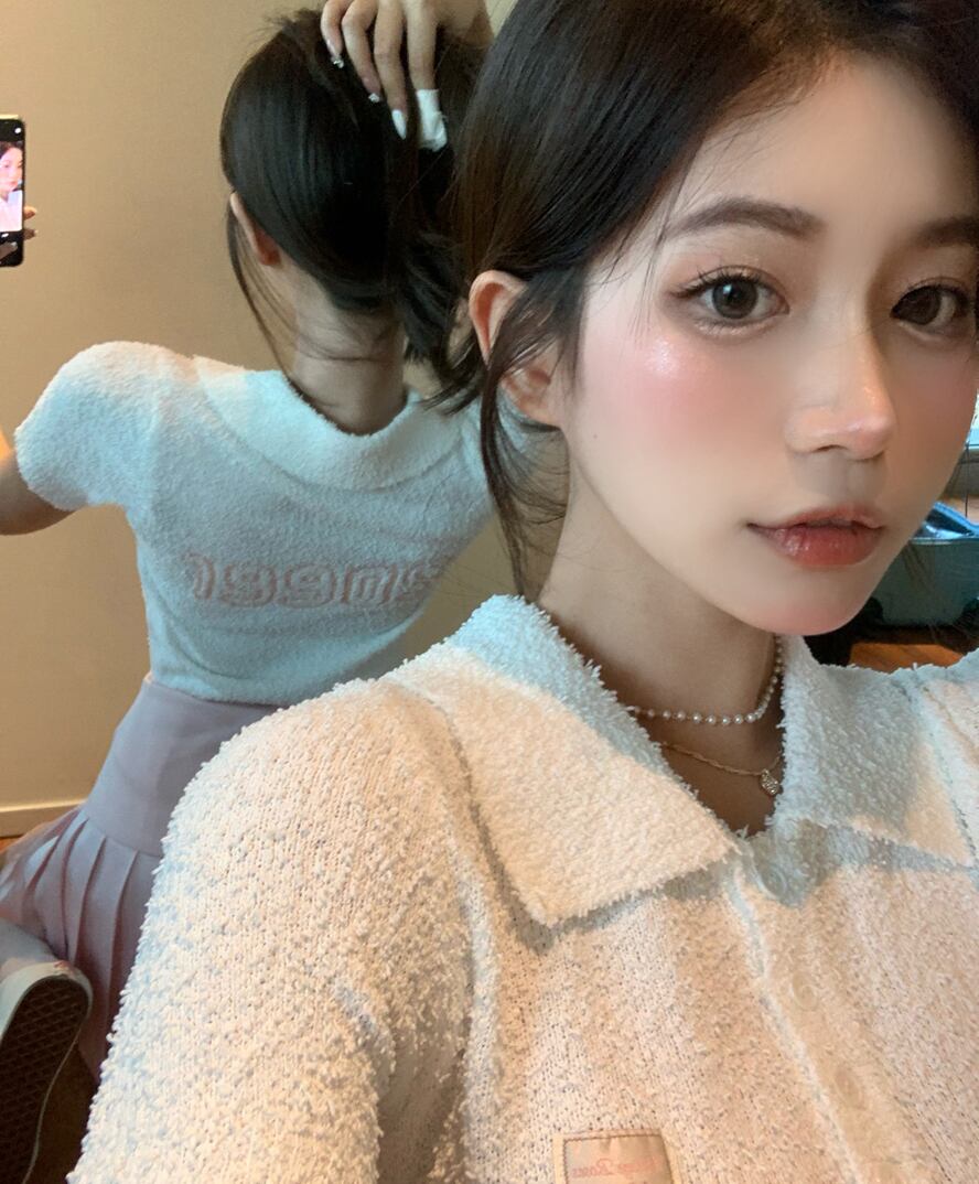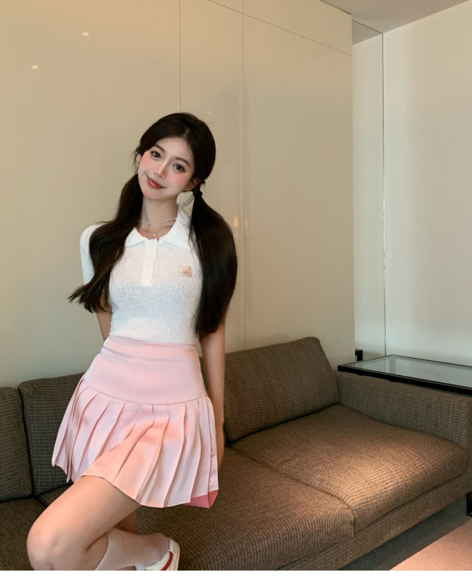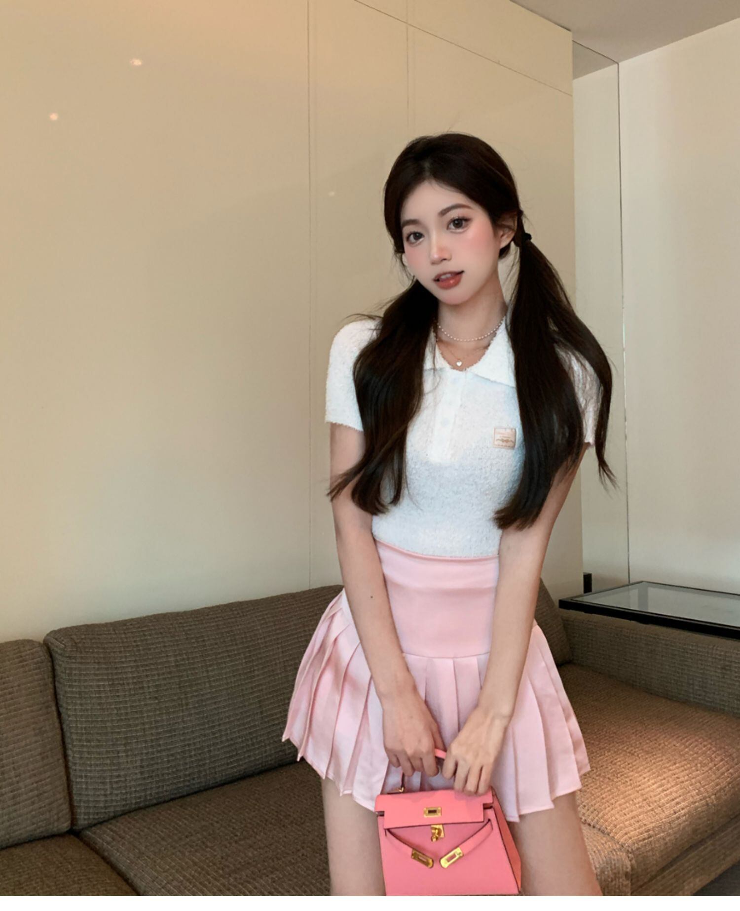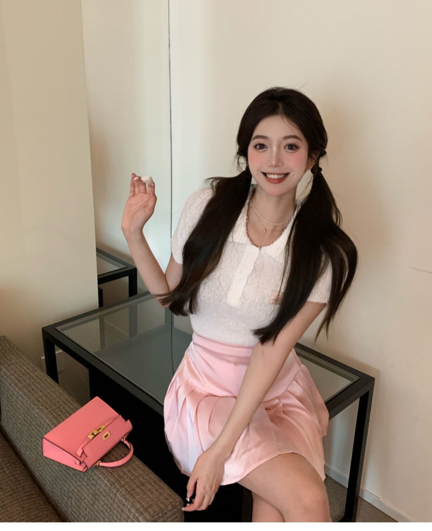 スタンダードニットサテンプリーツスカート ショートTシャツ トップス サマー レトロ 夏物 ドラファッションホール91765344948