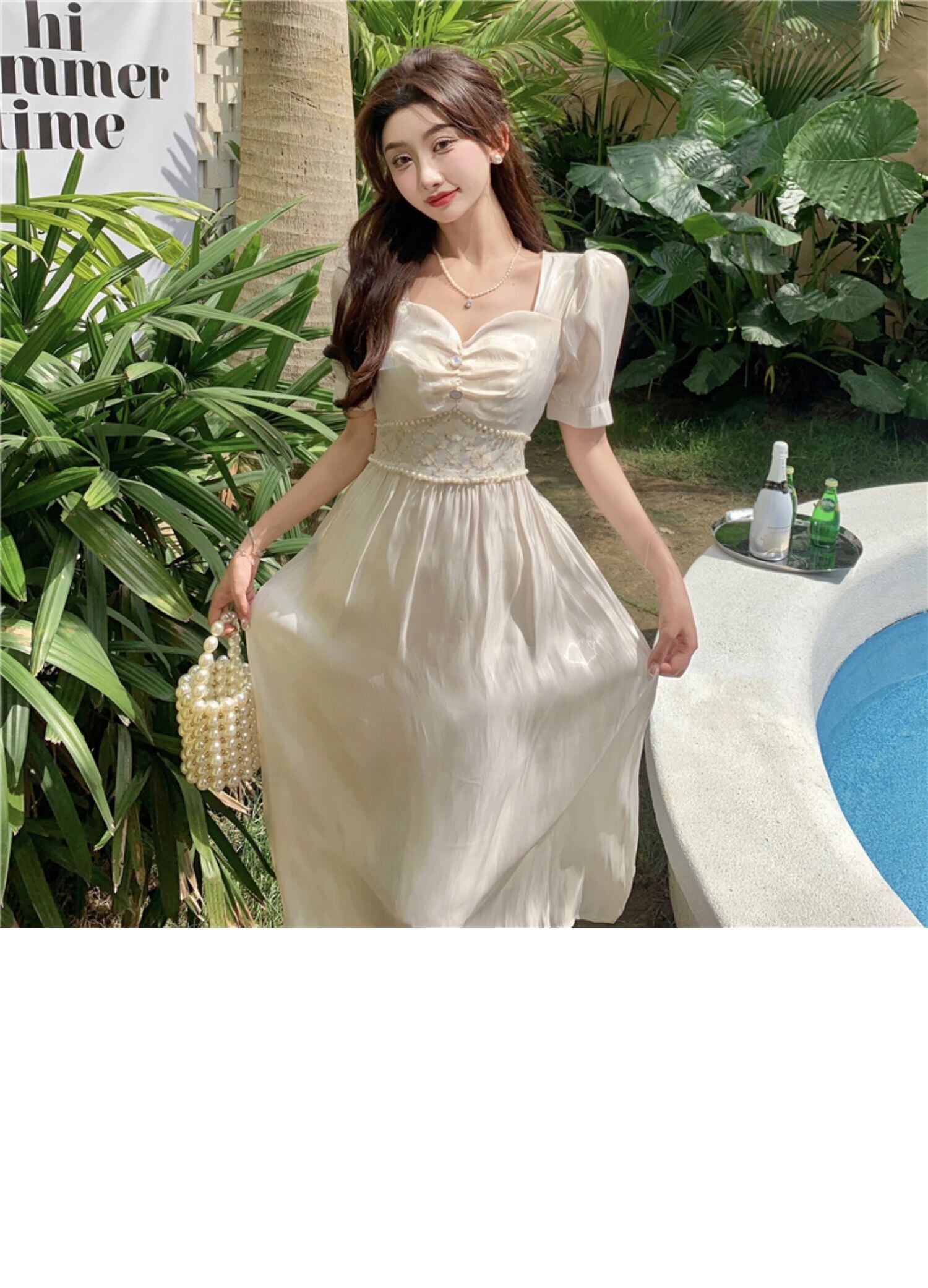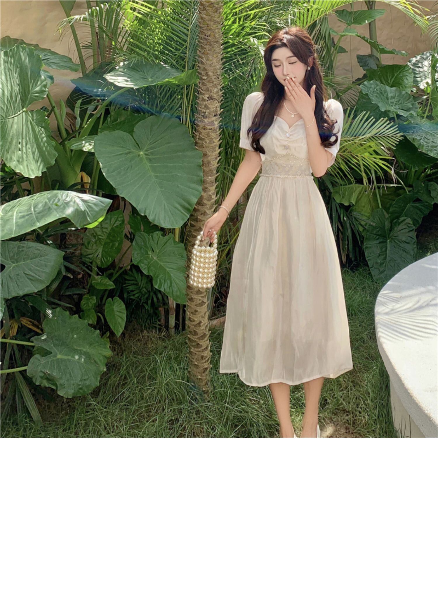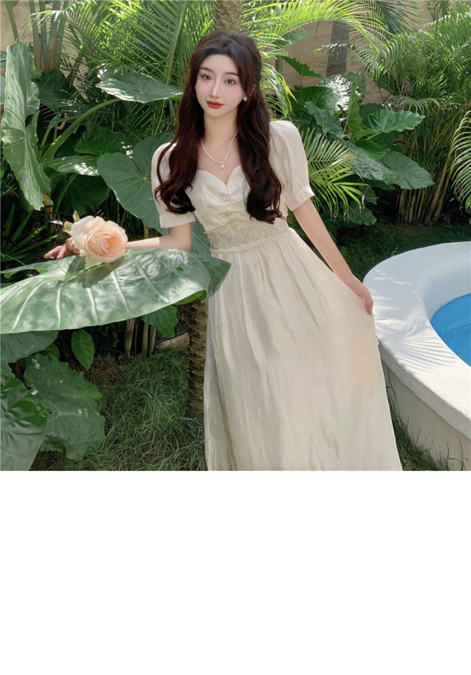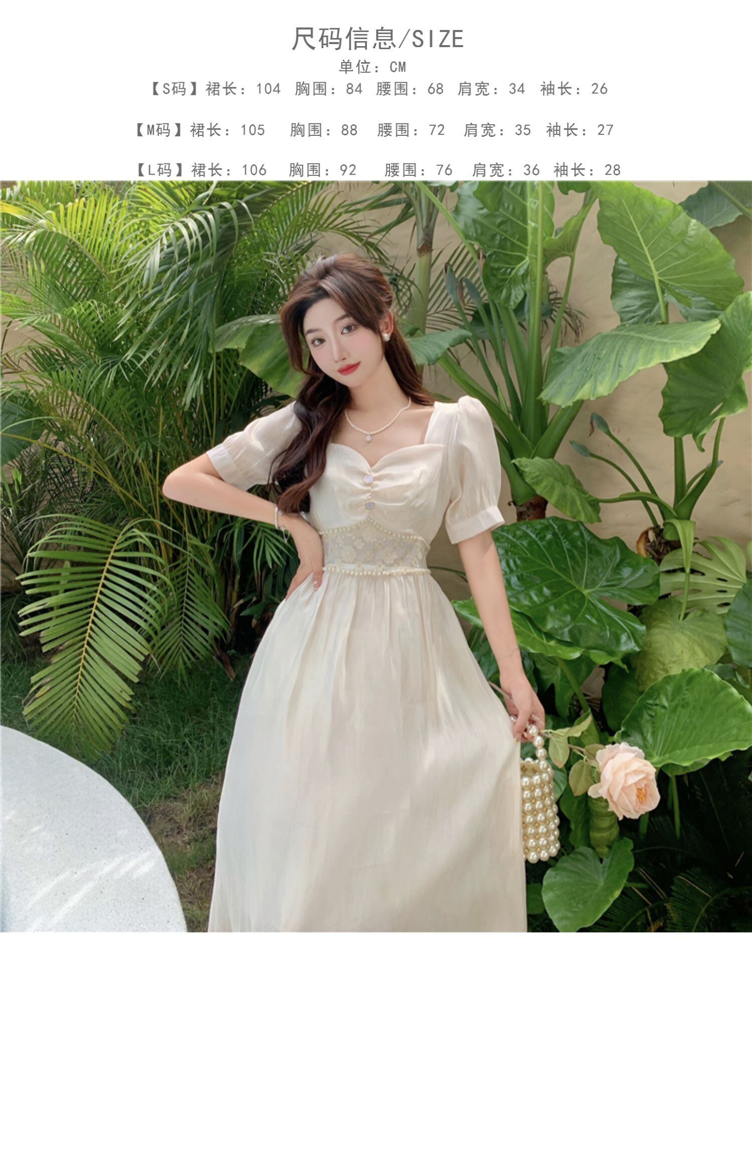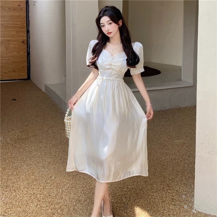 サマースタンダードカラースカート ウェストドレス レディース レトロ 夏物 スクウェア ドラファッションホール12456133527