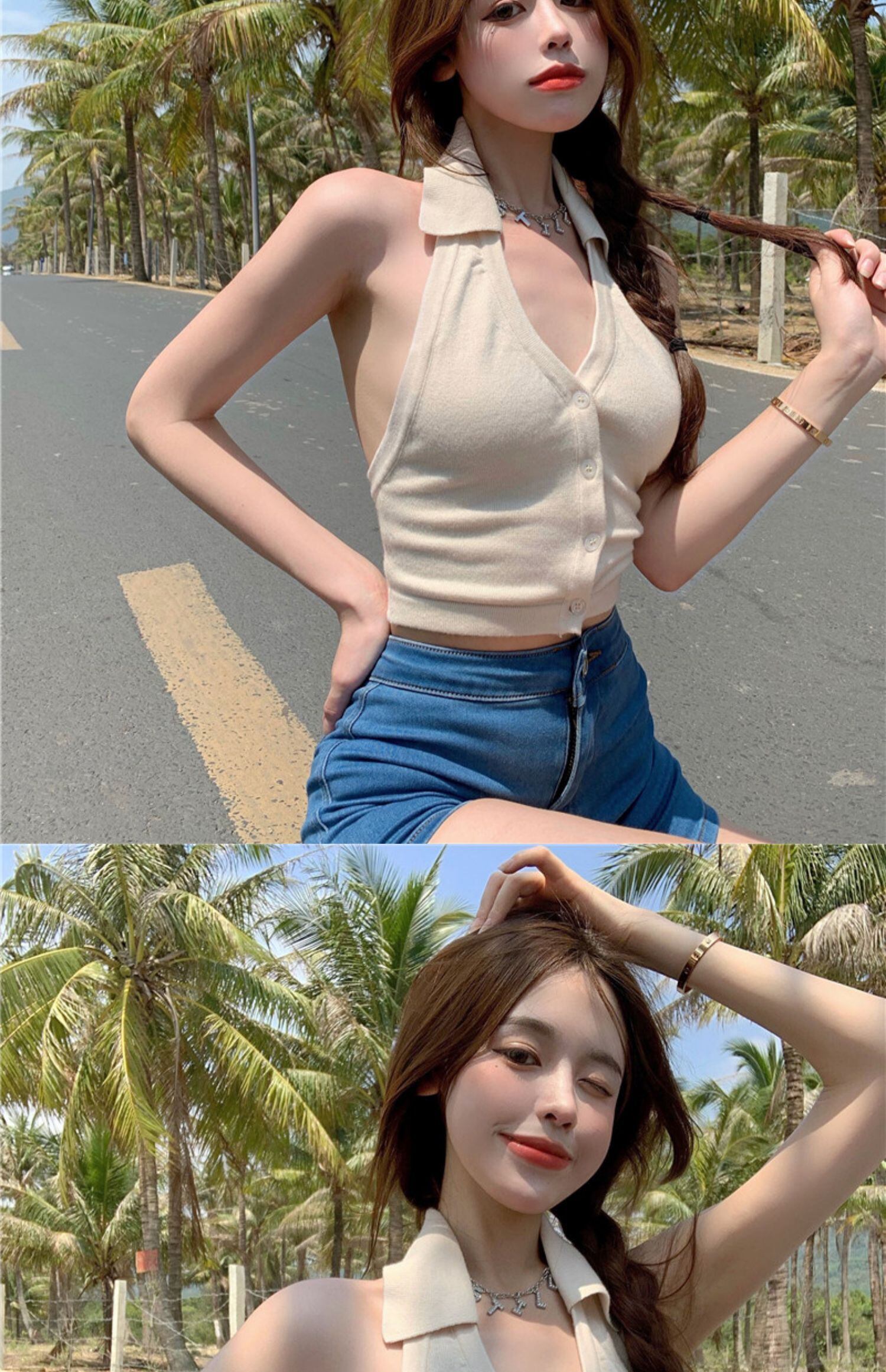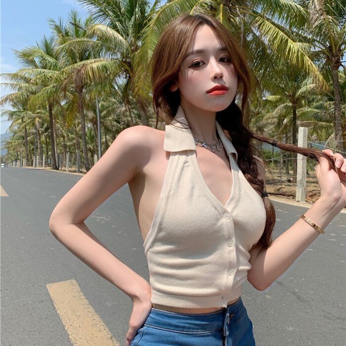 スタイルホルターショートカジュアルトップス ノースリーブサマー 夏物 ドラファッションホール64227728232
