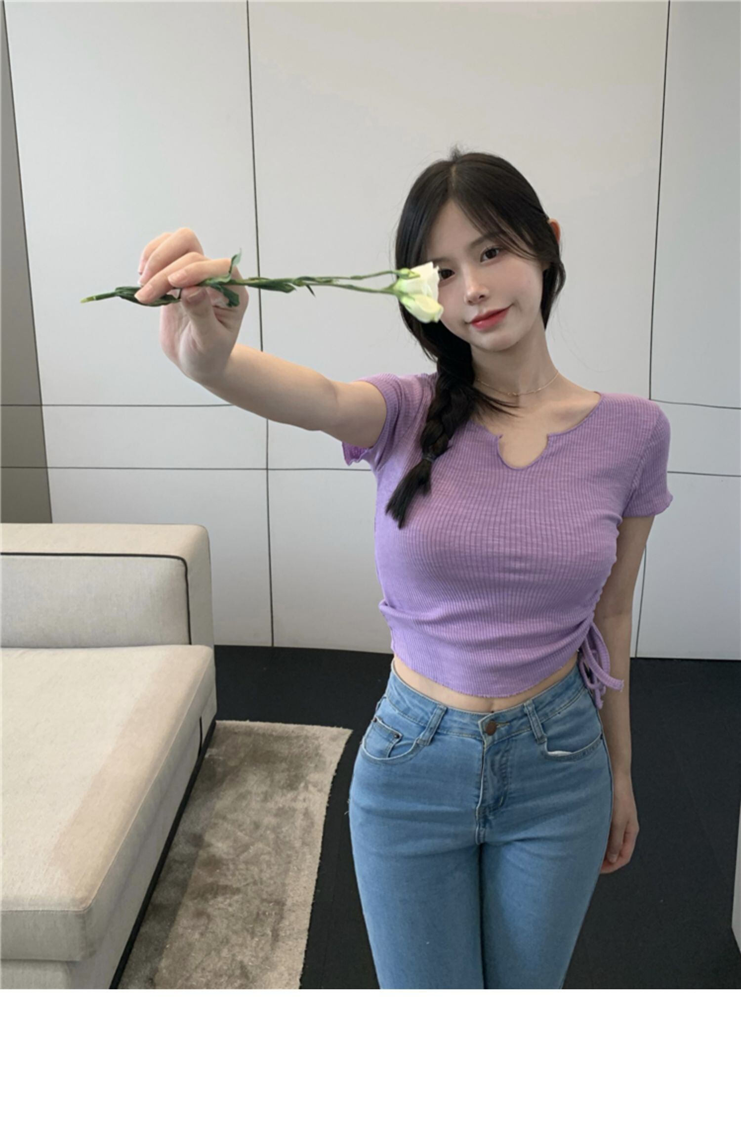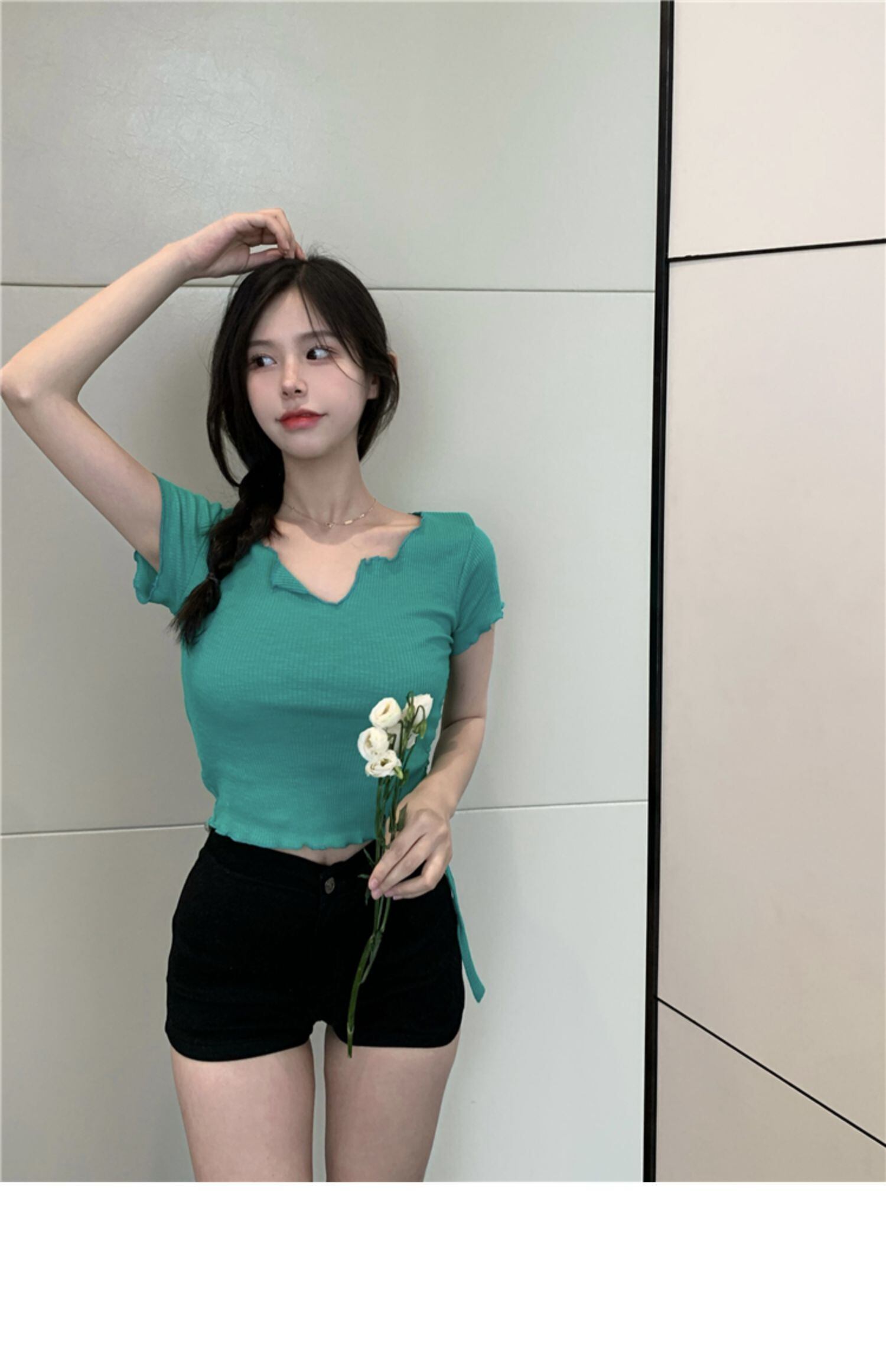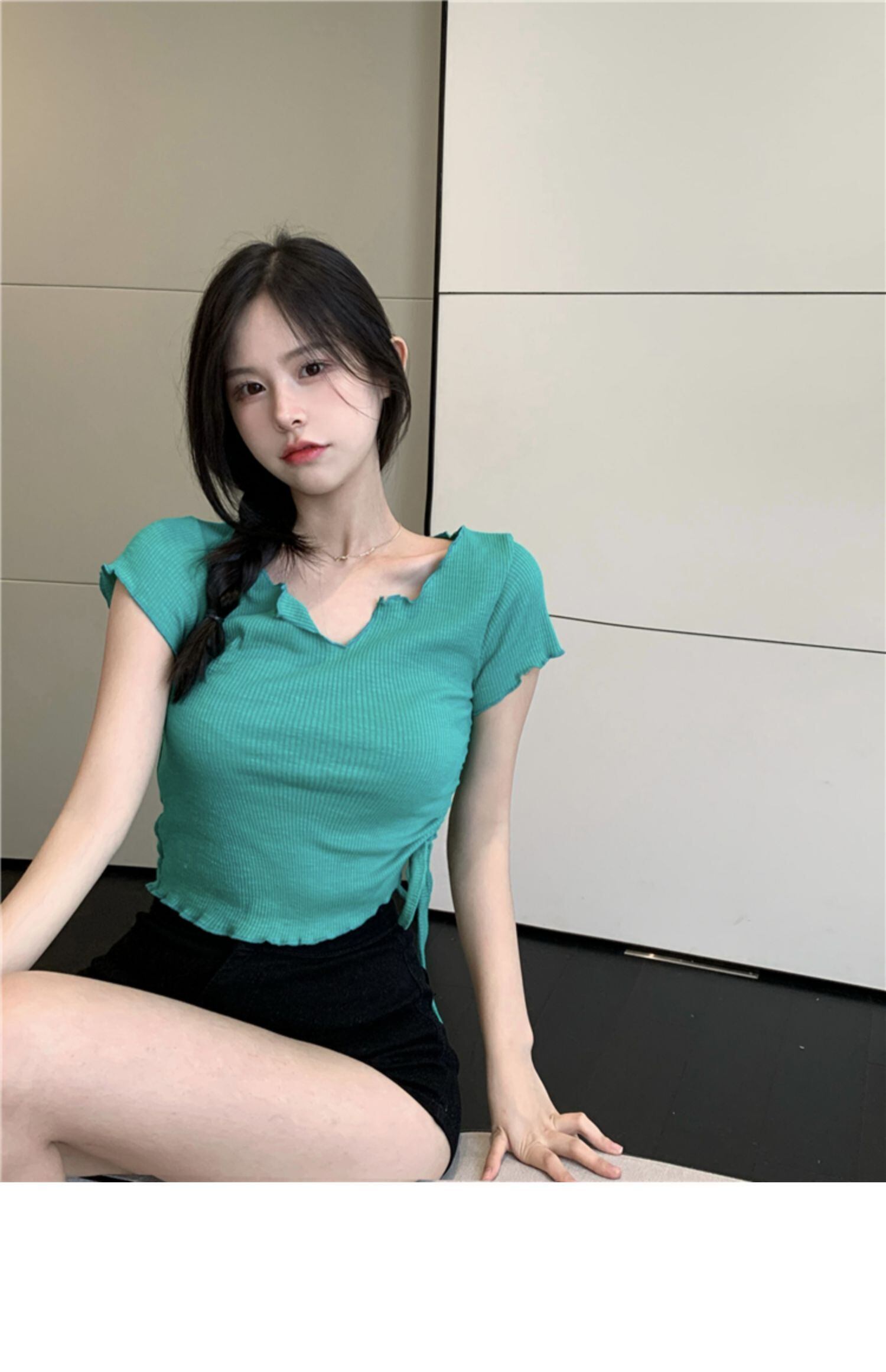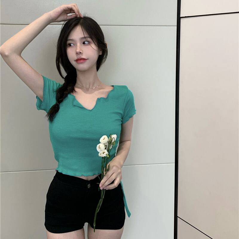 バンドギャザーショートトップス サマースリムTシャツ 夏物 ドラファッションホール84690805753