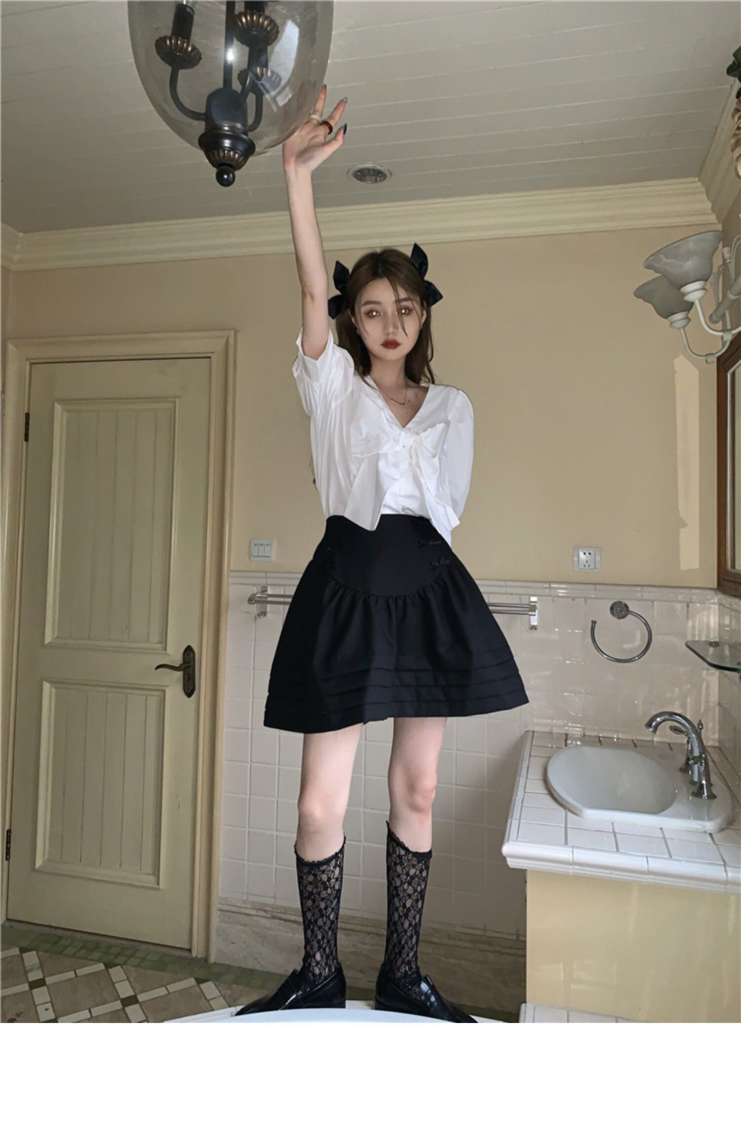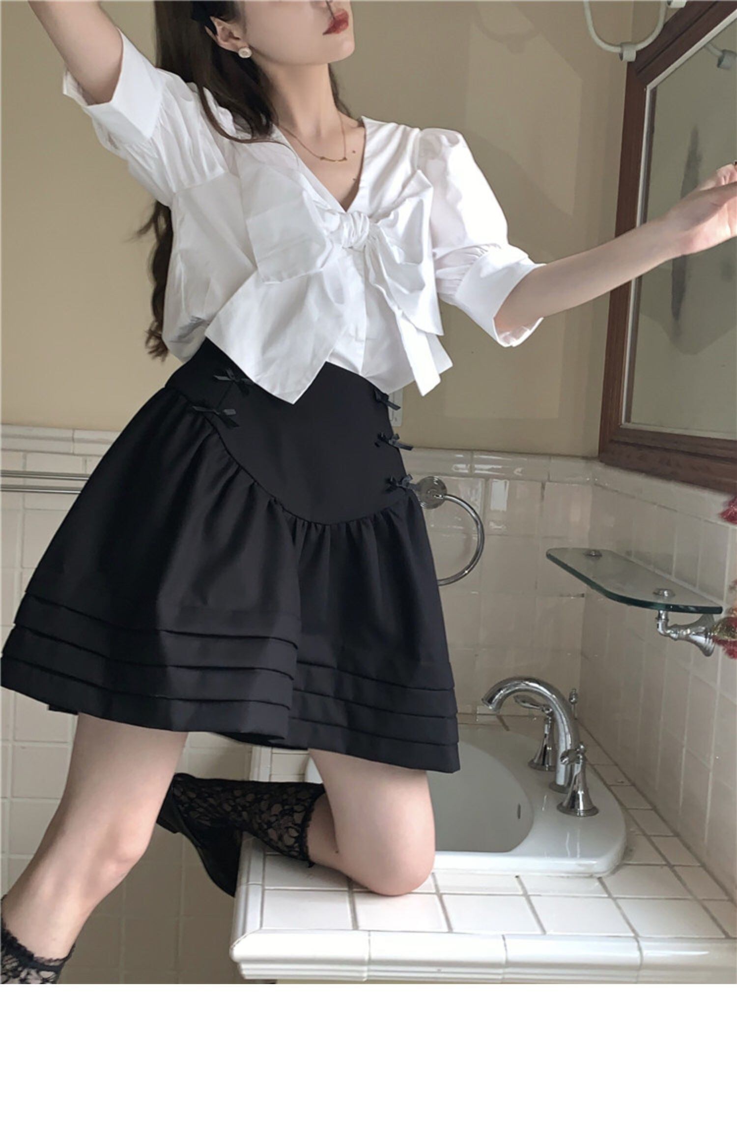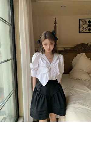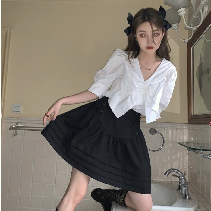 サマースタイルリボンシャツ スカート レディース 大人ガーリー スウィート キュート カジュアル 夏物 ドラファッションホール11467028970