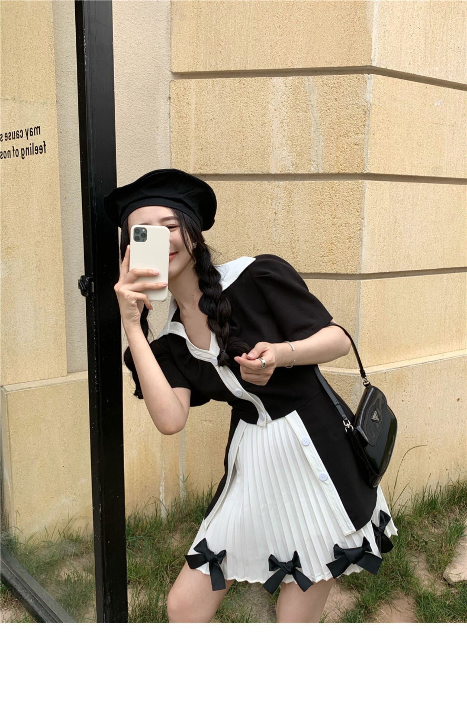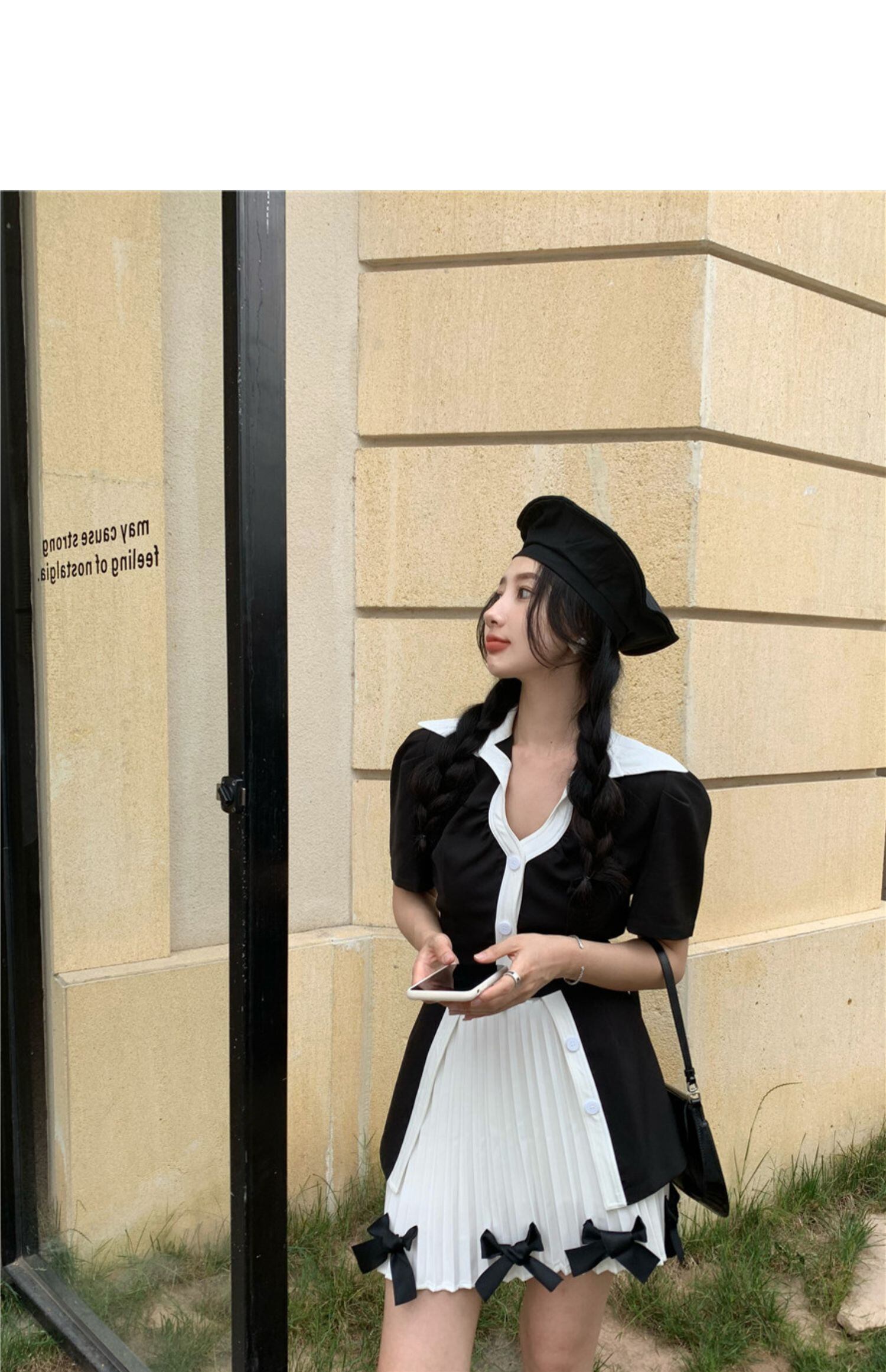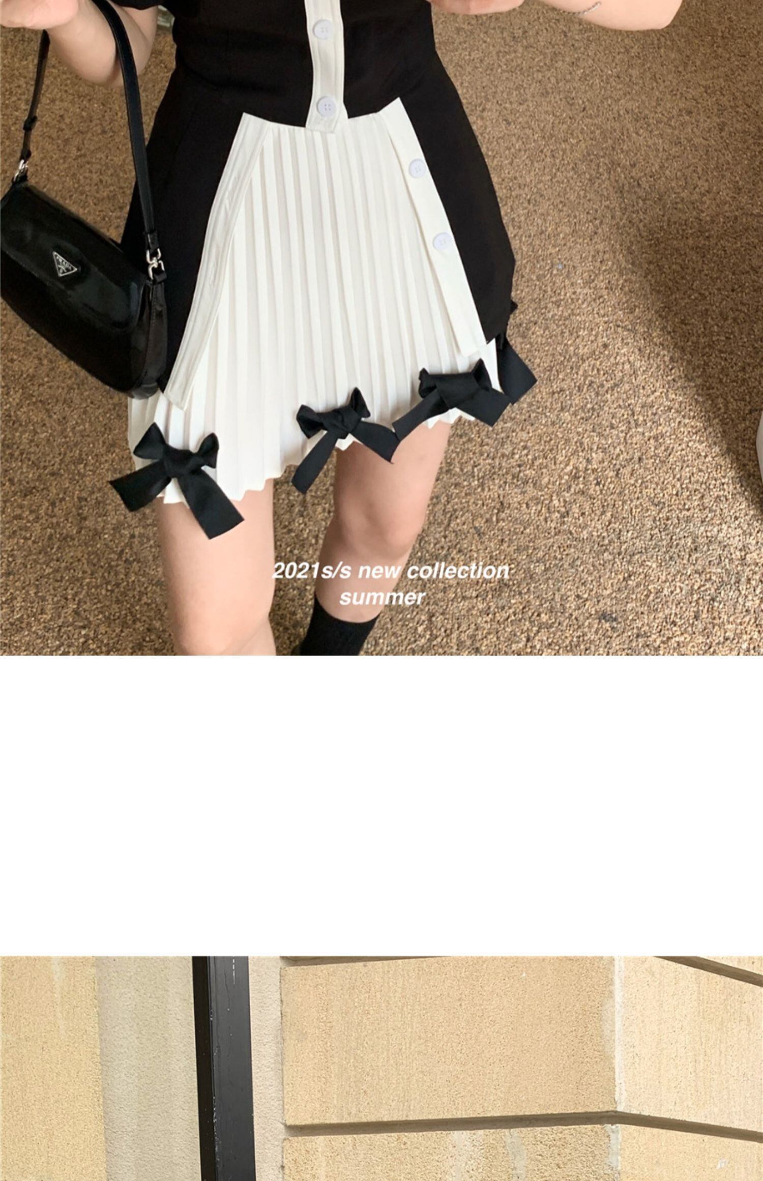 サマースタイルシャツ リボンプリーツスカート ストリート 大人ガーリー スウィート キュート カジュアル 夏物 ドラファッションホール83775934341