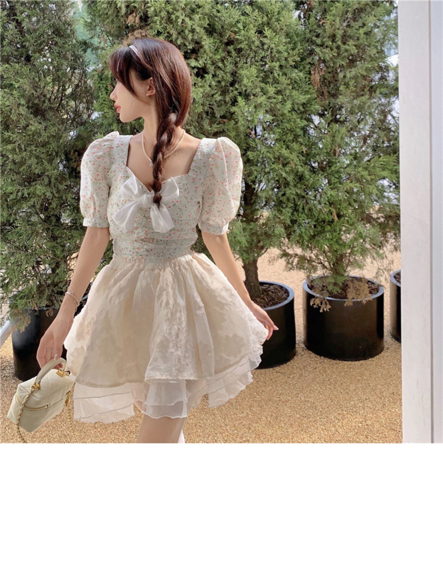 レディースサマーフローラルリボンシャツ スカート 大人ガーリー スウィート キュート カジュアル 夏物 花柄 ドラファッションホール84325446802