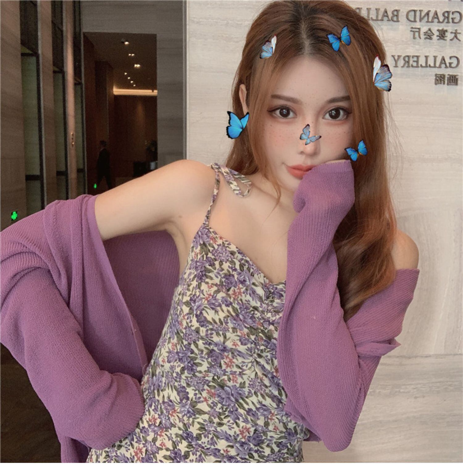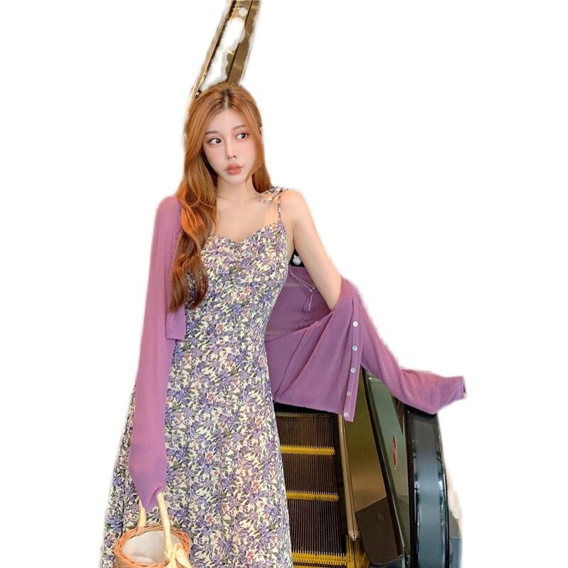 スタンダード薄手フローラルドレス サマーニットカーディガン ロング レトロ 夏物 花柄 ドラファッションホール84255896256