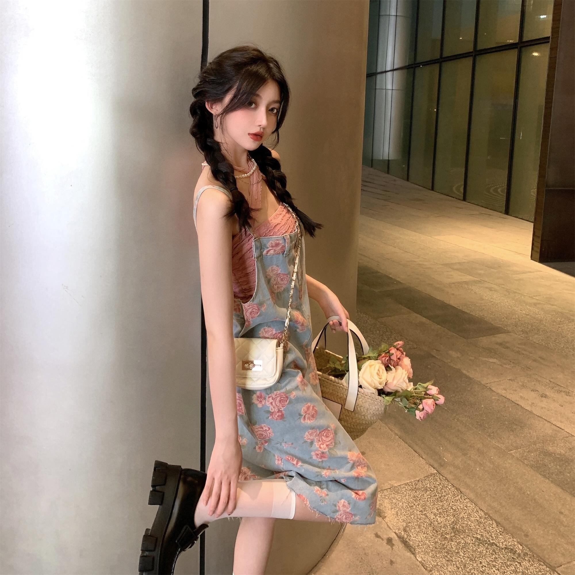 色:ピンクのベスト(全サイズ),デニムストラップドレス