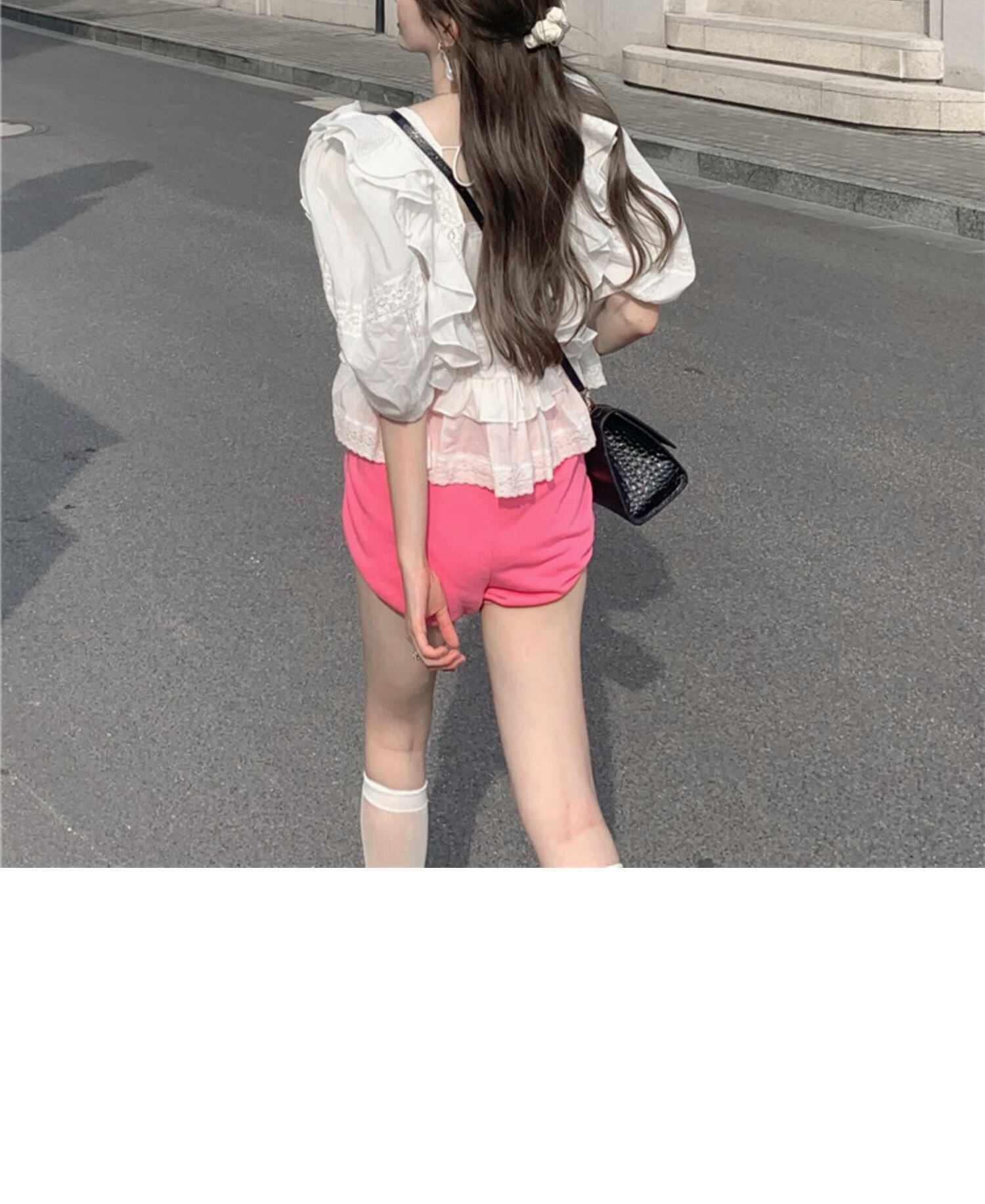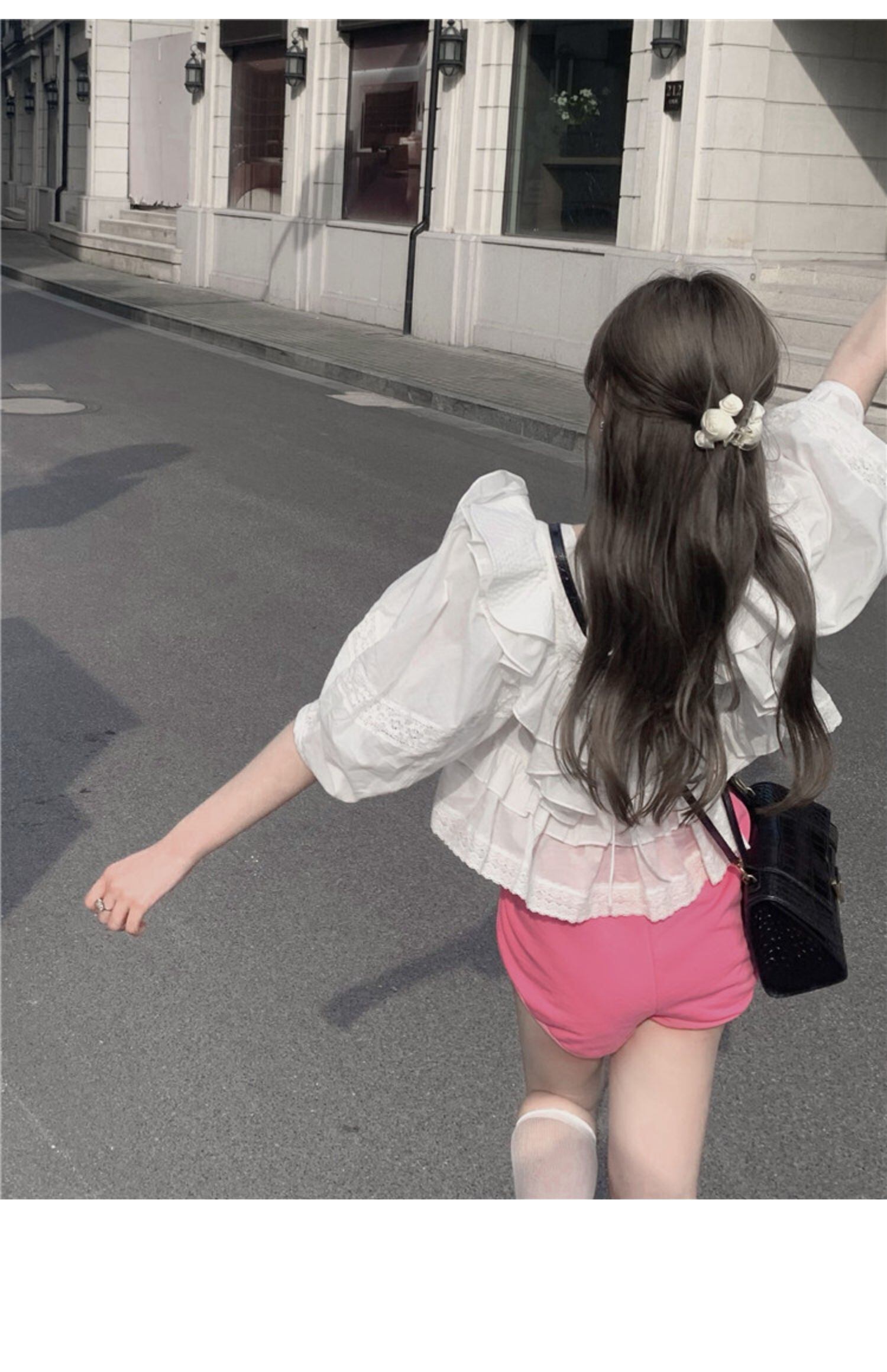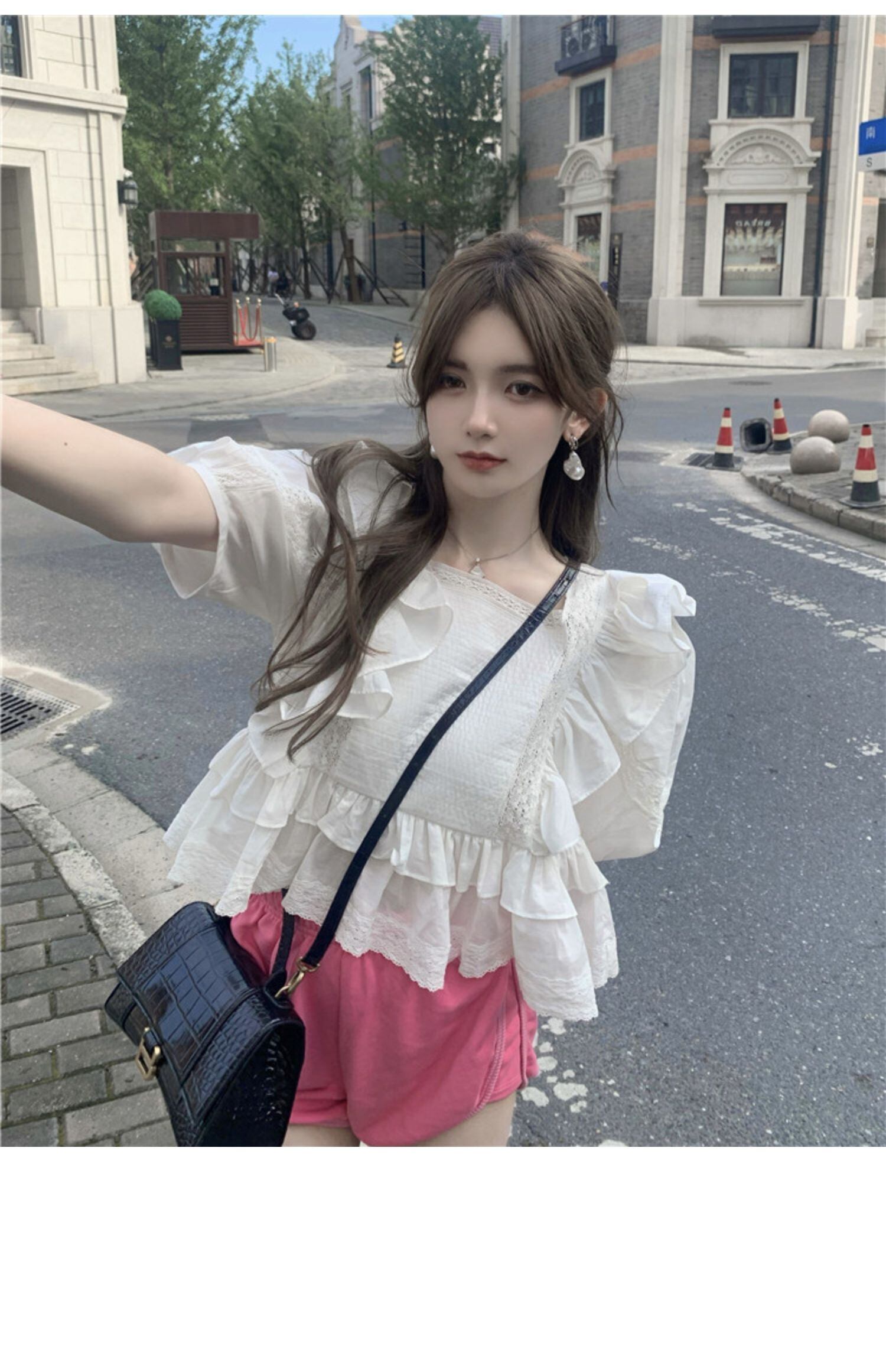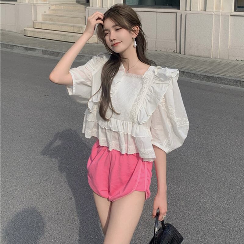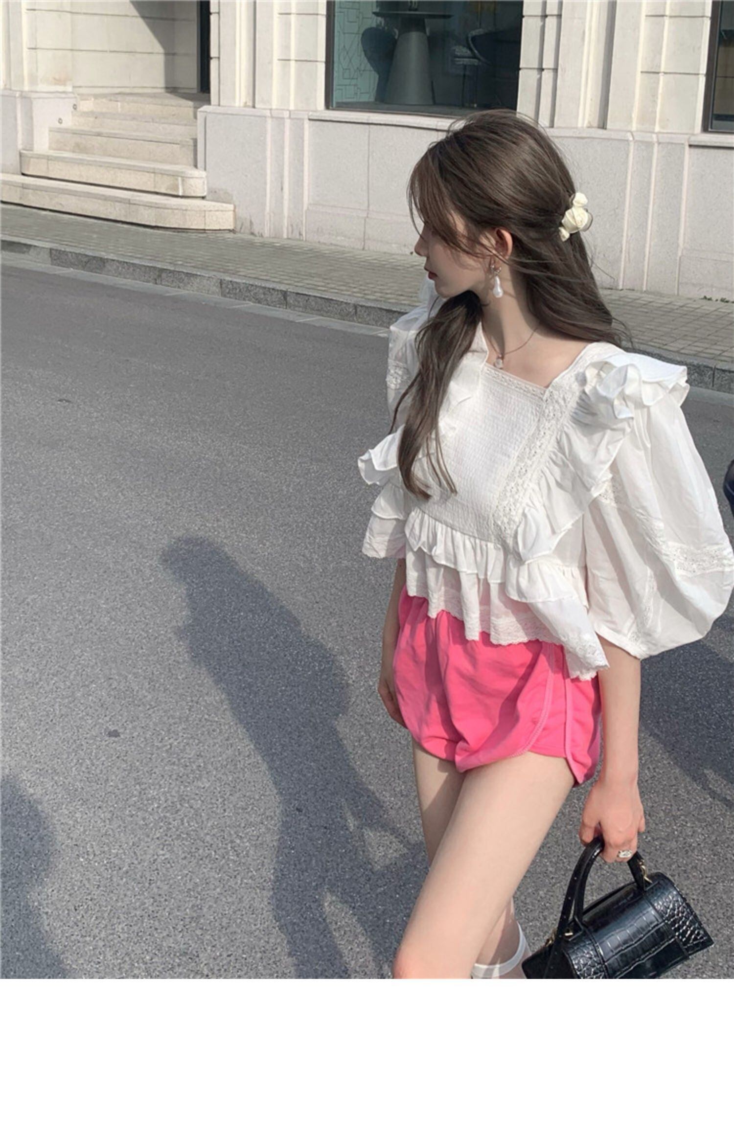 サマースタイルレースサイドスリーブシャツ ハイウェストウェストカラーパンツ レディース ランタンスリーブ 大人ガーリー スウィート キュート カジュアル 夏物 ドラファッションホール72248825925