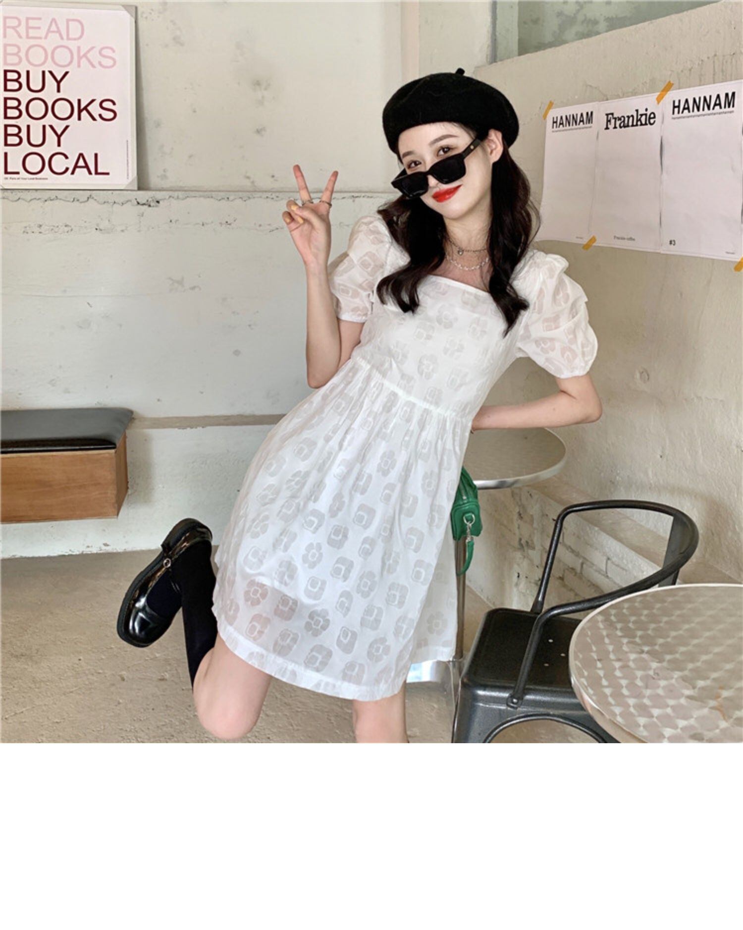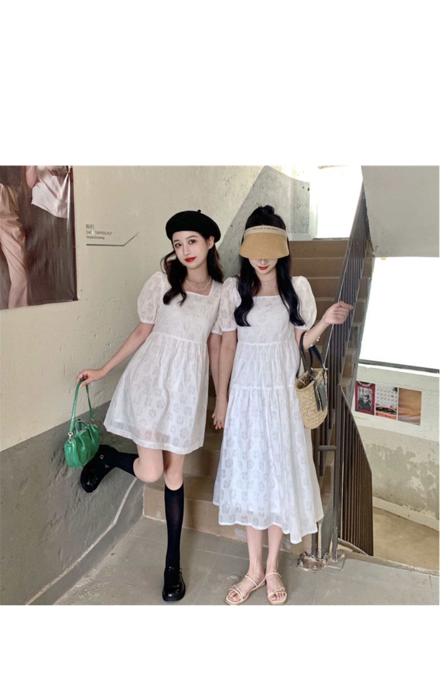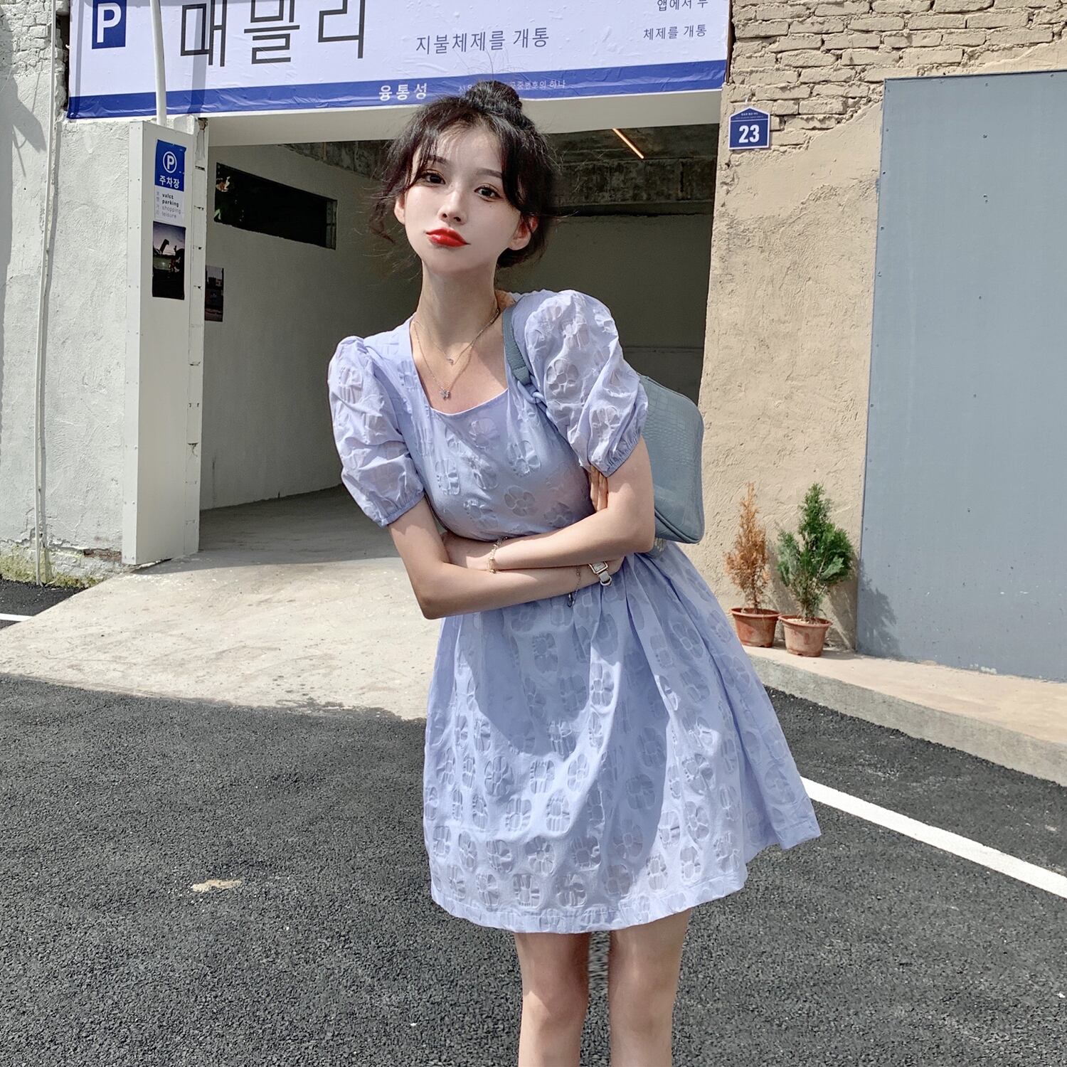 サマースタンダードドレス ウェストスカート レディース レトロ 夏物 スクウェア ドラファッションホール64144682487