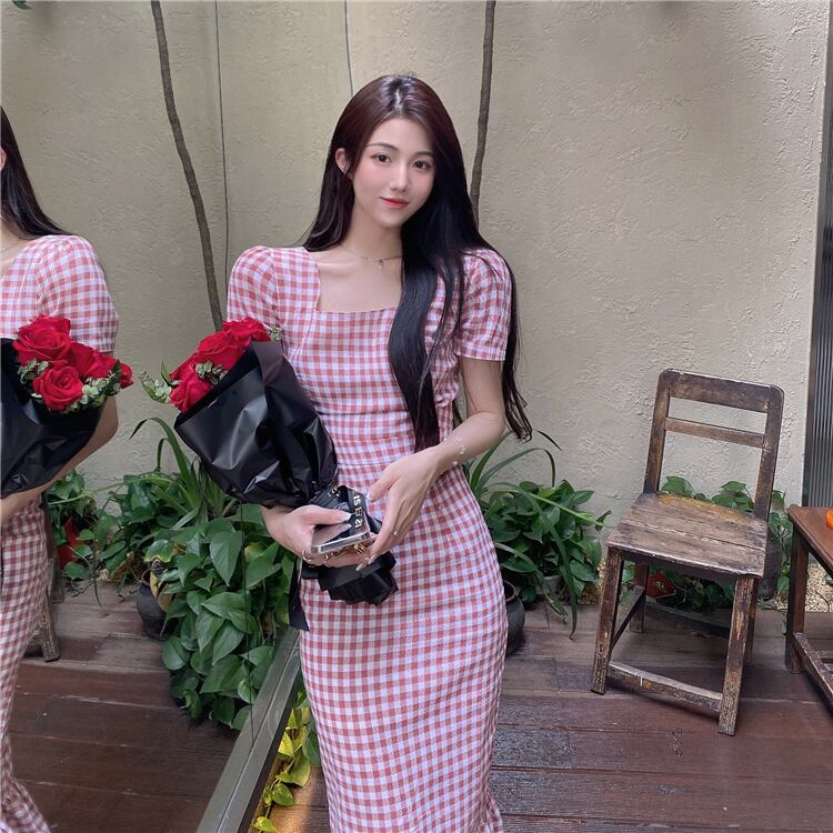 サマーカラー格子柄ドレス 夏物 スクウェア ドラファッションホール29881435627