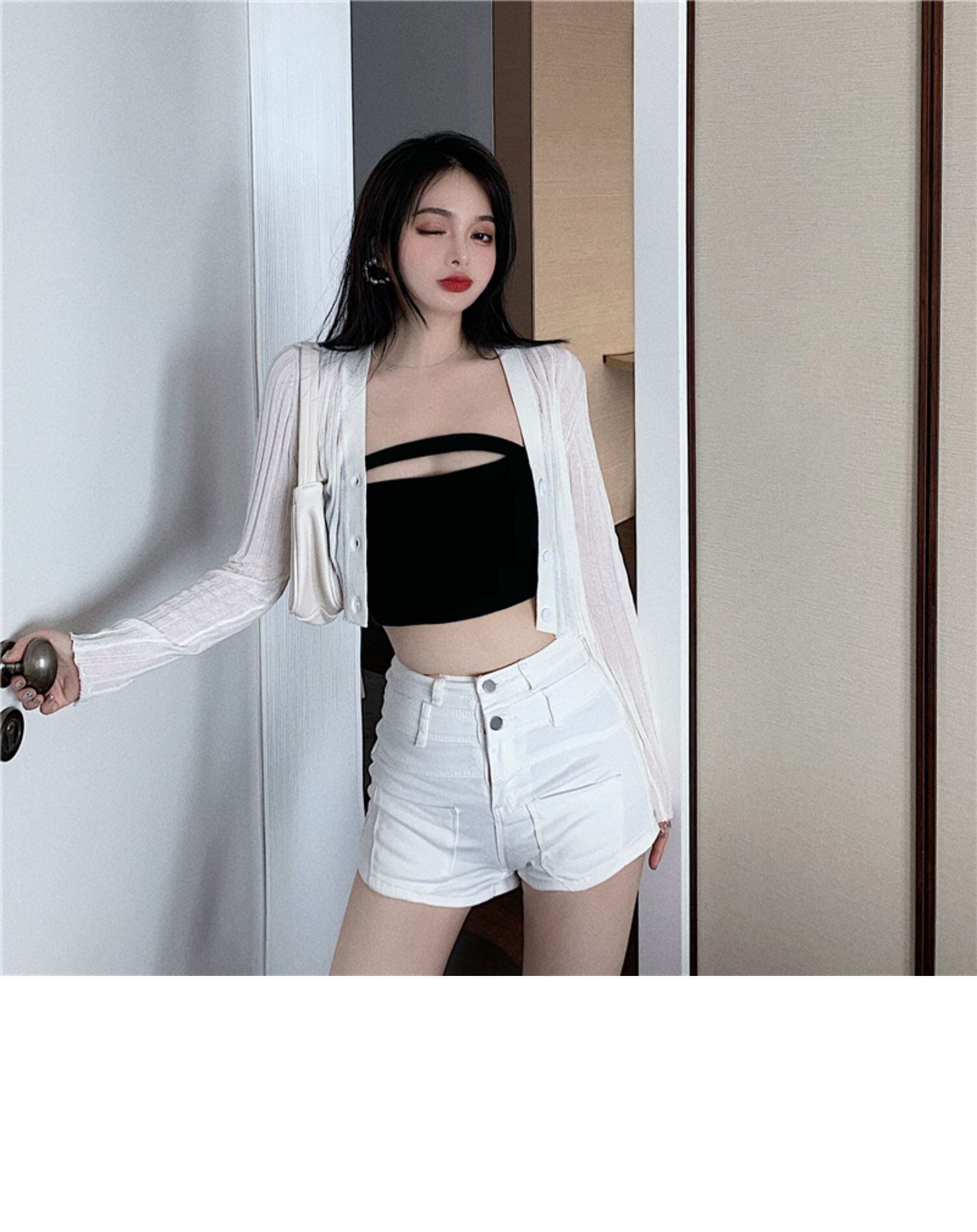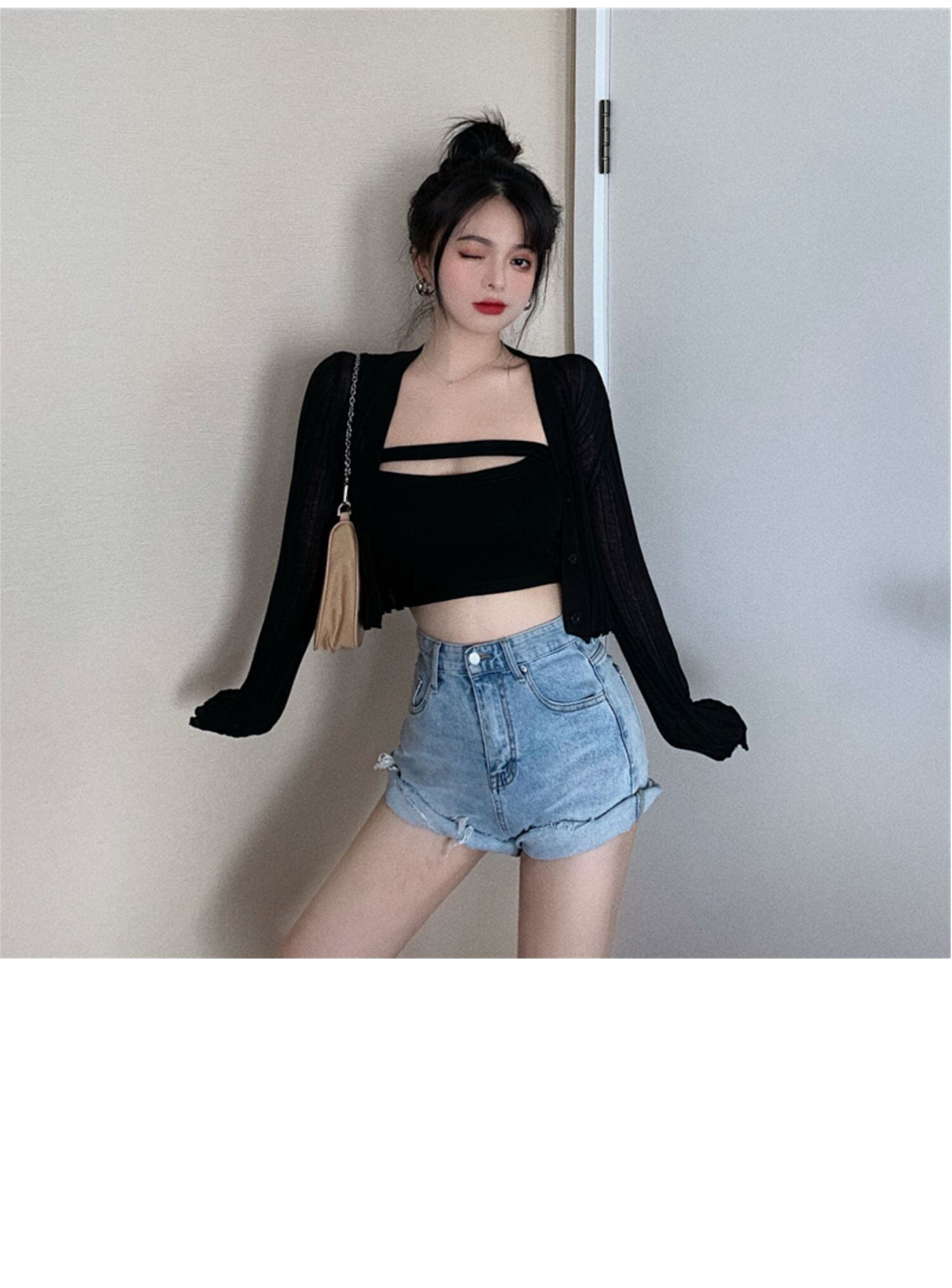 色:ブラックカーディガン,白いカーディガン,黒いチューブトップ,青いチューブトップ