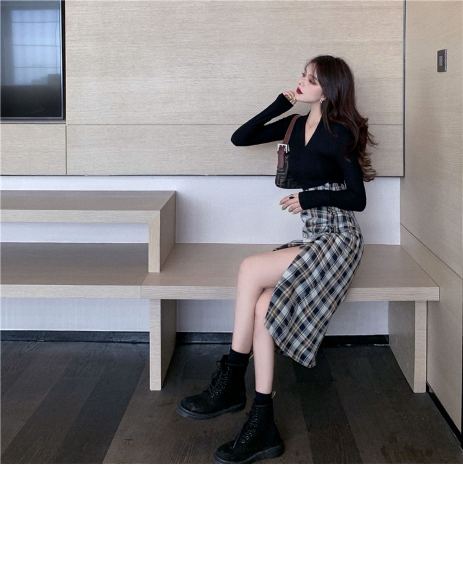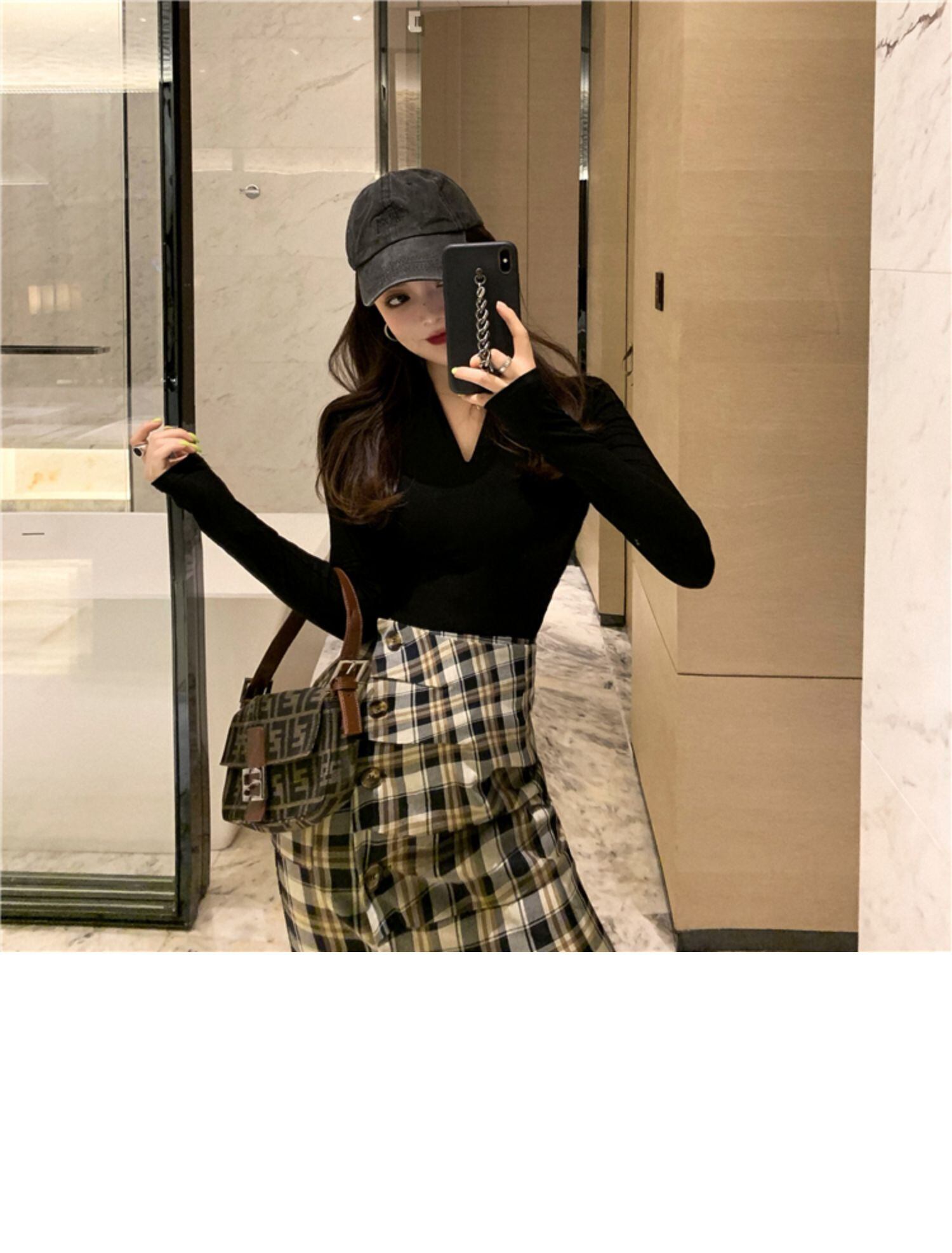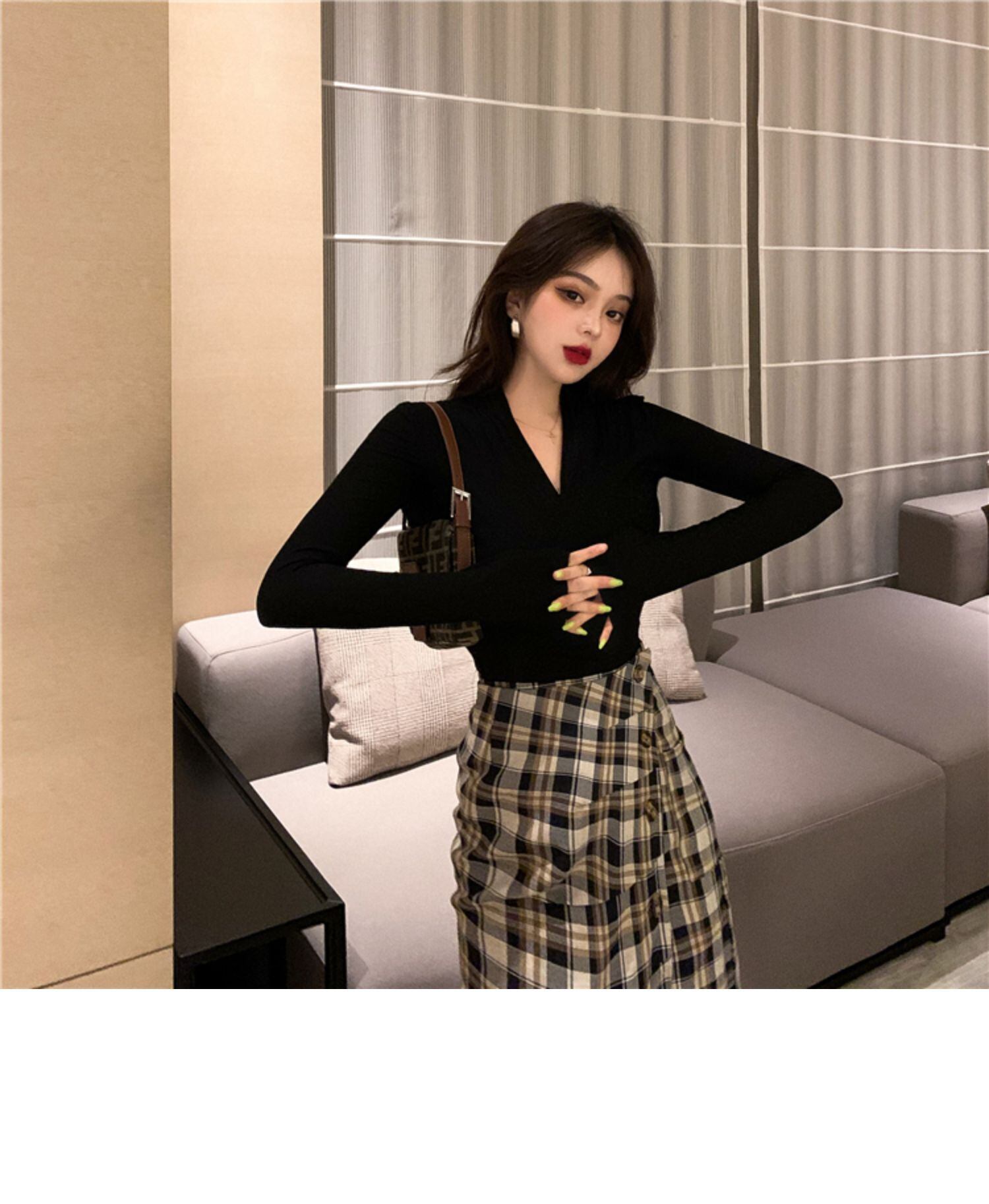 オータムVネックレッドシャツ スカート スタイルレディース 秋物 ドラファッションホール17474876187