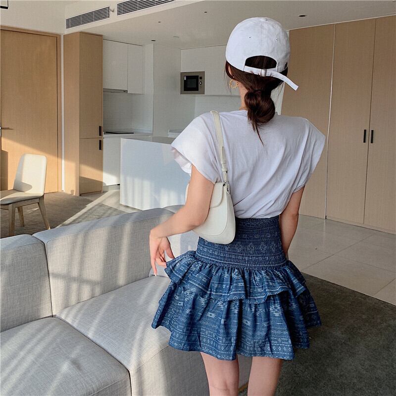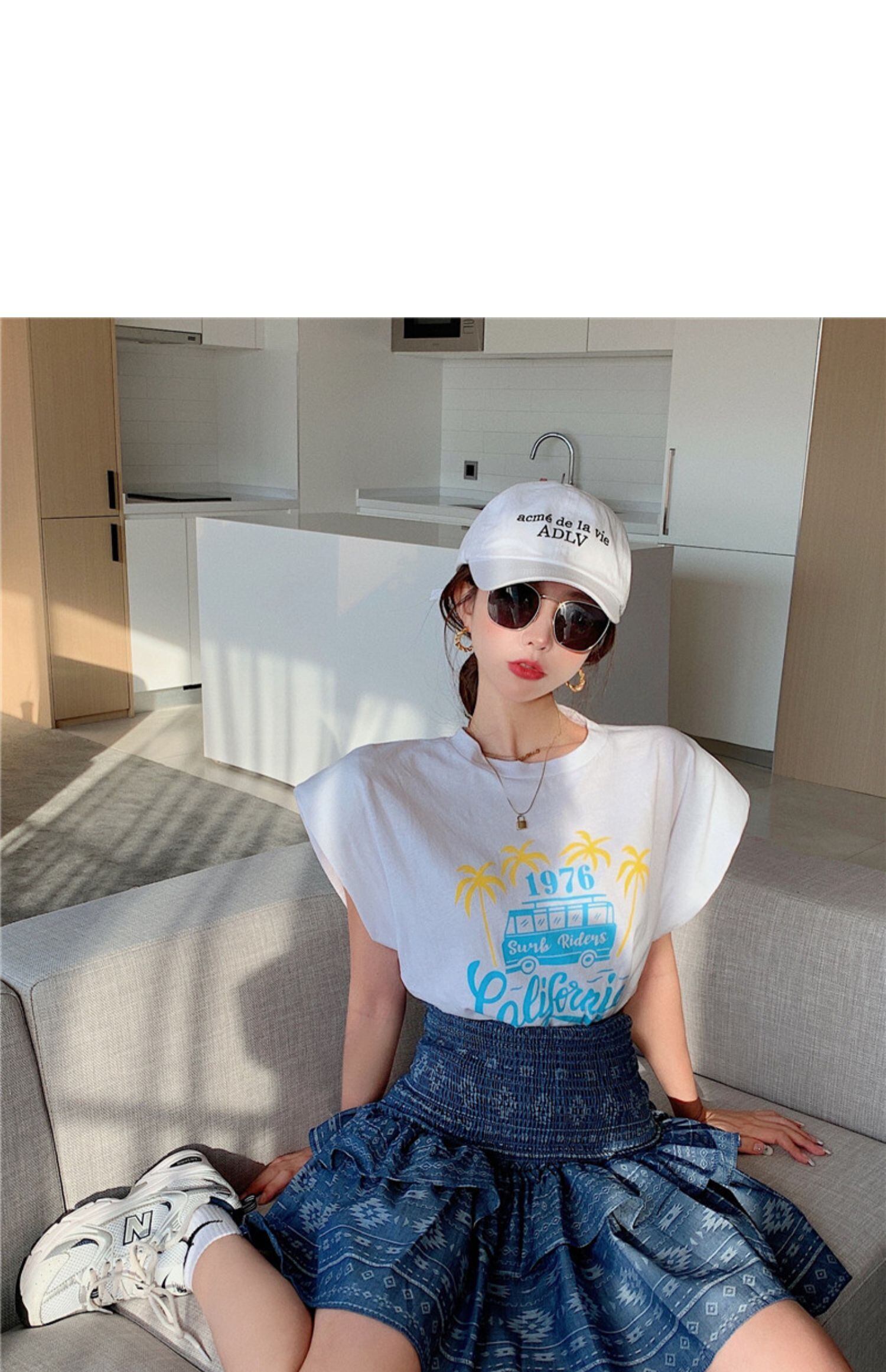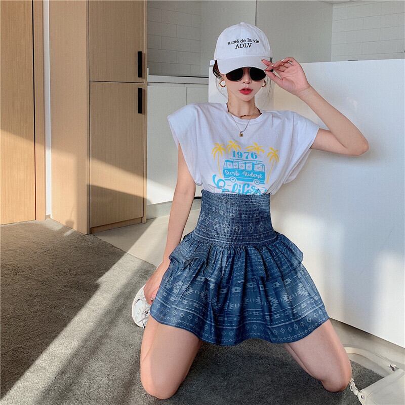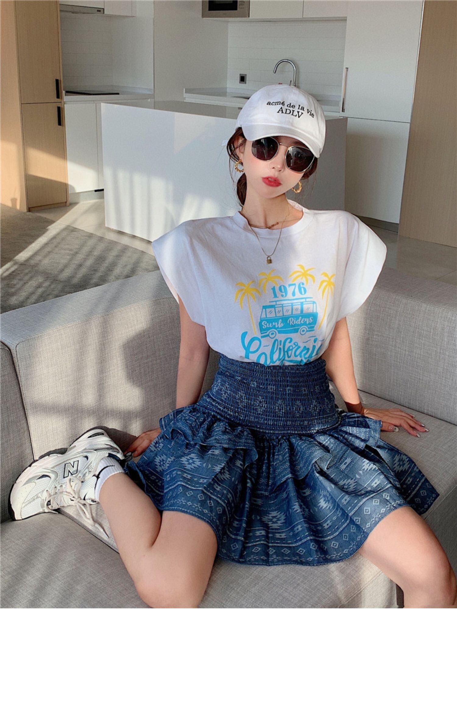 サマースタイルプリントTシャツ ハイウェストウェストスカート 夏物 ドラファッションホール75940171789