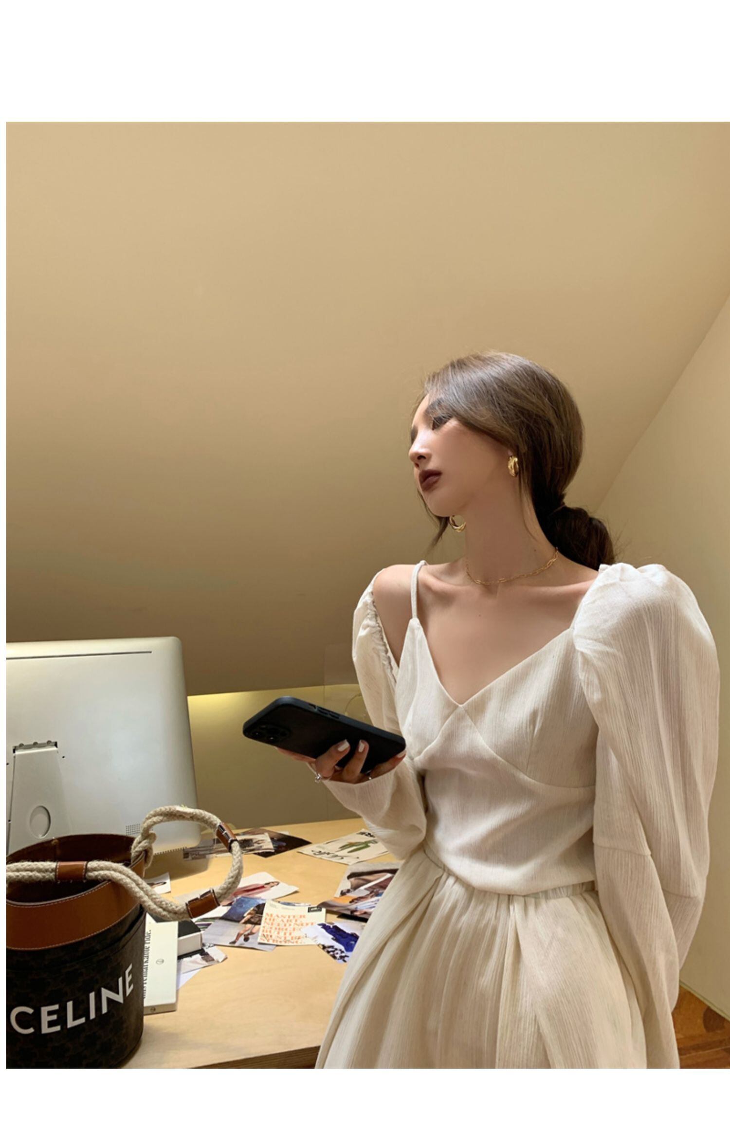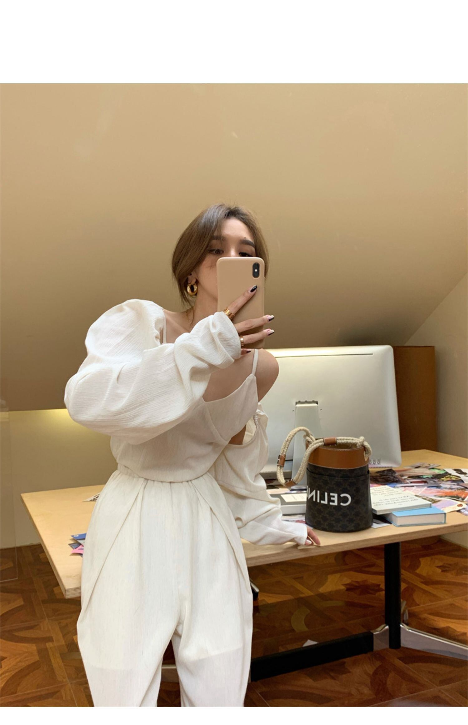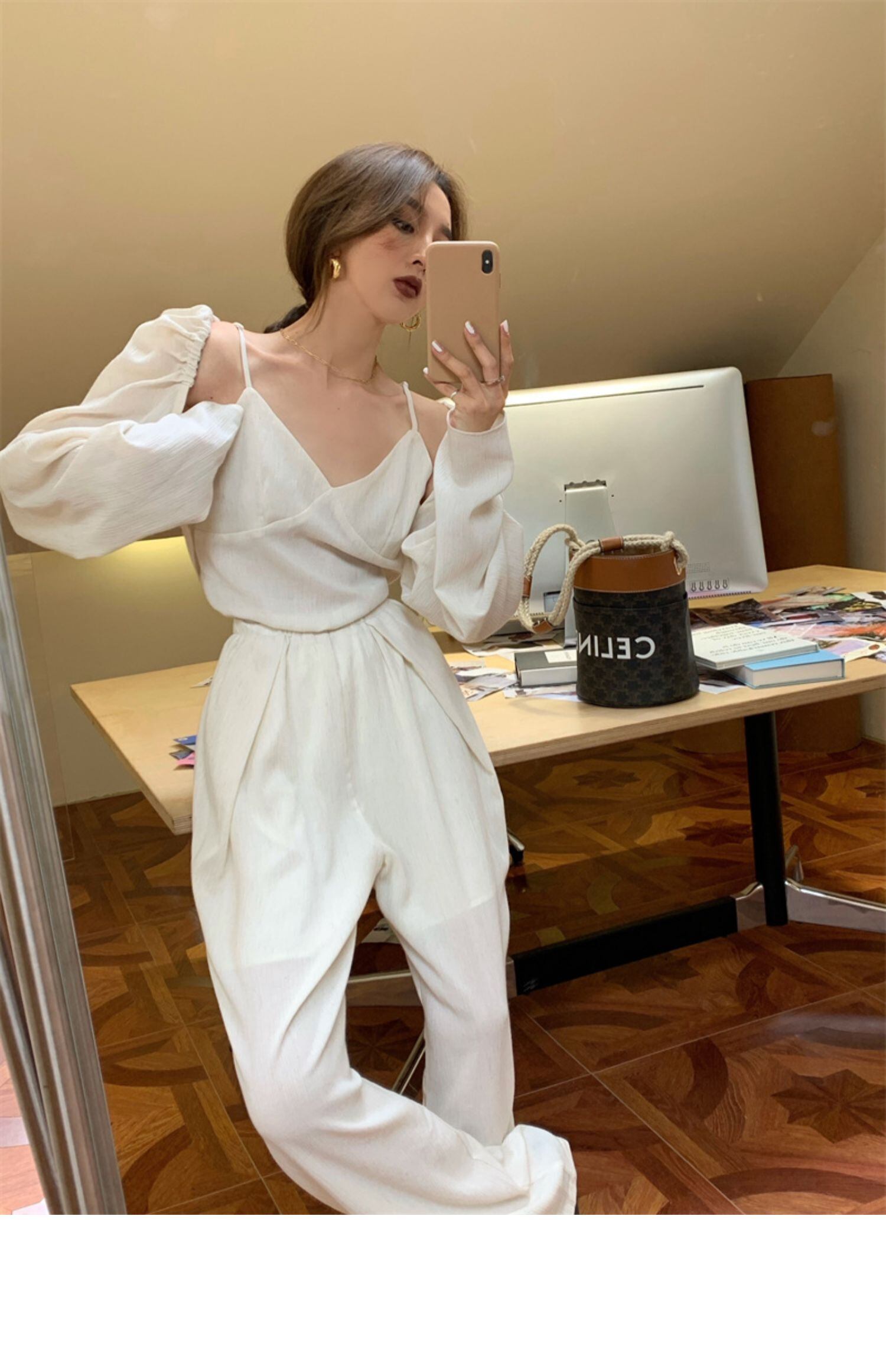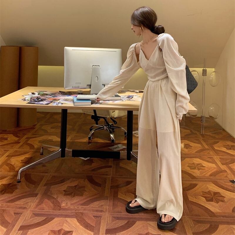 色:スリング,カーディガン,ワイドレッグパンツ