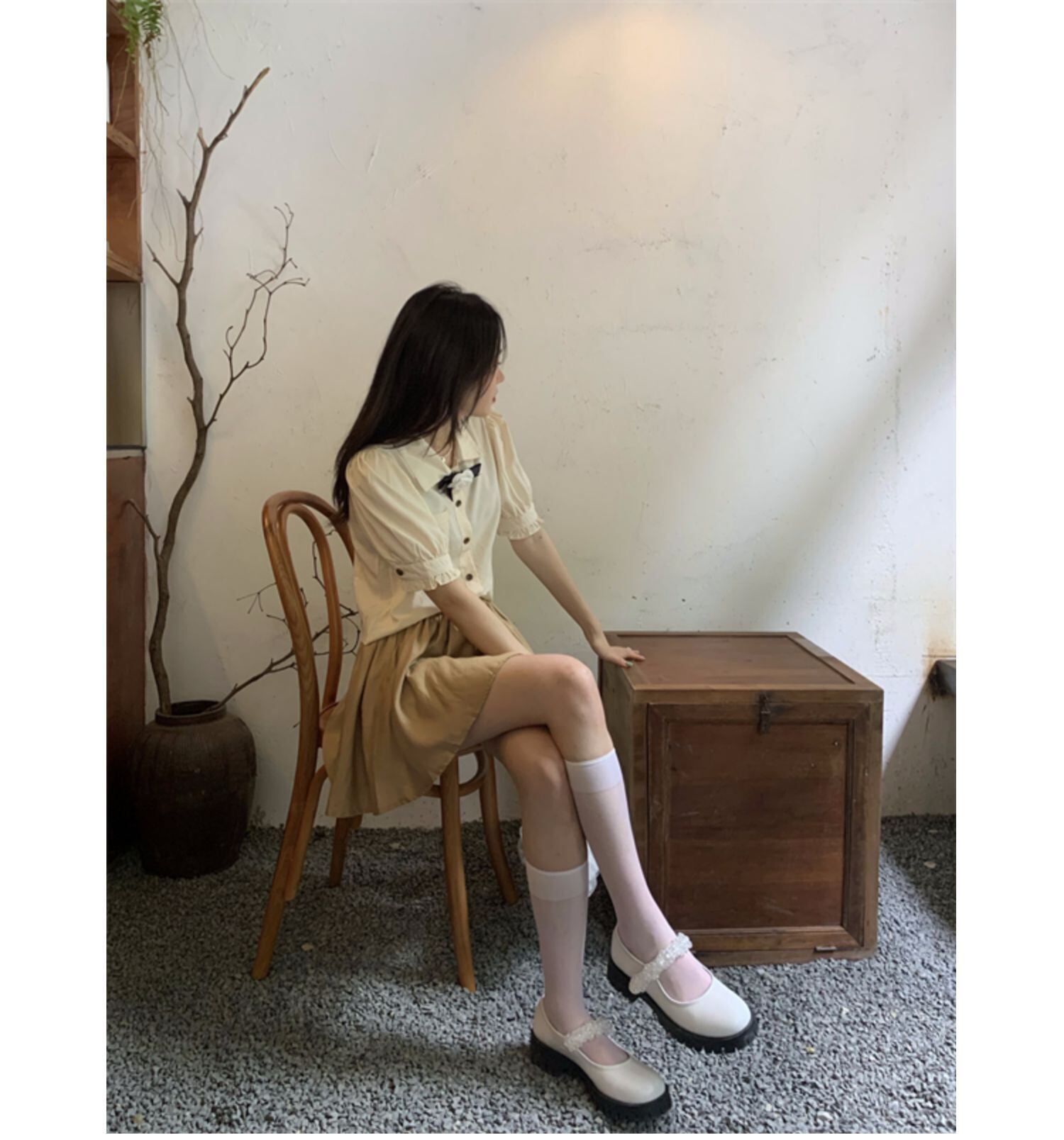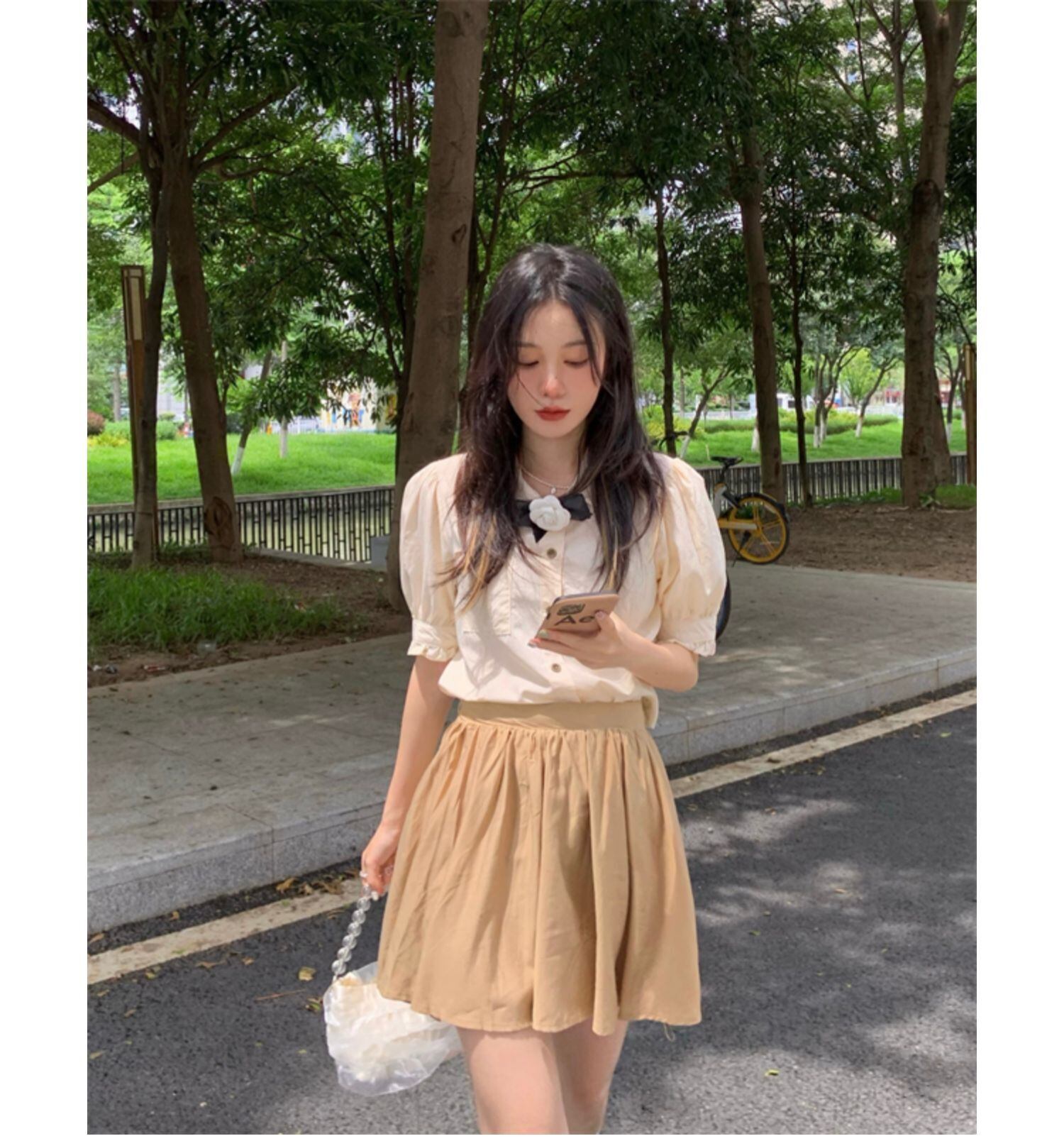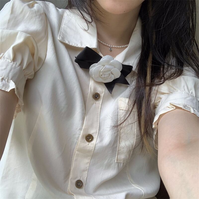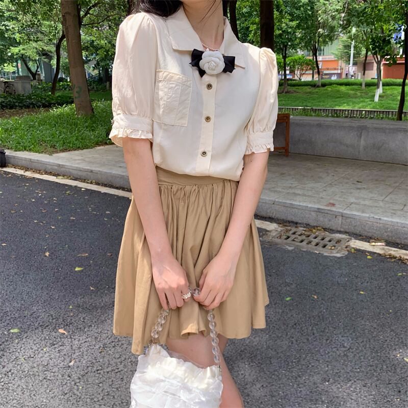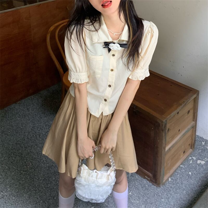 色:コサージュ付きシャツ,スカート