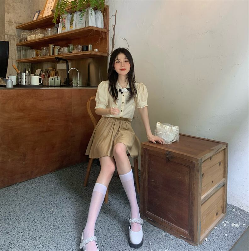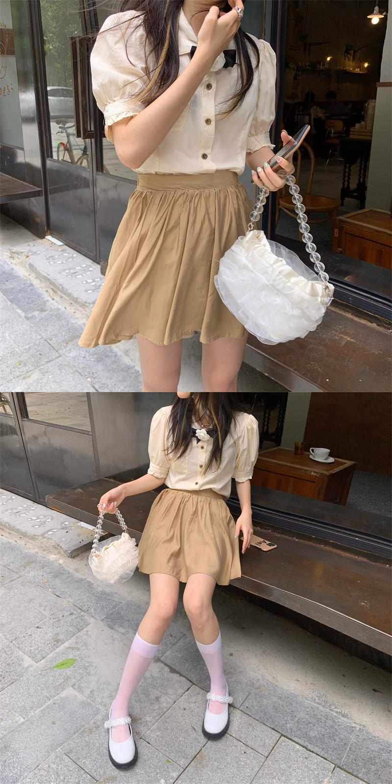 スタンダードスリーブ半袖シャツ カジュアルハイウェストウェストスリムスカート サマー ショート レトロ ハーフスリーブ 夏物 ドラファッションホール91846503166