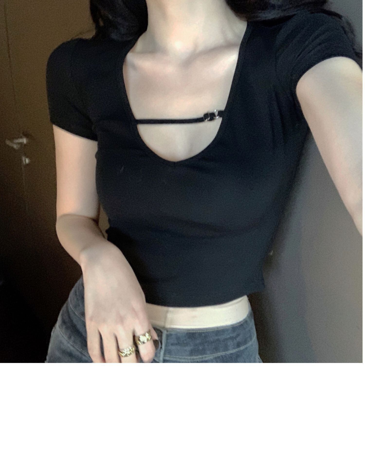 サマースタイルスタンダードレッド半袖スリーブトップス スリムベーシックTシャツ レディース ショート レトロ ハーフスリーブ 夏物 ドラファッションホール99076666206