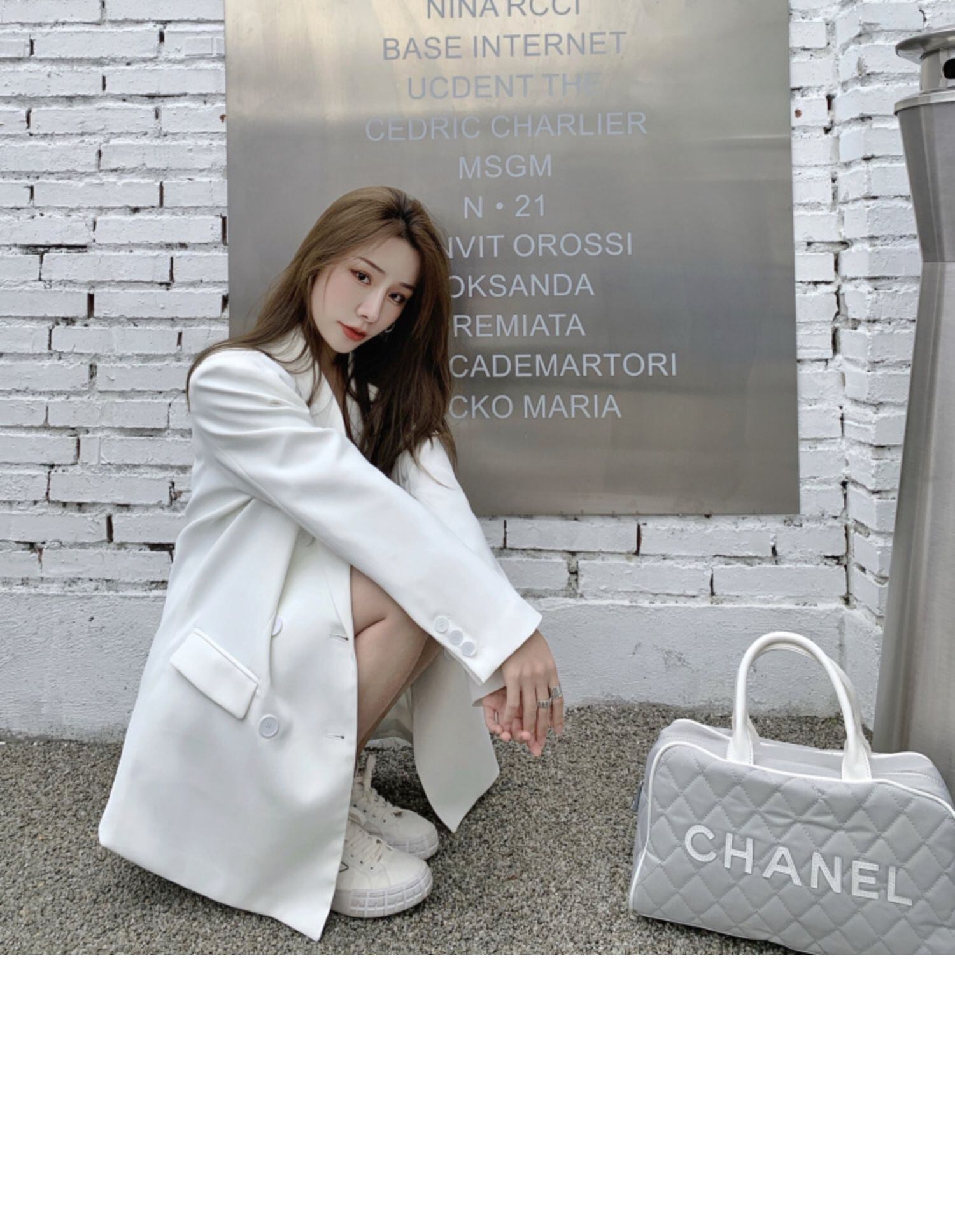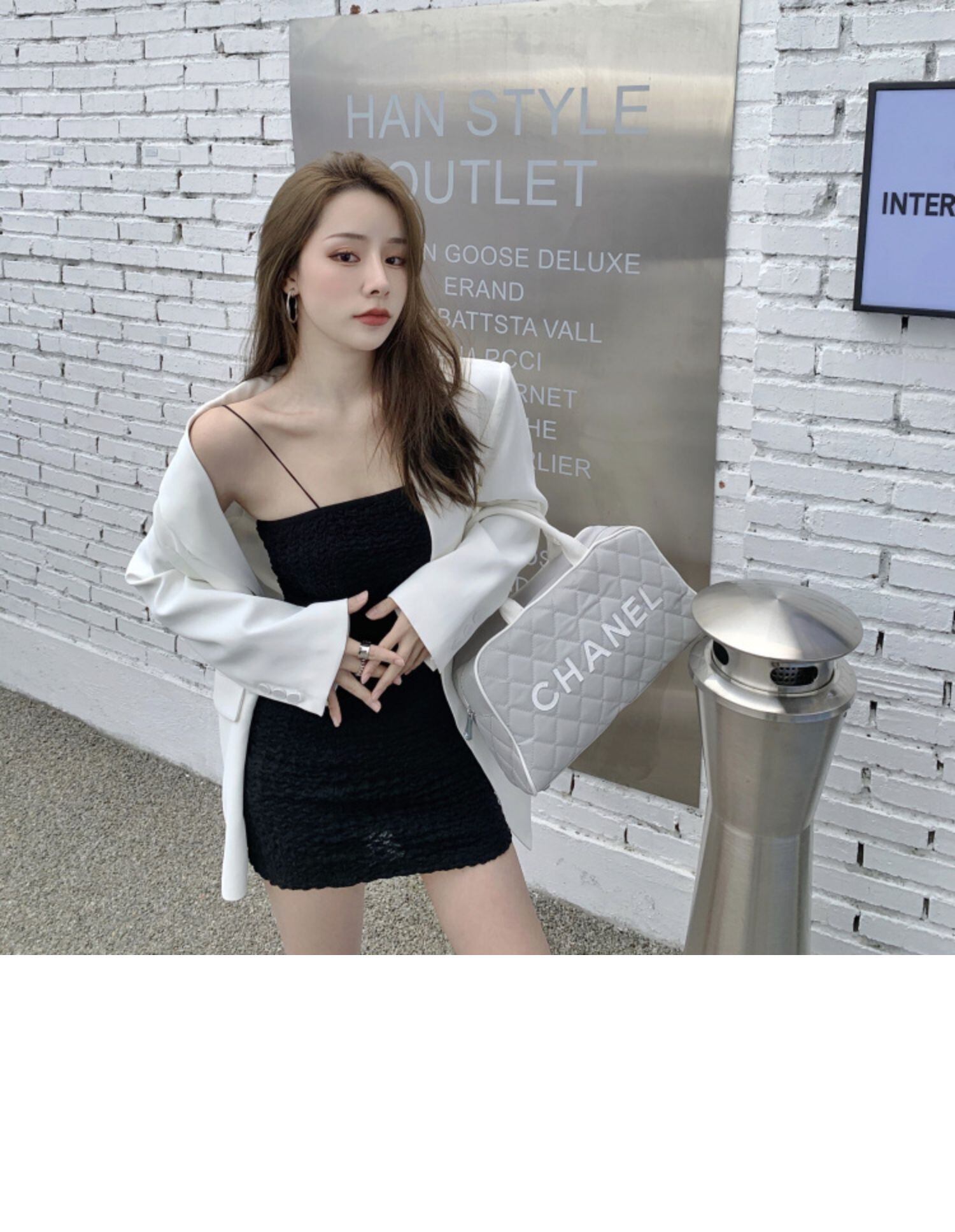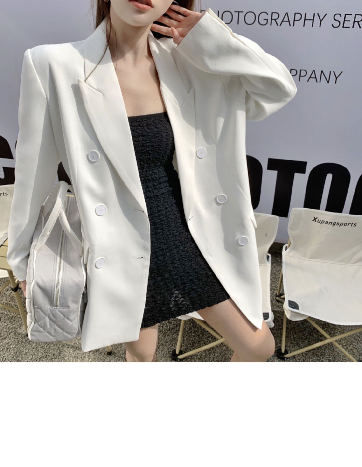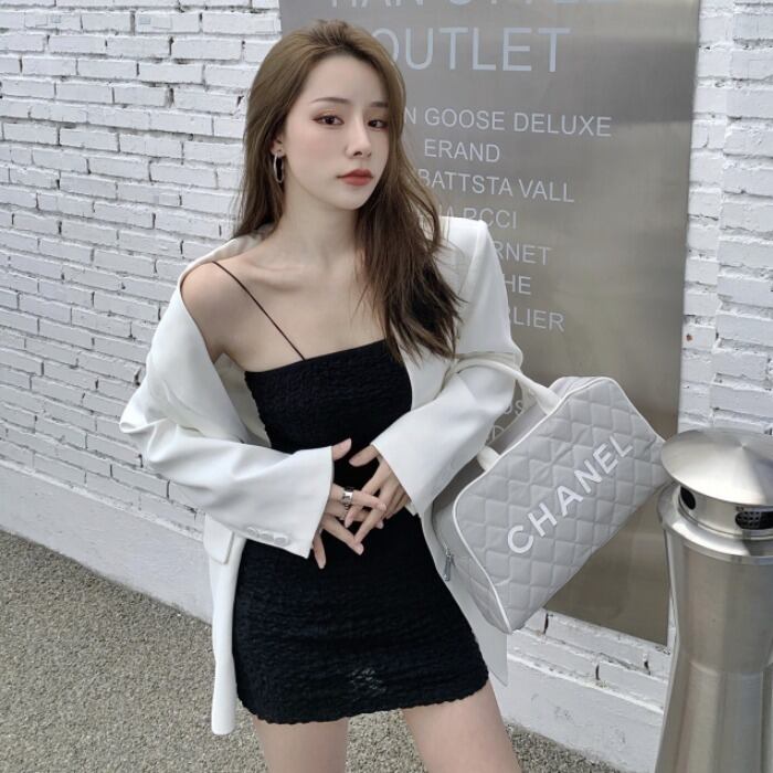 色:白いスーツ,ブラックサスペンダースカート