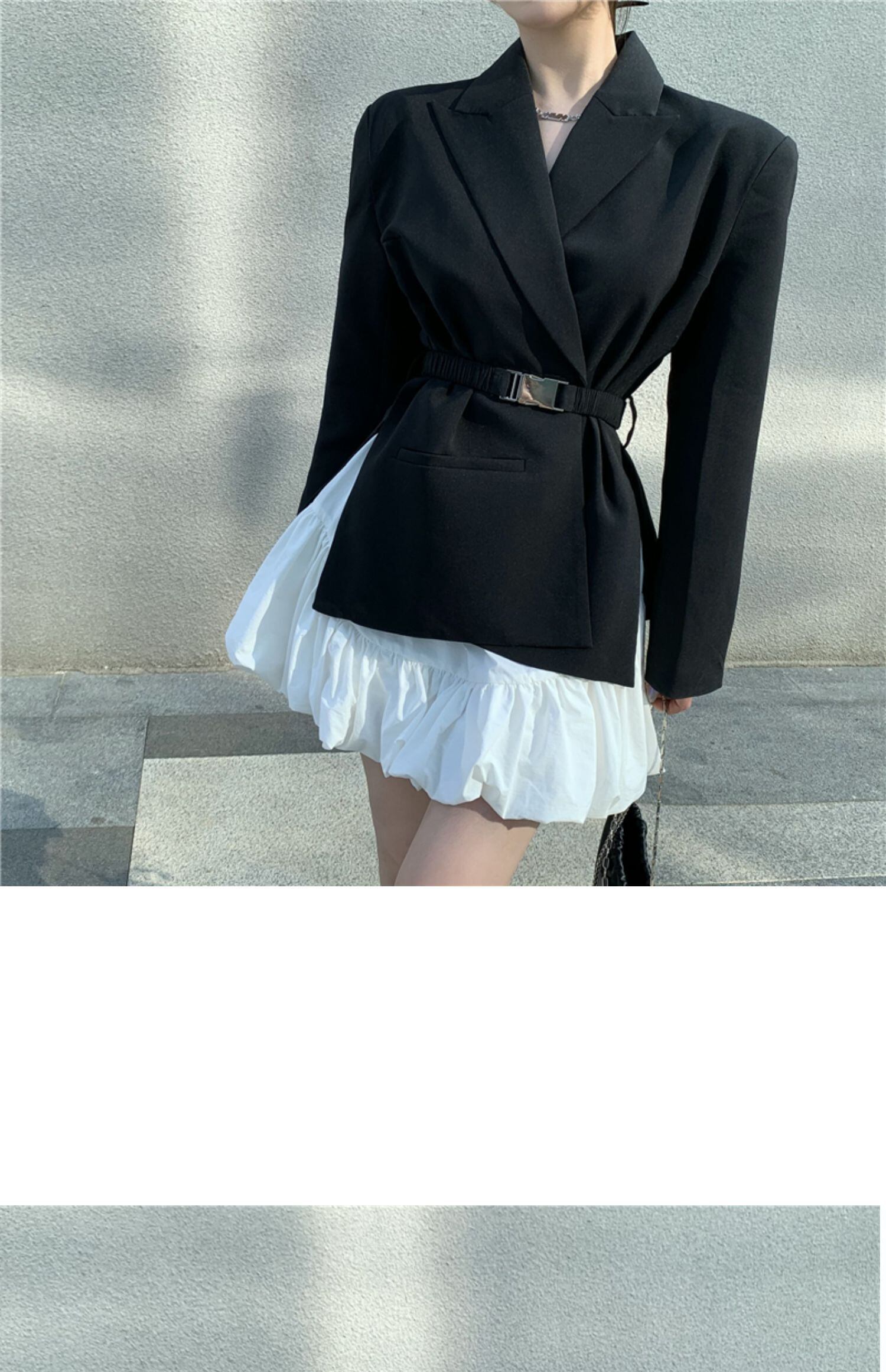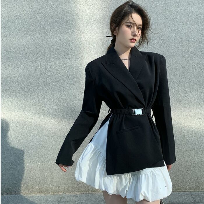 色:黒いスーツ,白いスカート