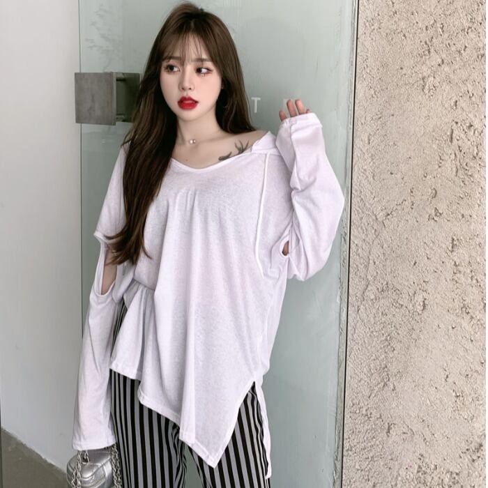 サマースタイルフードトップス ルーズシャツ Tシャツ レディース ロング 夏物 ドラファッションホール36593471641