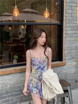 カジュアルスタンダードフローラルスカート サマードレス ウェストスリム レトロ 夏物 花柄 ドラファッションホール13474405812