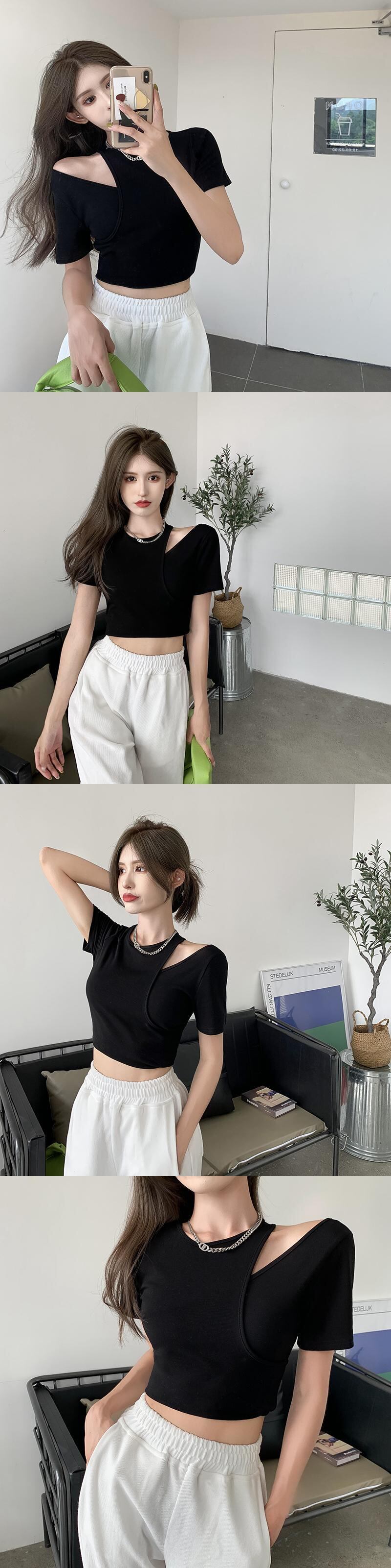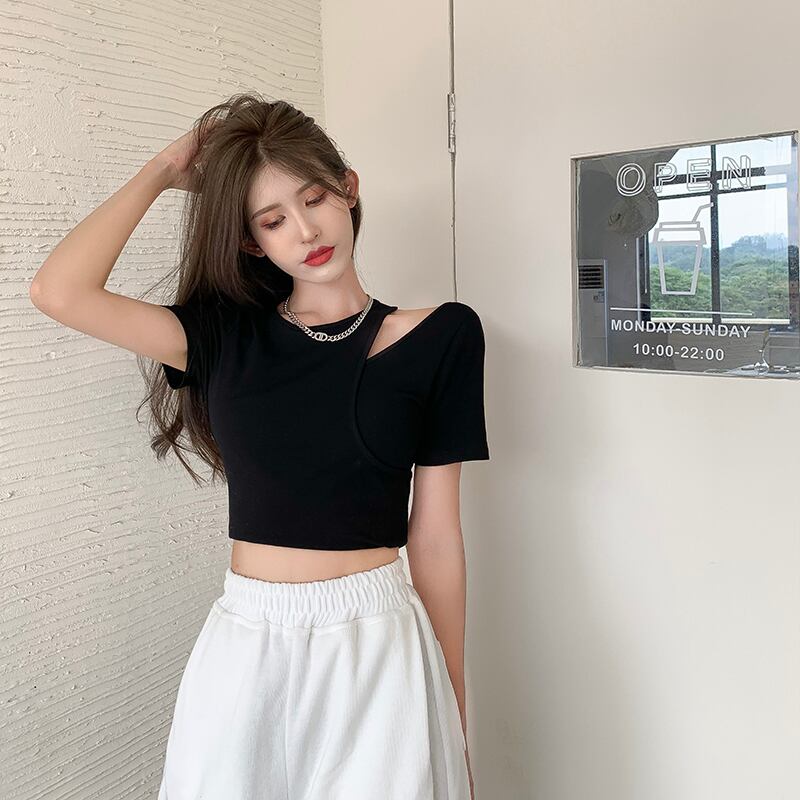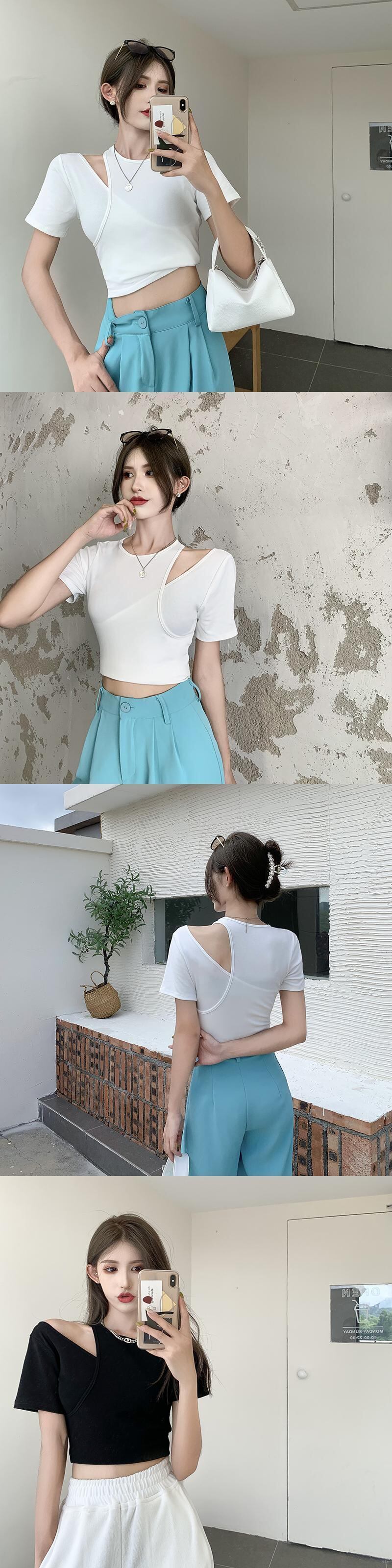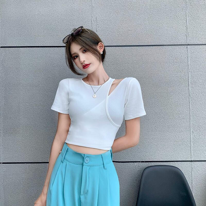 サマーショートTシャツ 薄手トップス レディース ハイウェスト 夏物 ドラファッションホール72555334276
