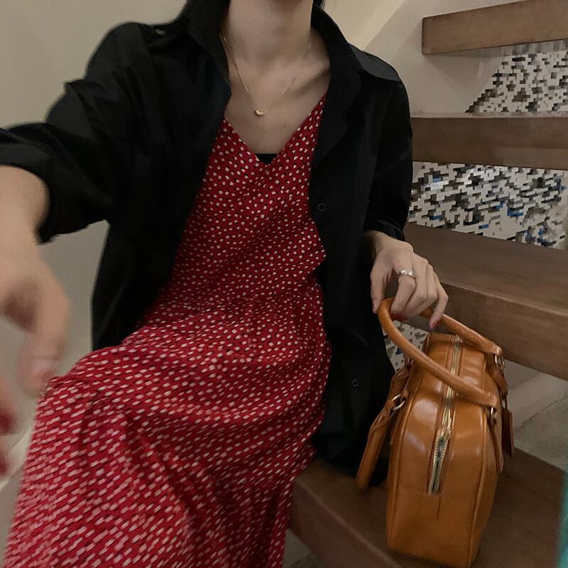 サマーカジュアルスタンダードドレス ブラックシャツ レトロ 夏物 ドラファッションホール58921114658