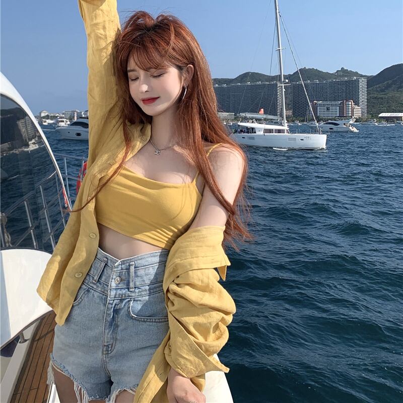 イエローショートスリムレディースサマーカジュアルシャツ ブラウス 夏物 ドラファッションホール77018210111