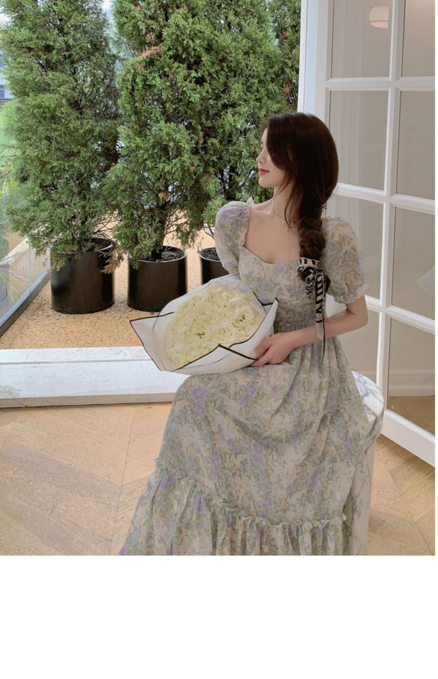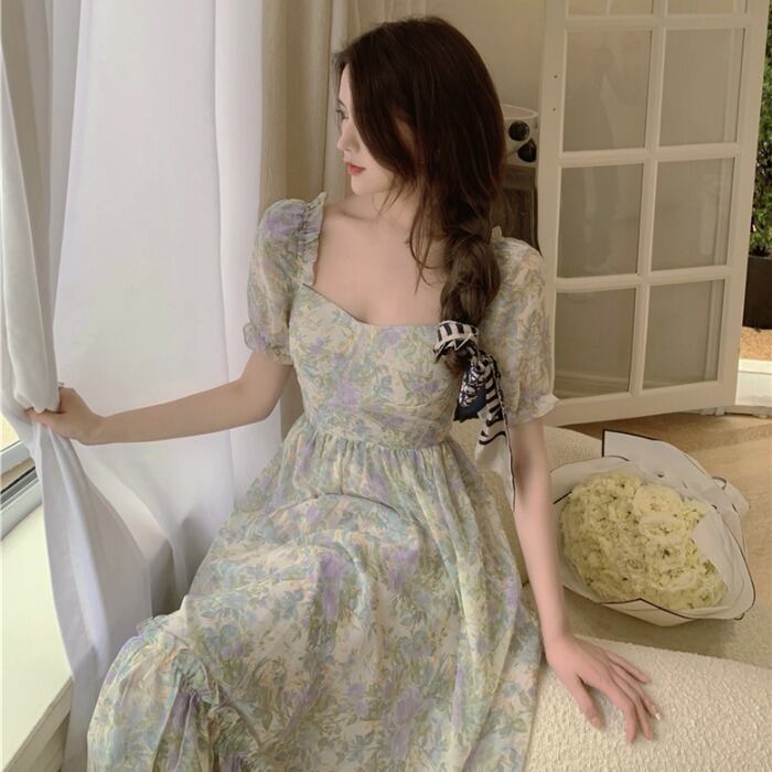 スタイルシフォンドレス サマースリムスタンダードフローラルロングスカート レトロ レース 夏物 花柄 スクウェア ドラファッションホール65413197261