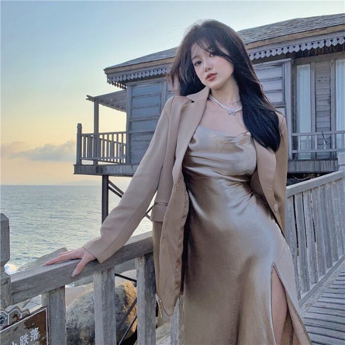 スプリングサマースタイルルーズジャケット サテンドレス レディース 春物 夏物 ドラファッションホール33558908113