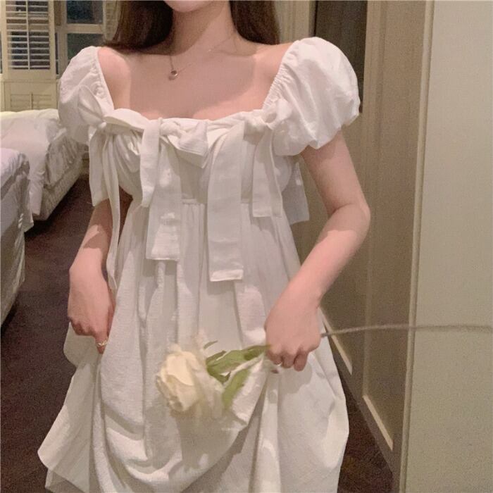 サマースタンダードリボンドレス ウェスト レトロ 大人ガーリー スウィート キュート カジュアル 夏物 ドラファッションホール84559274506