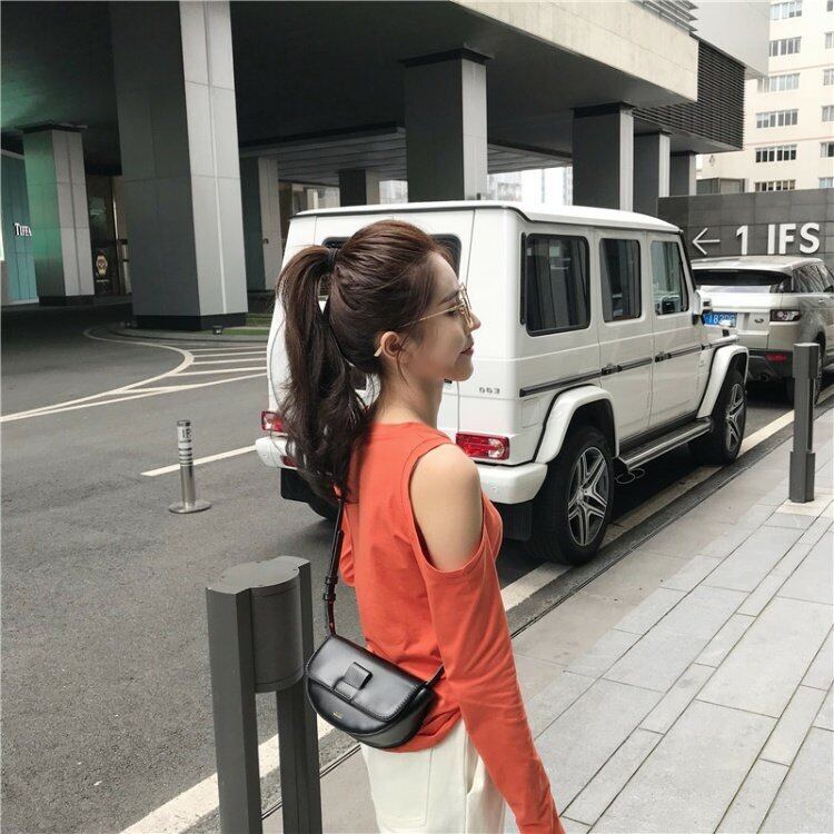 スプリングスタンダードストラップレスTシャツ レッドルーズトップス ロング レトロ 春物 ドラファッションホール68867502881