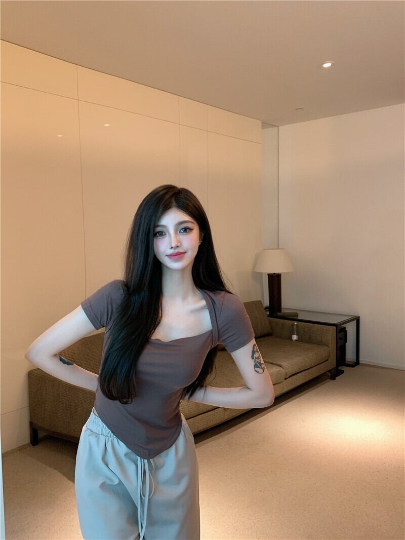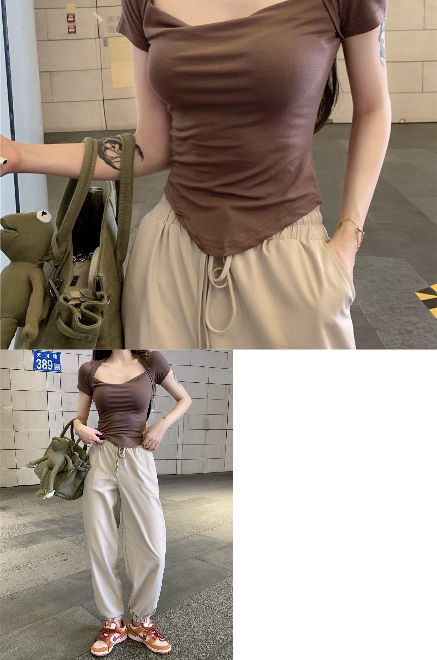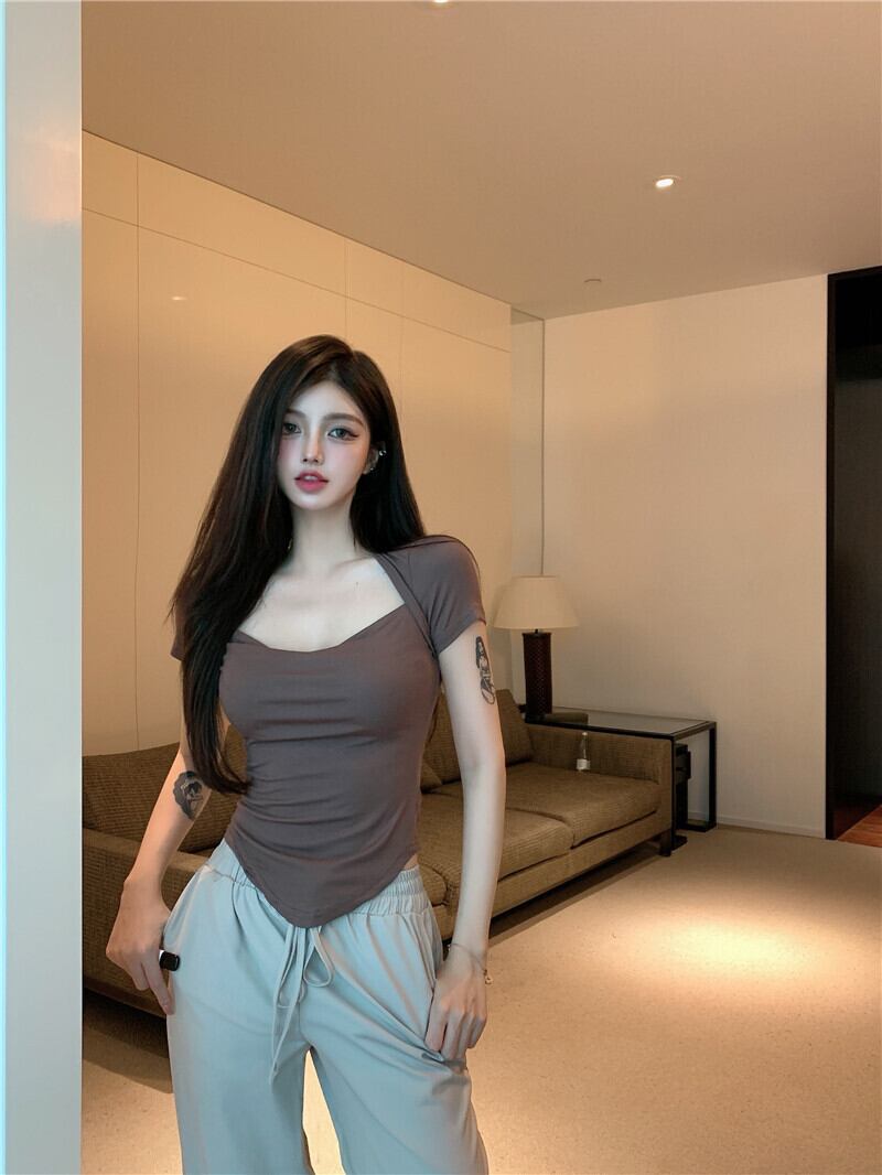 Tシャツ トップス ルーズロングサマーレディース レース 夏物 レースアップ スクウェア ドラファッションホール86285562769