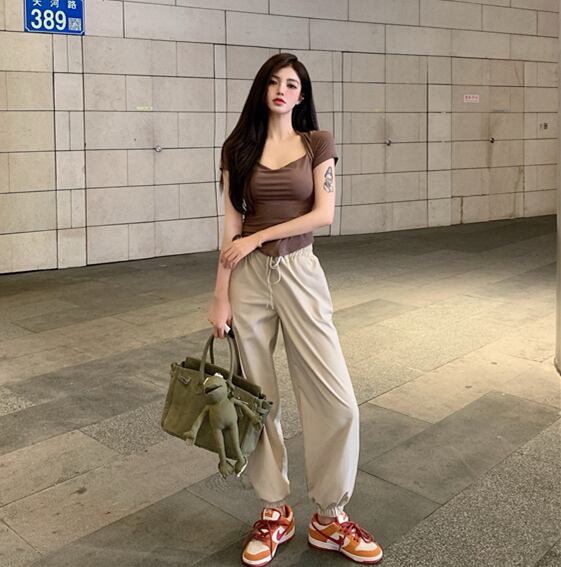 色:コーヒーTシャツ,ピンクのTシャツ,アプリコットズボン