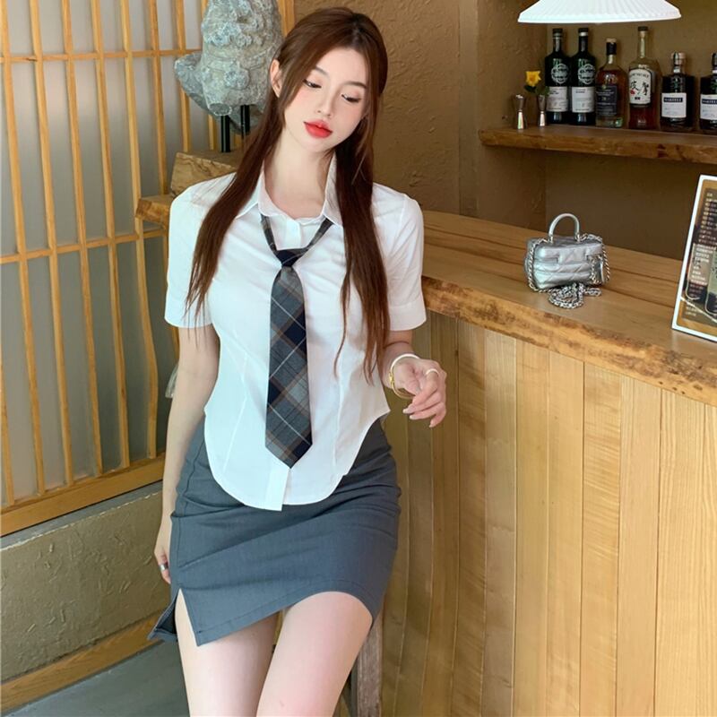 サマースタイルショートシャツ ハイウェストウェストスカート 夏物 ドラファッションホール28114217452