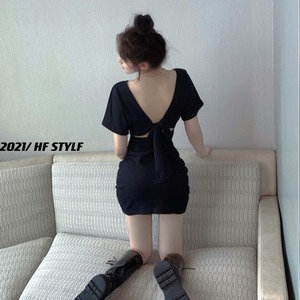 サマースタイルハイウェストウェストスリムバックドレス ストラップ ブラックショートスカート 夏物 ドラファッションホール97479743345