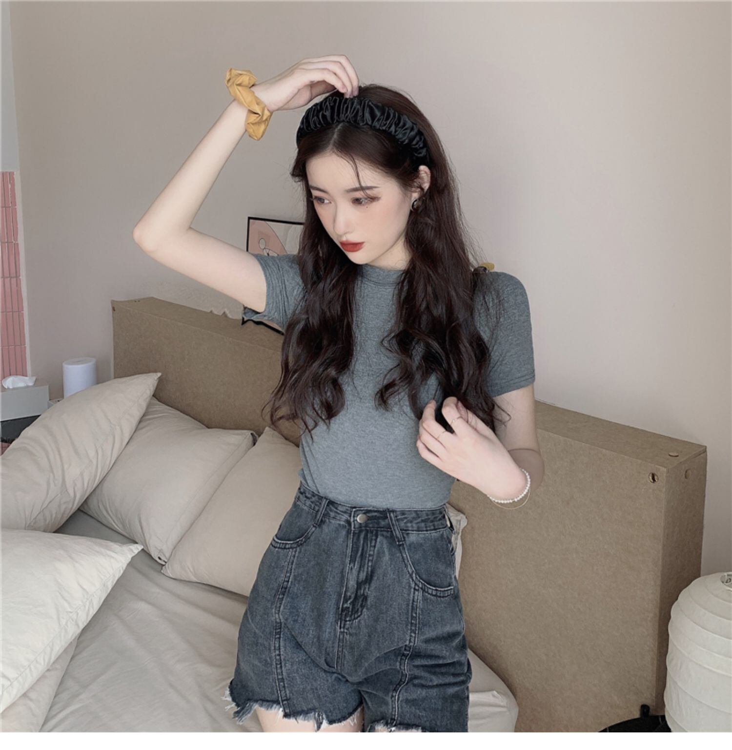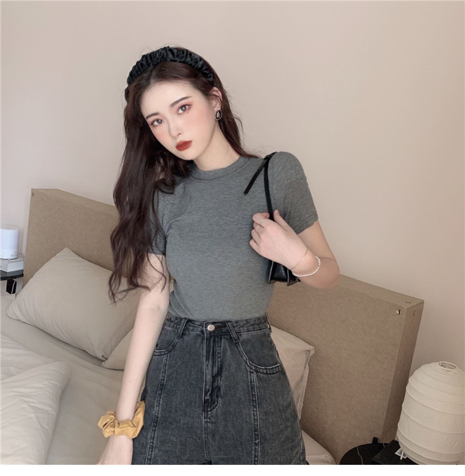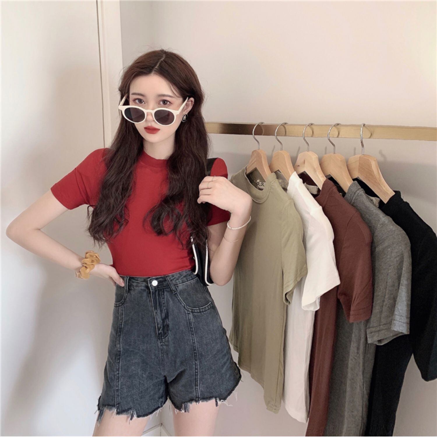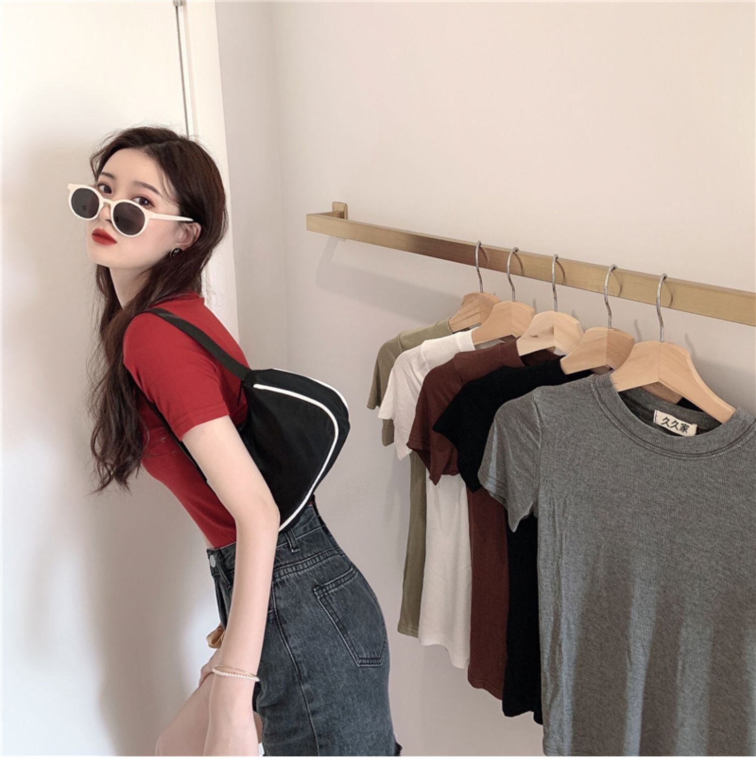 ラウンドネックソリッド カラーTシャツ スリムトップス サマー 夏物 Oネック ソリッドカラー ドラファッションホール82693880134