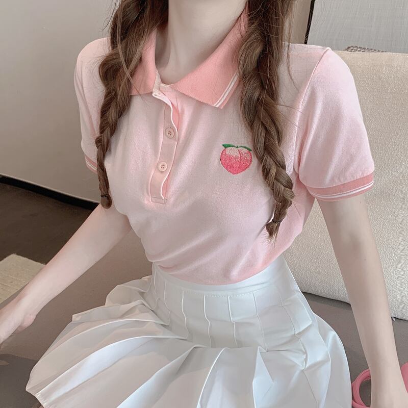 サマーTシャツ ハイウェストウェストスリムプリーツスカート カジュアルレディース レッド 刺繍 夏物 ドラファッションホール46509012987