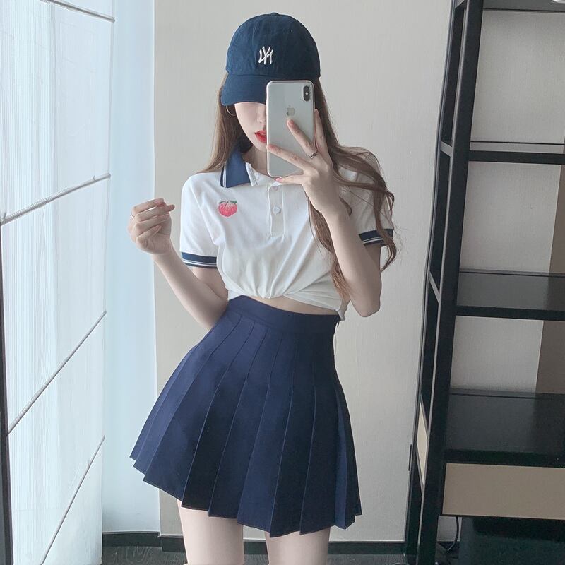色:ライトピンクのTシャツ,白いTシャツ,ネイビーブループリーツスカート,白いプリーツスカート