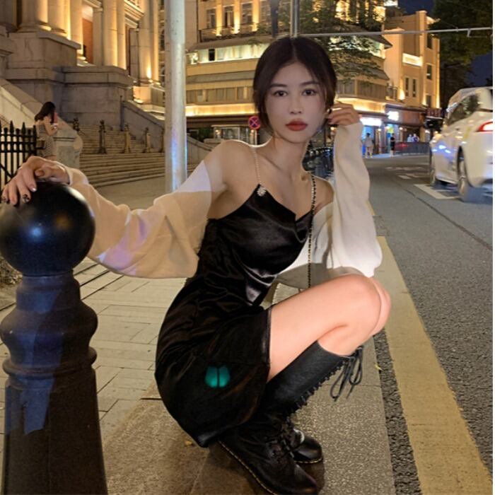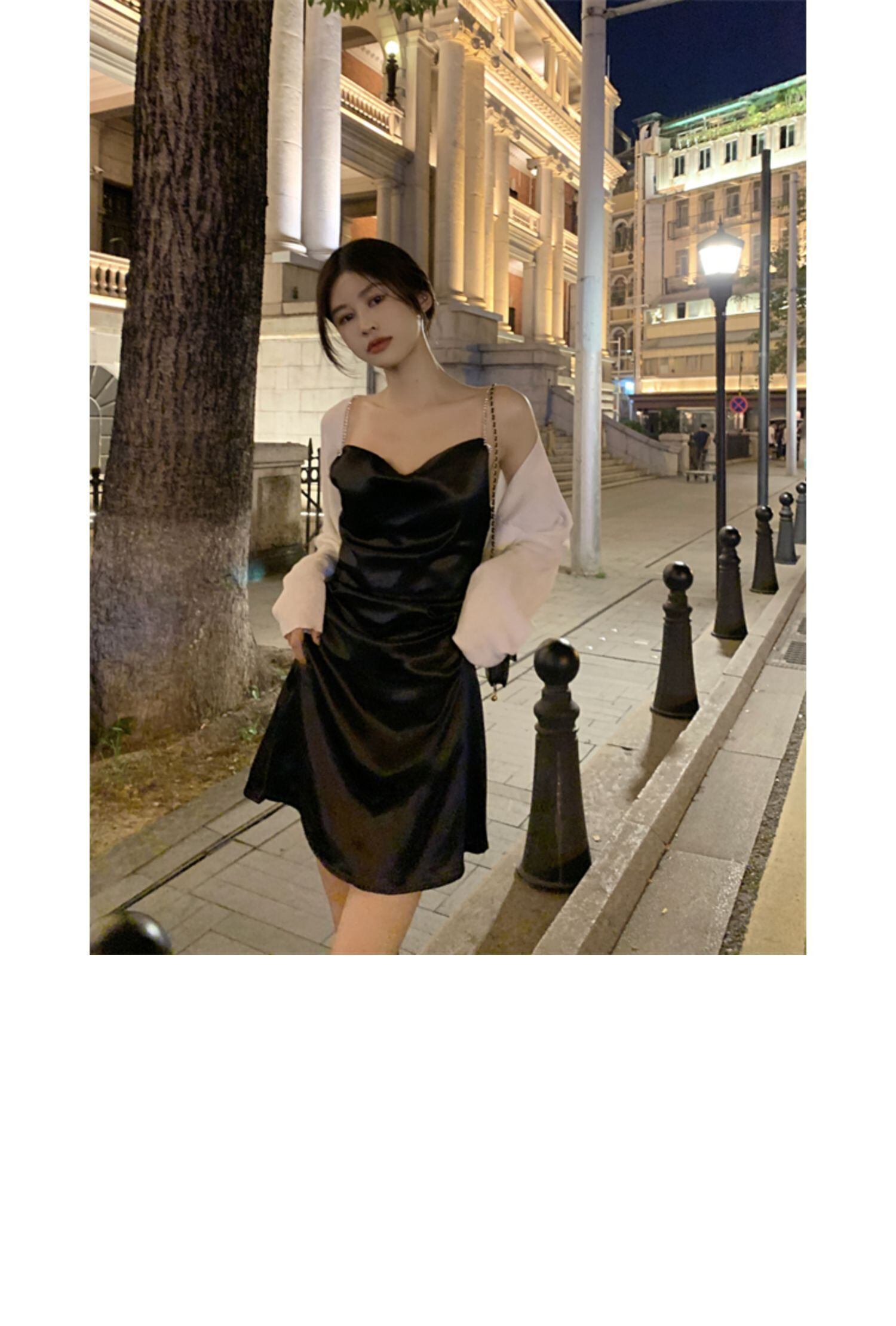 サマースタイルスタンダードスカート スリムブラックドレス レトロ 夏物 ドラファッションホール94254449005