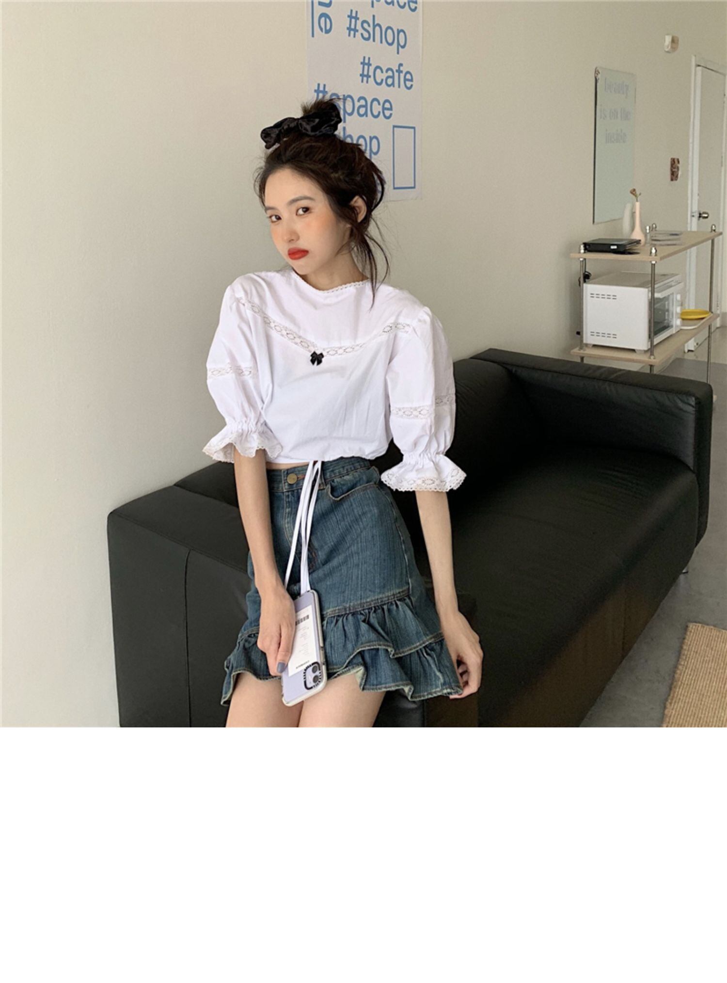 色:白のシャツ,黒いシャツ,スカート