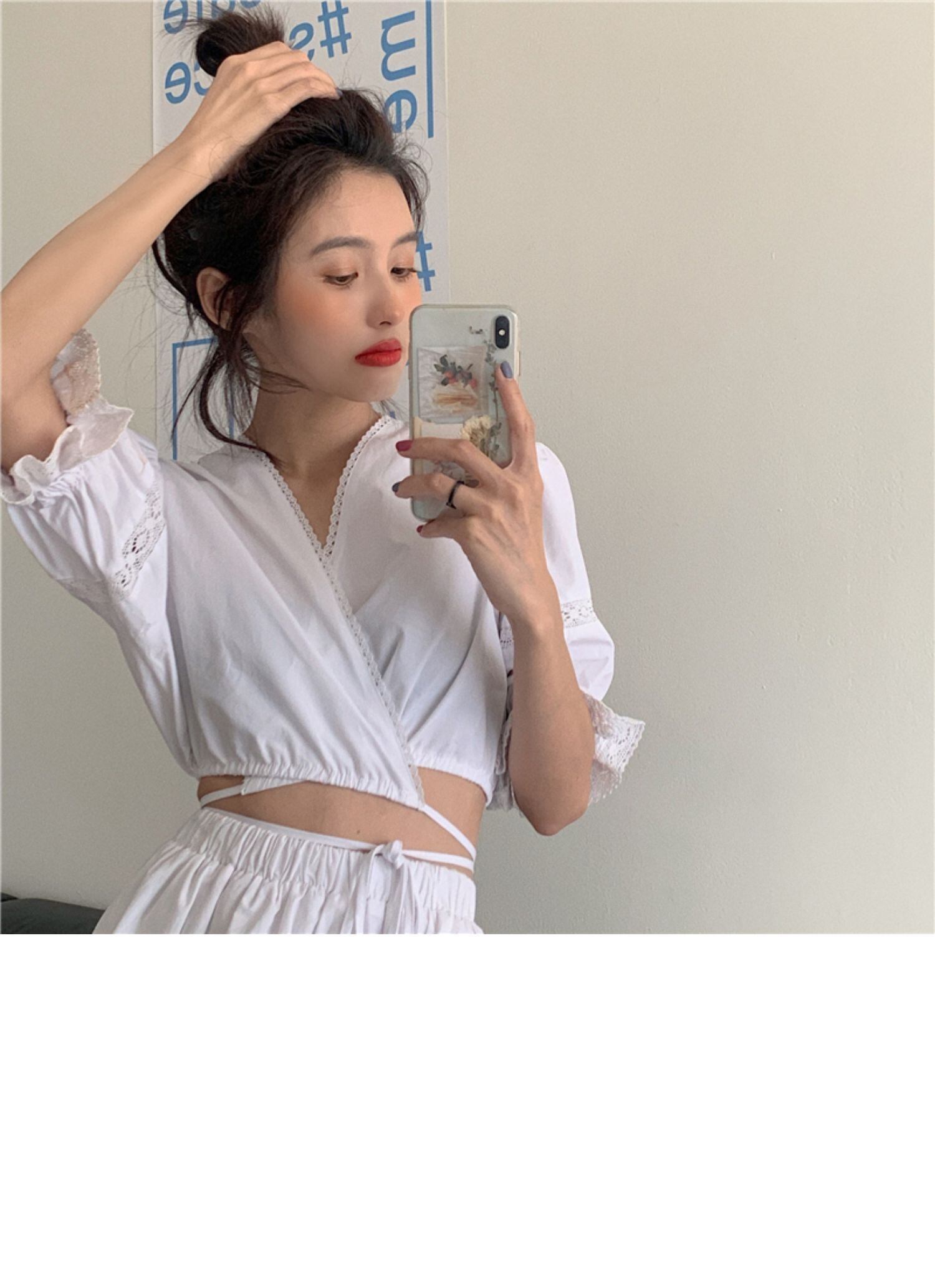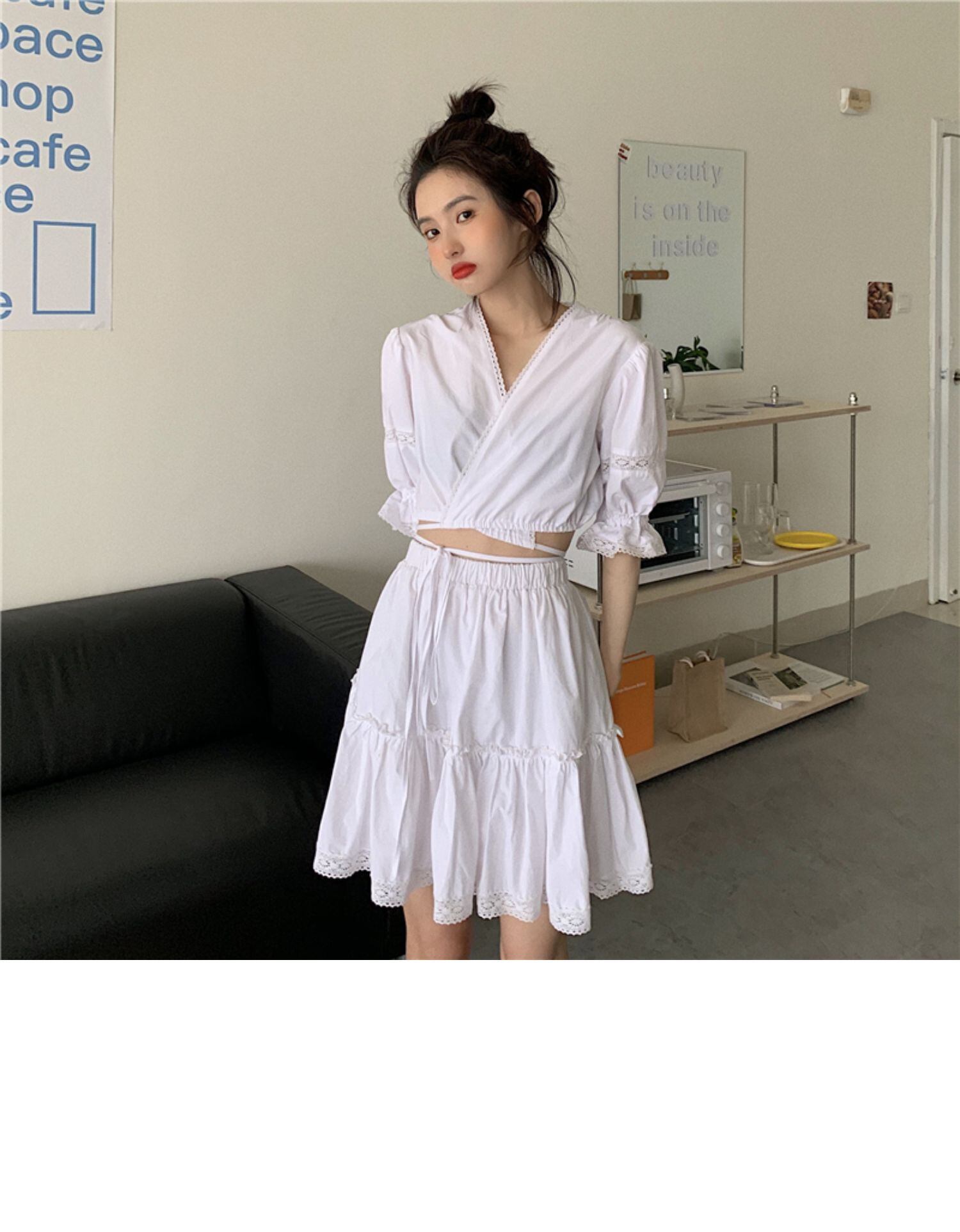 サマースタイルVネックリボンシャツ スカート レッド 大人ガーリー スウィート キュート カジュアル 夏物 ドラファッションホール84690919604